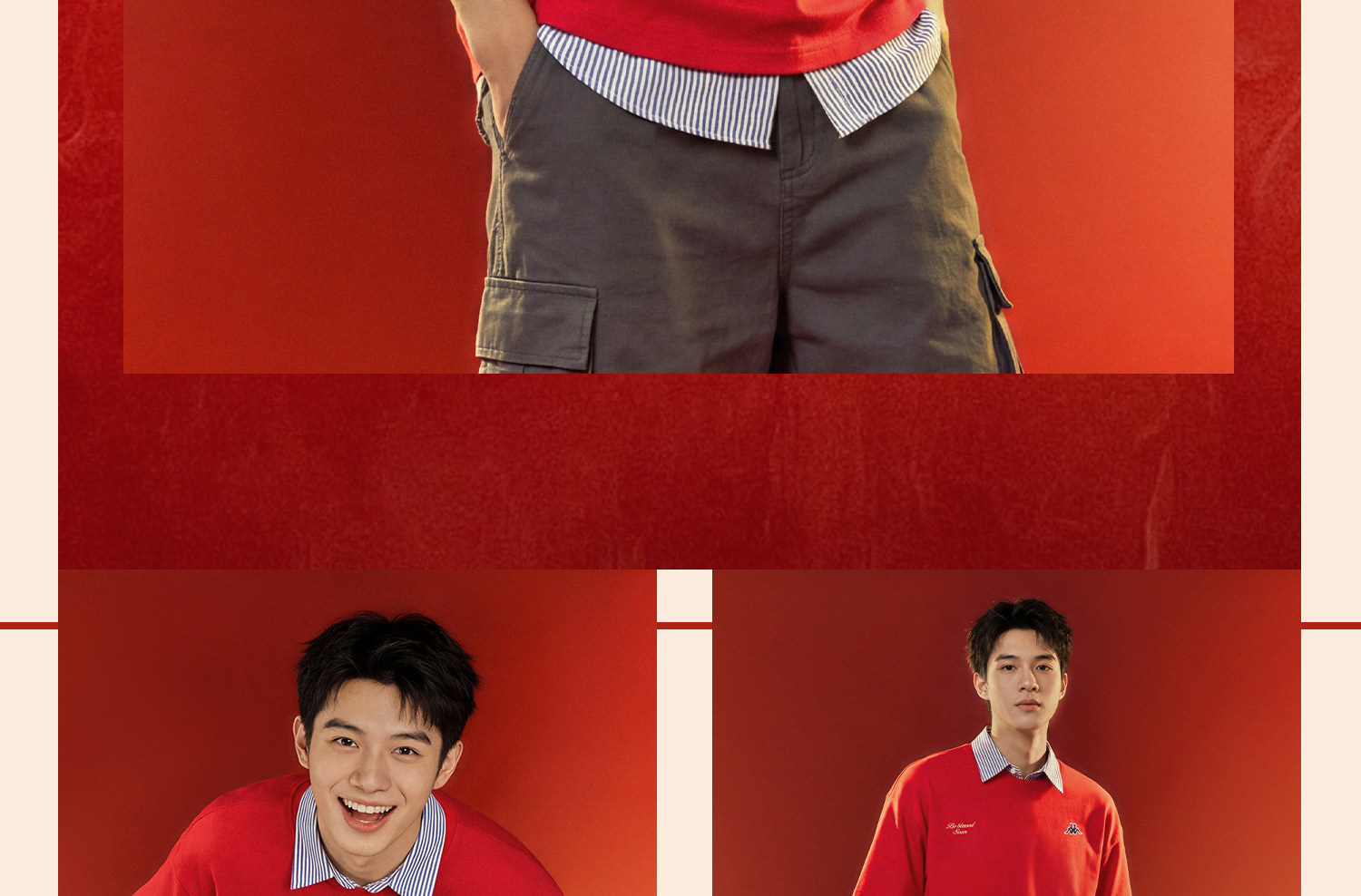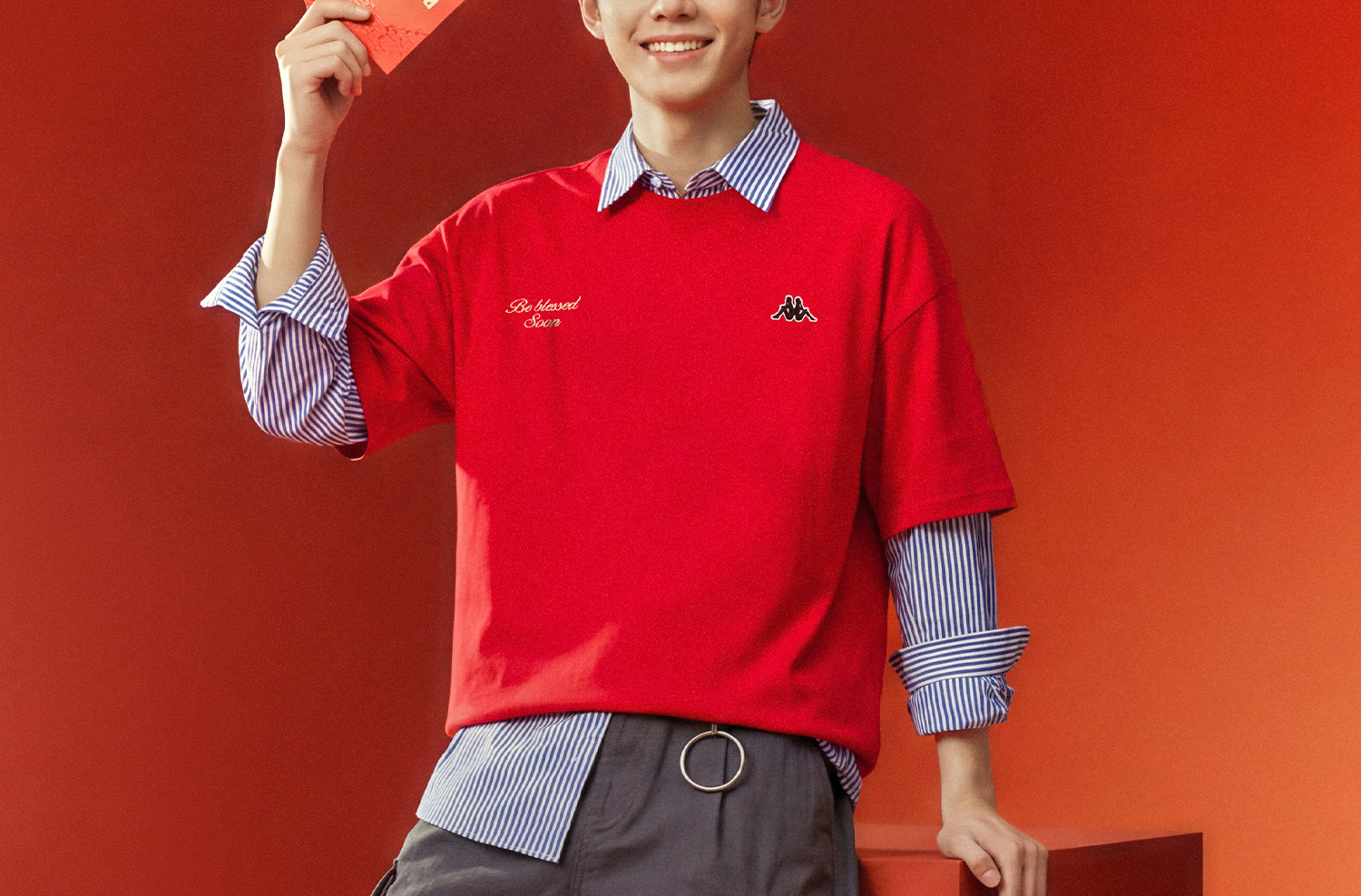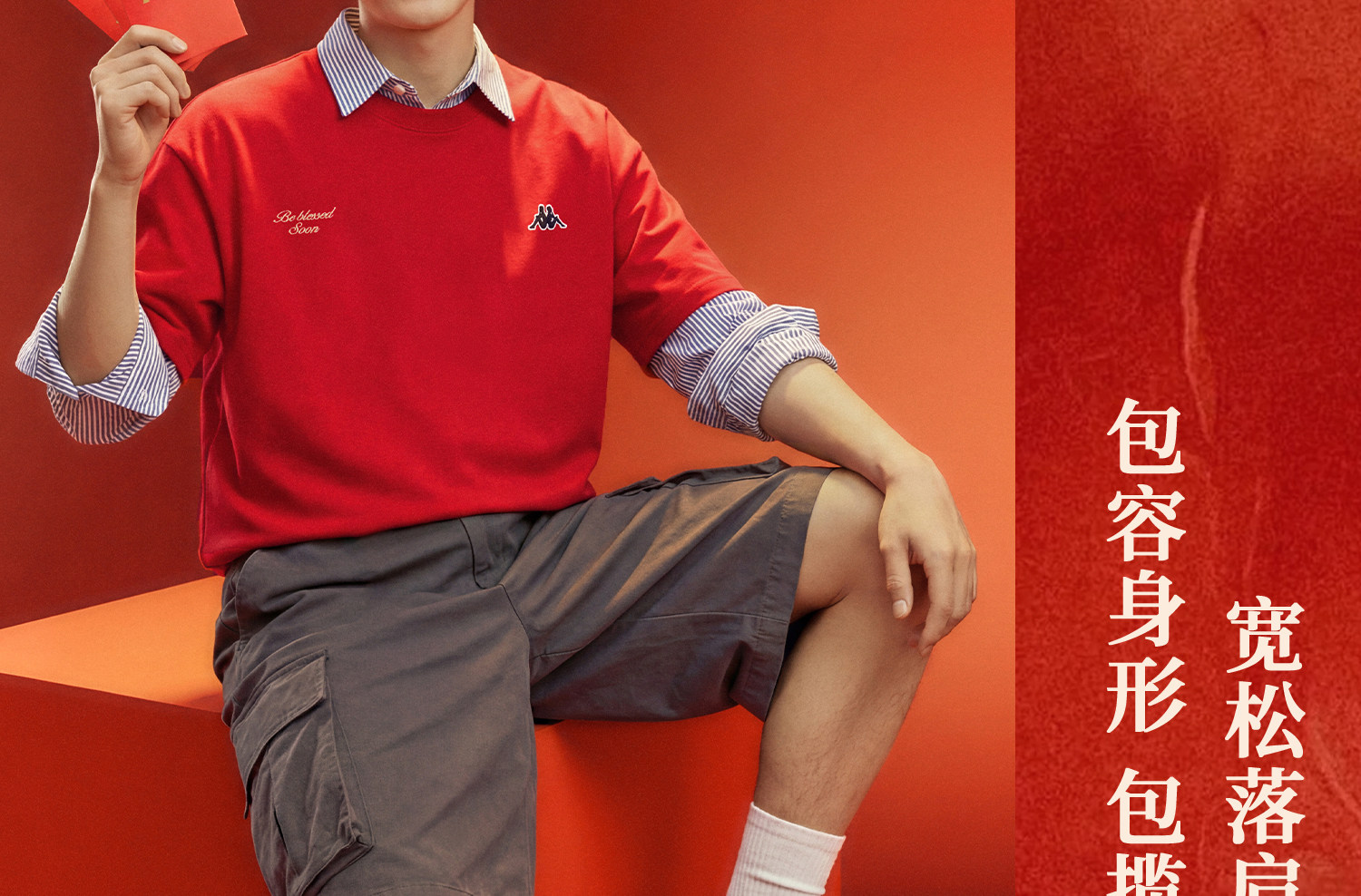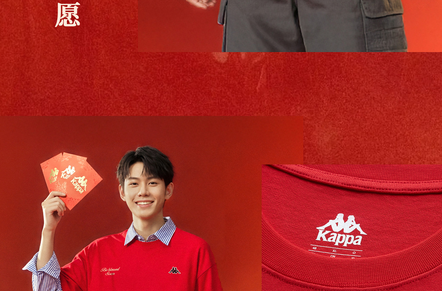 Kappa 新年款纯棉运动t恤男新款红色休闲短袖训练上衣女K0G12TD06
