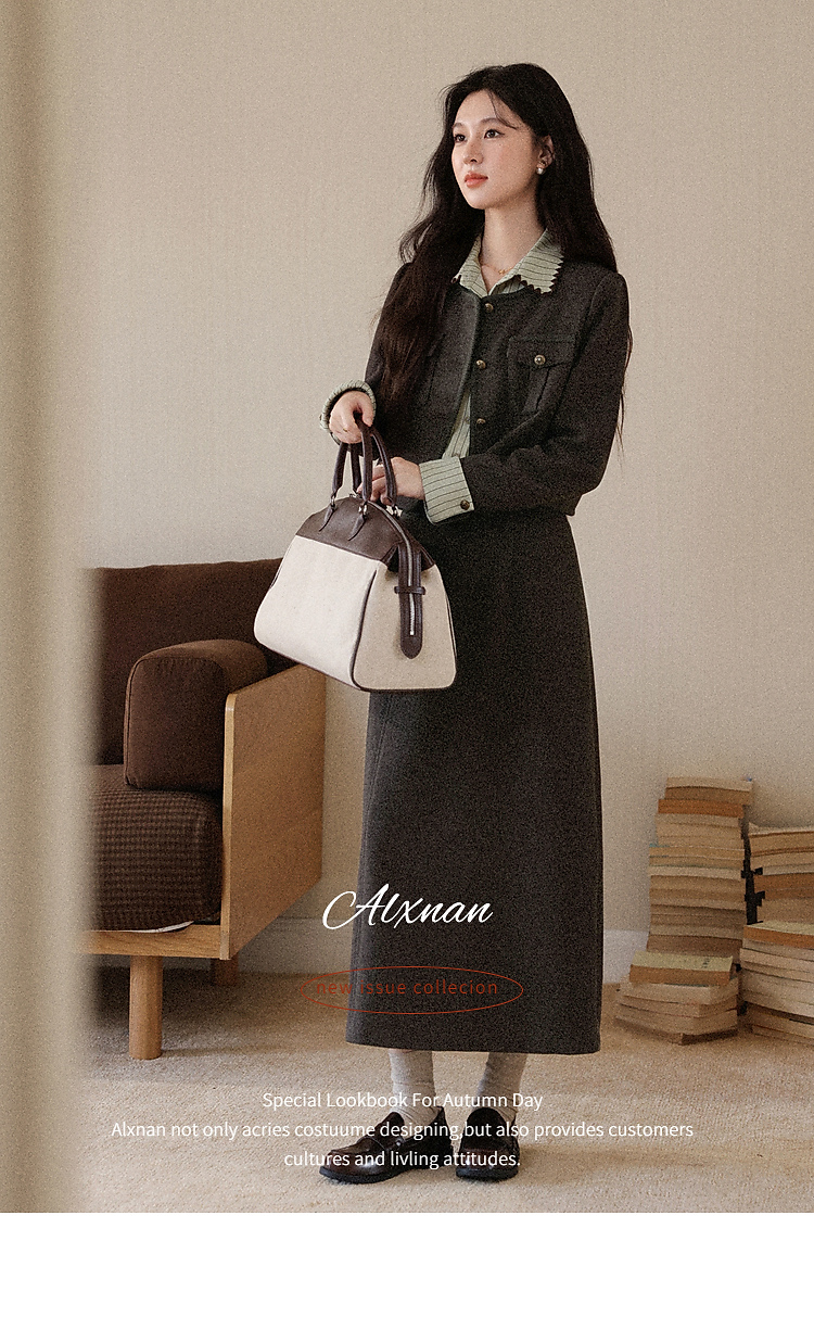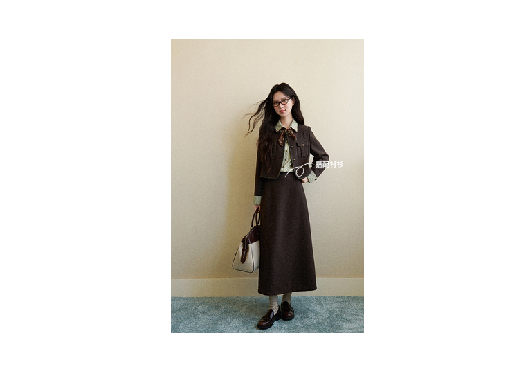 鹿向南「曼城假日」咖色外套半身裙两件套女秋冬新款气质时尚套装