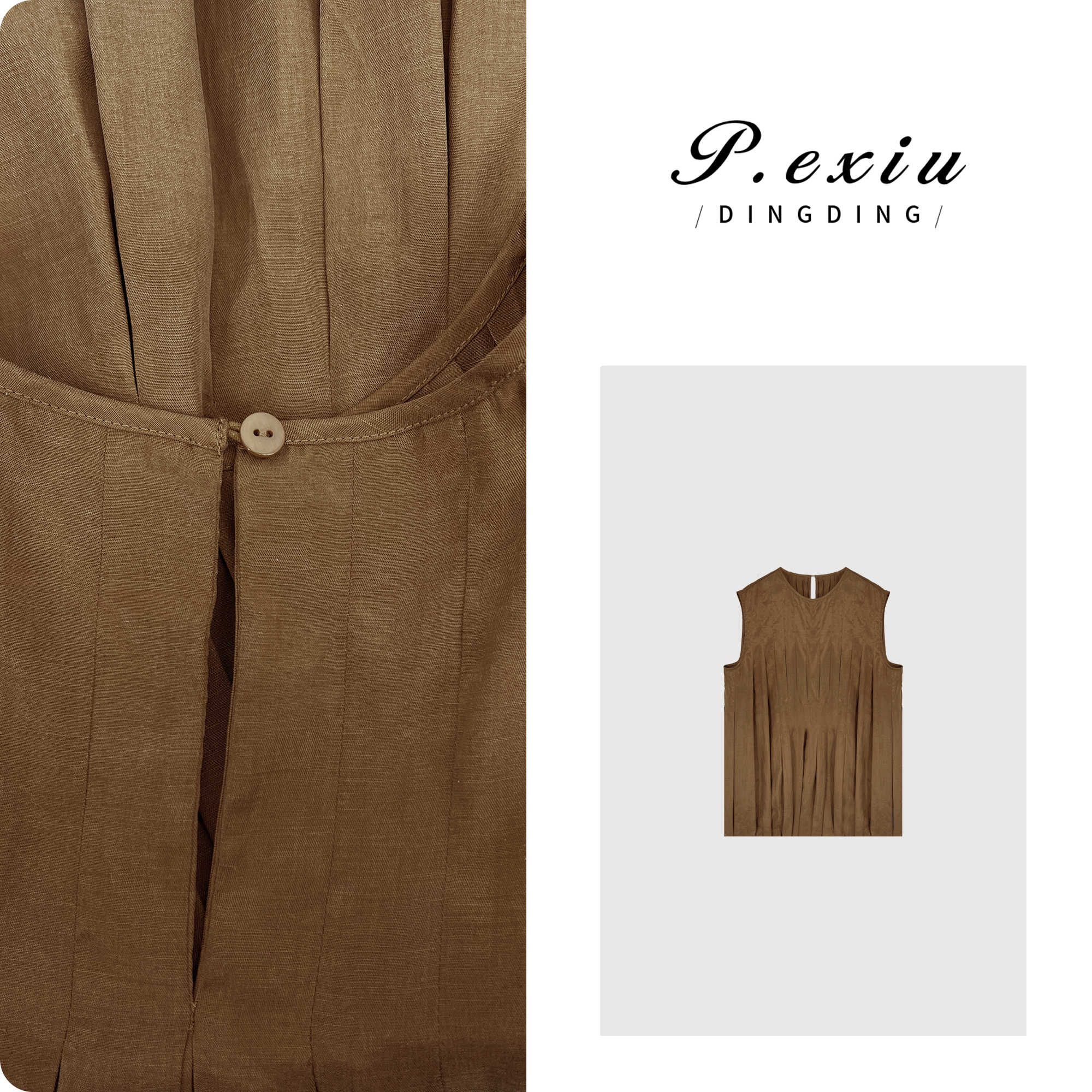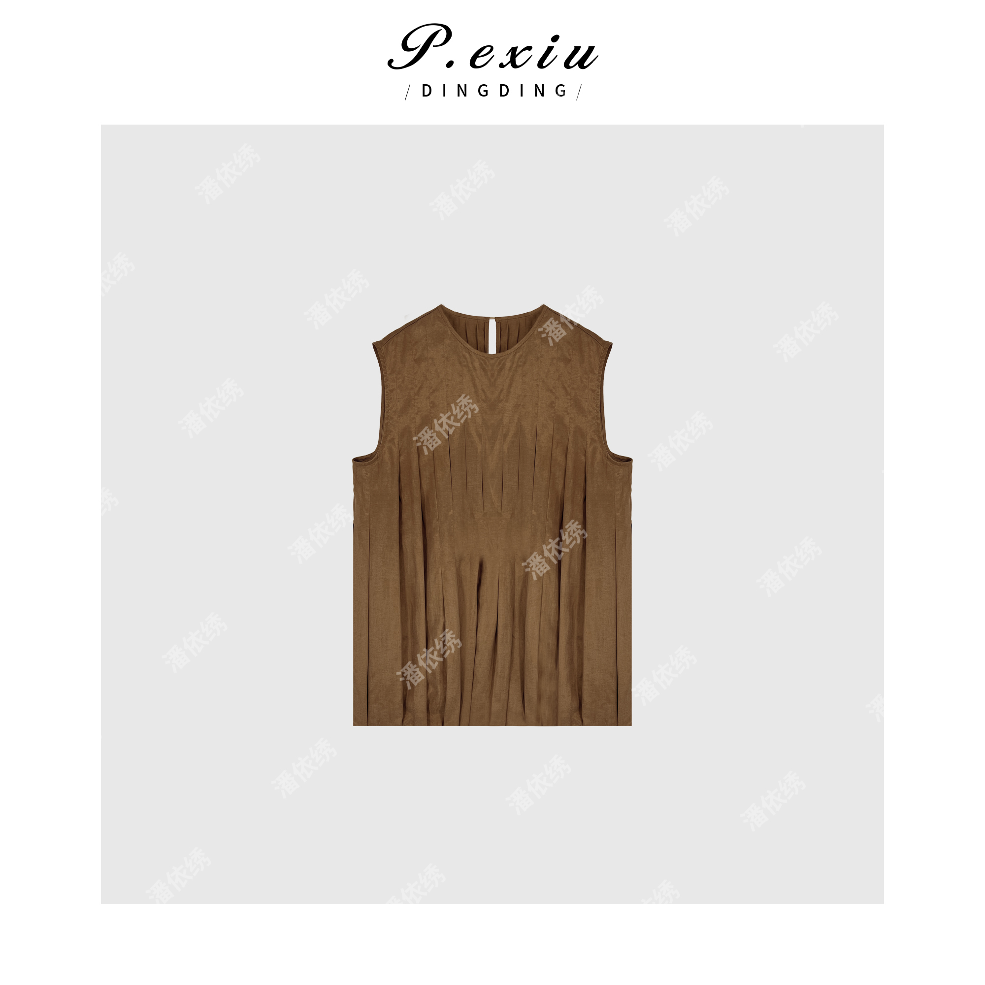03-5潘依绣丁丁宠粉PanYiXiu/潘依绣【夏有凉风】亚麻褶皱设计感轻薄气质圆领背心 W-62190