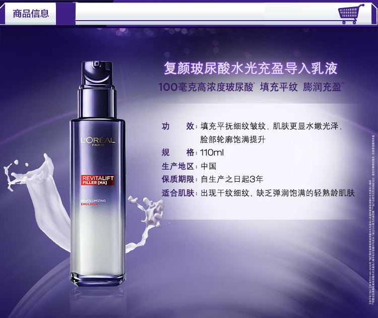 欧莱雅(LOREAL)复颜玻尿酸水光充盈导入乳液 110ml