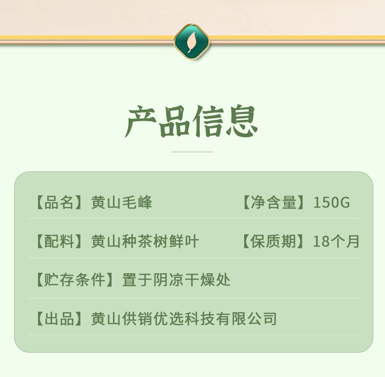 【黄小优】黄山毛峰 绿茶浓香型高山毛峰150g 2025新茶叶