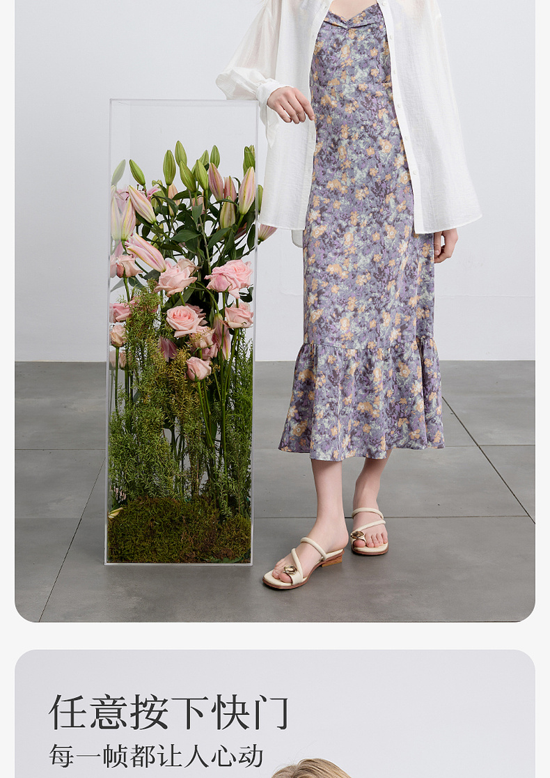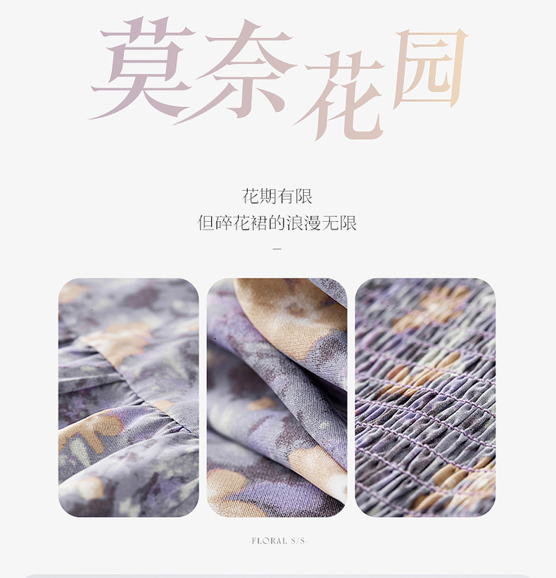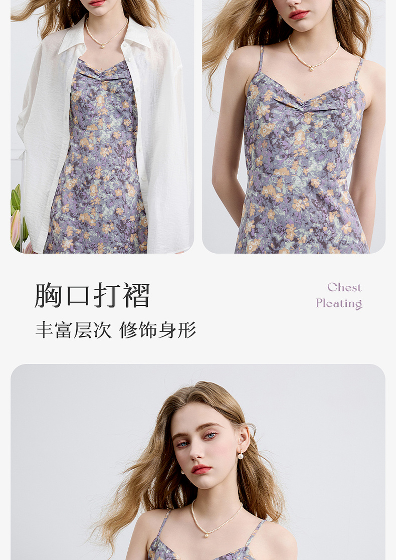 【宋轶同款】三彩2025秋季新款吊带碎花连衣裙法式复古浪漫大摆长裙M