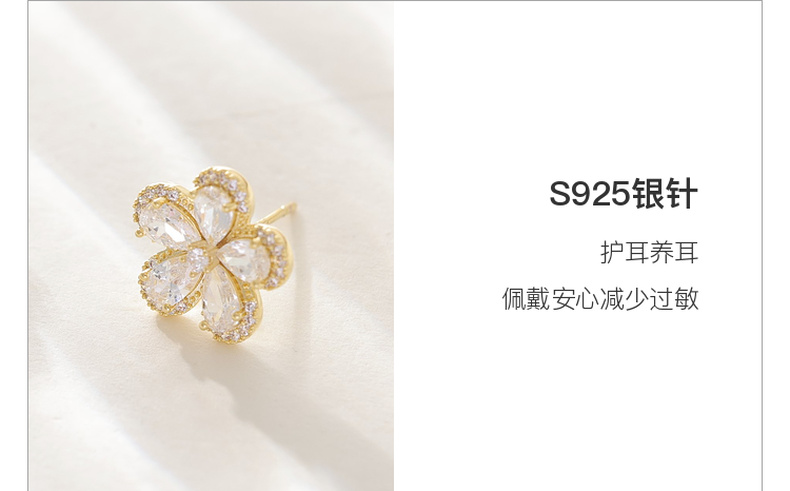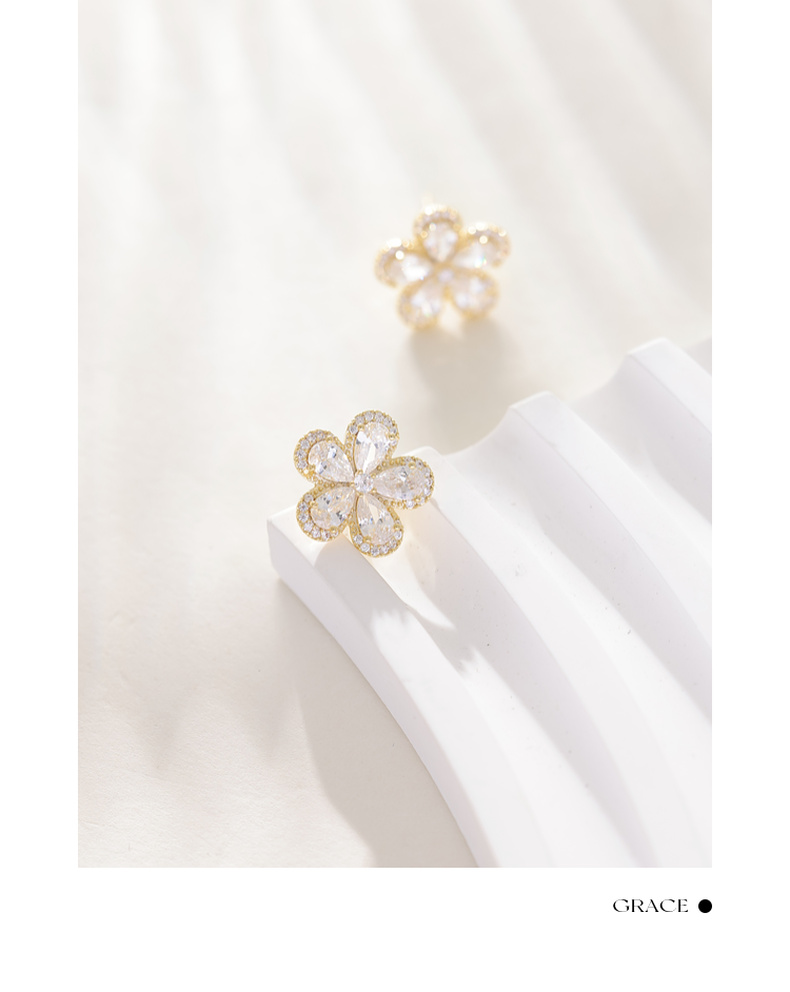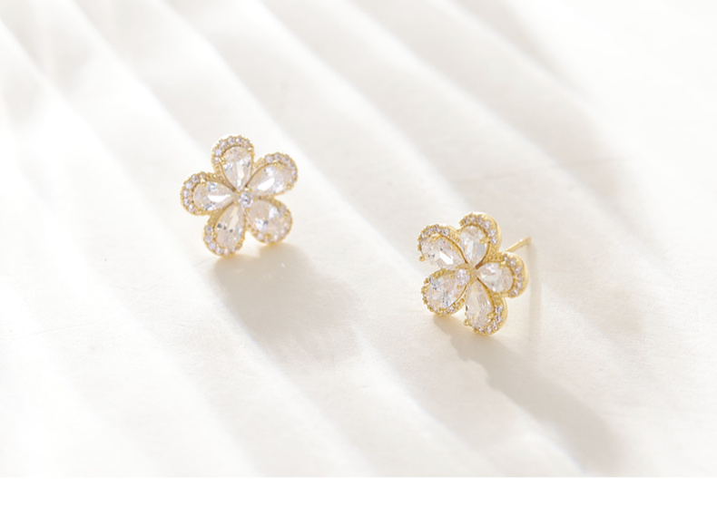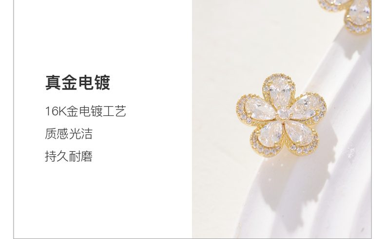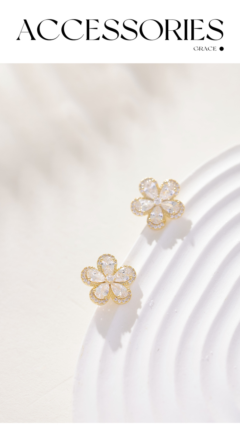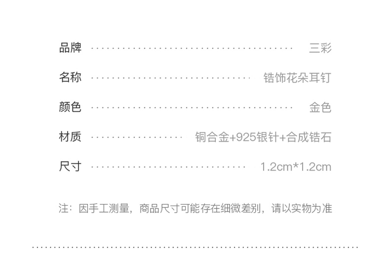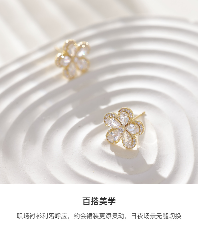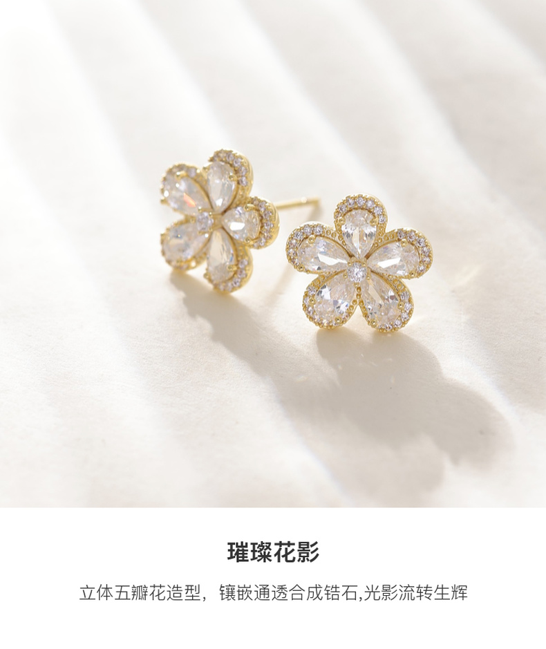 三彩2026新款镀金立体五瓣花朵耳钉合成锆石轻奢出游约会耳饰女