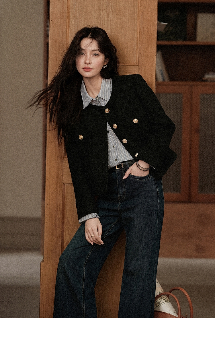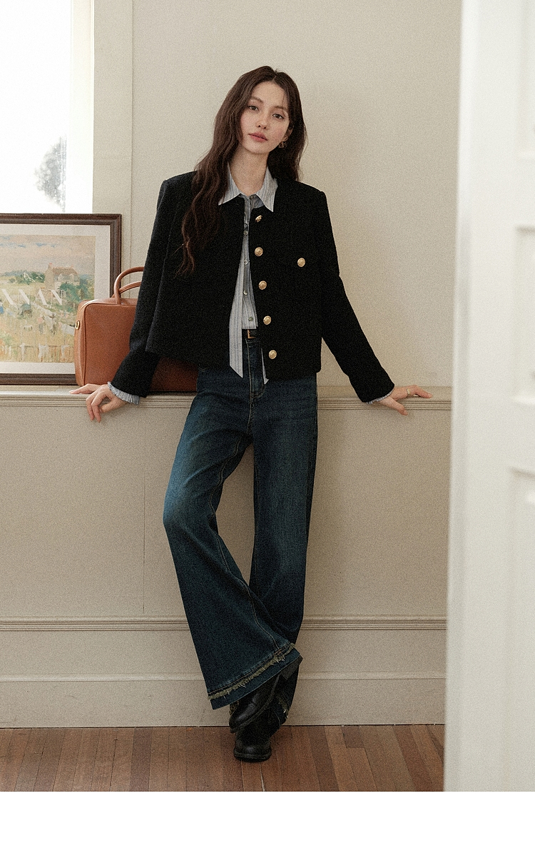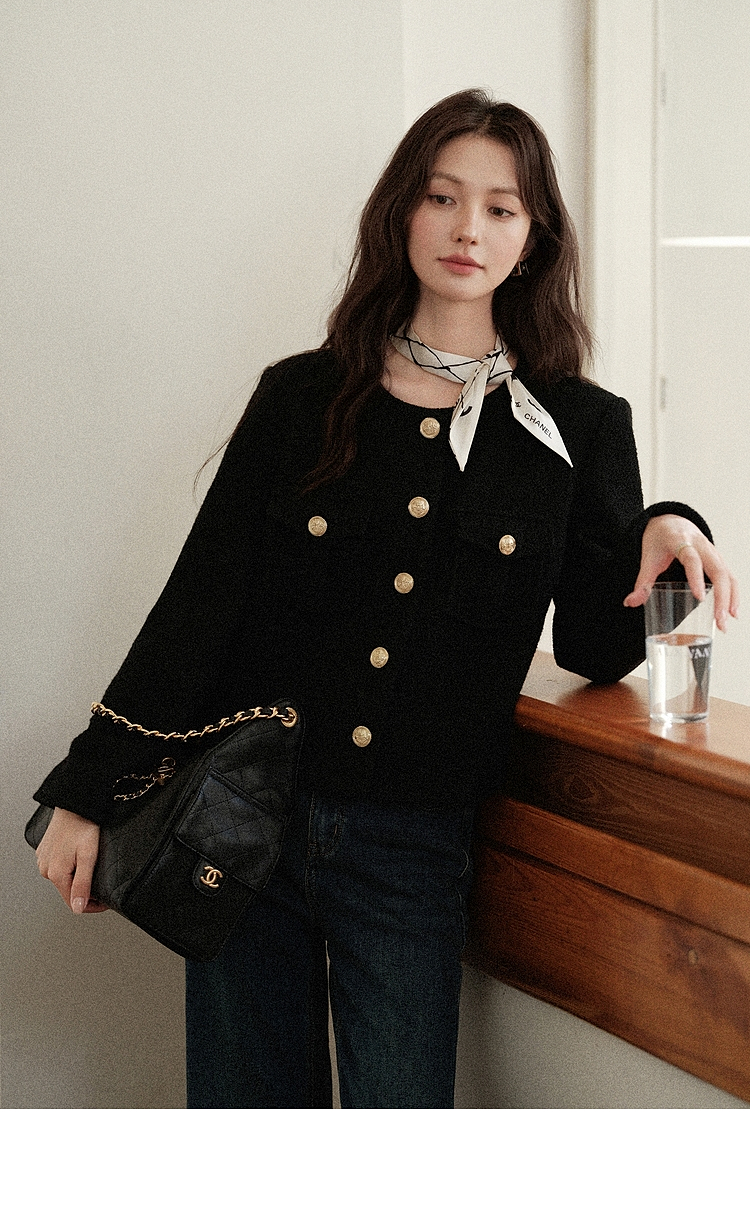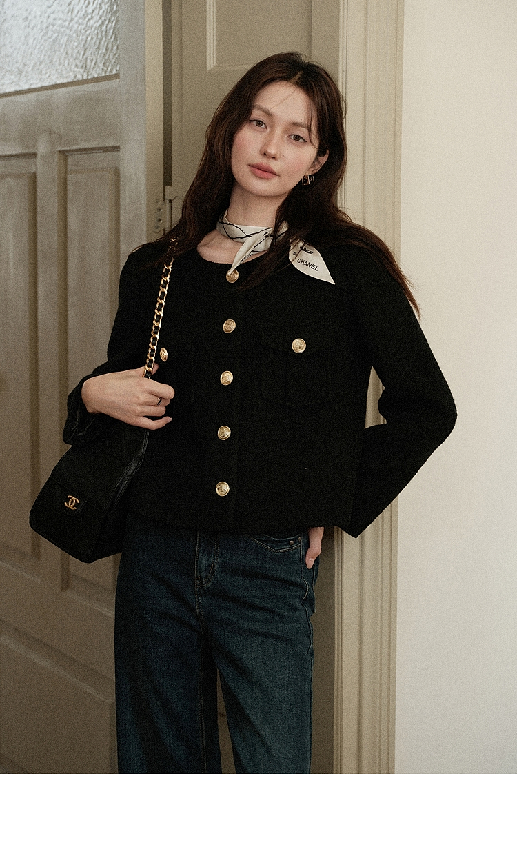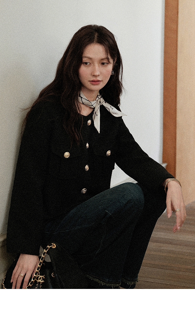 鹿向南「航海日记」黑色复古短款外套女早秋新款小香风休闲外衣