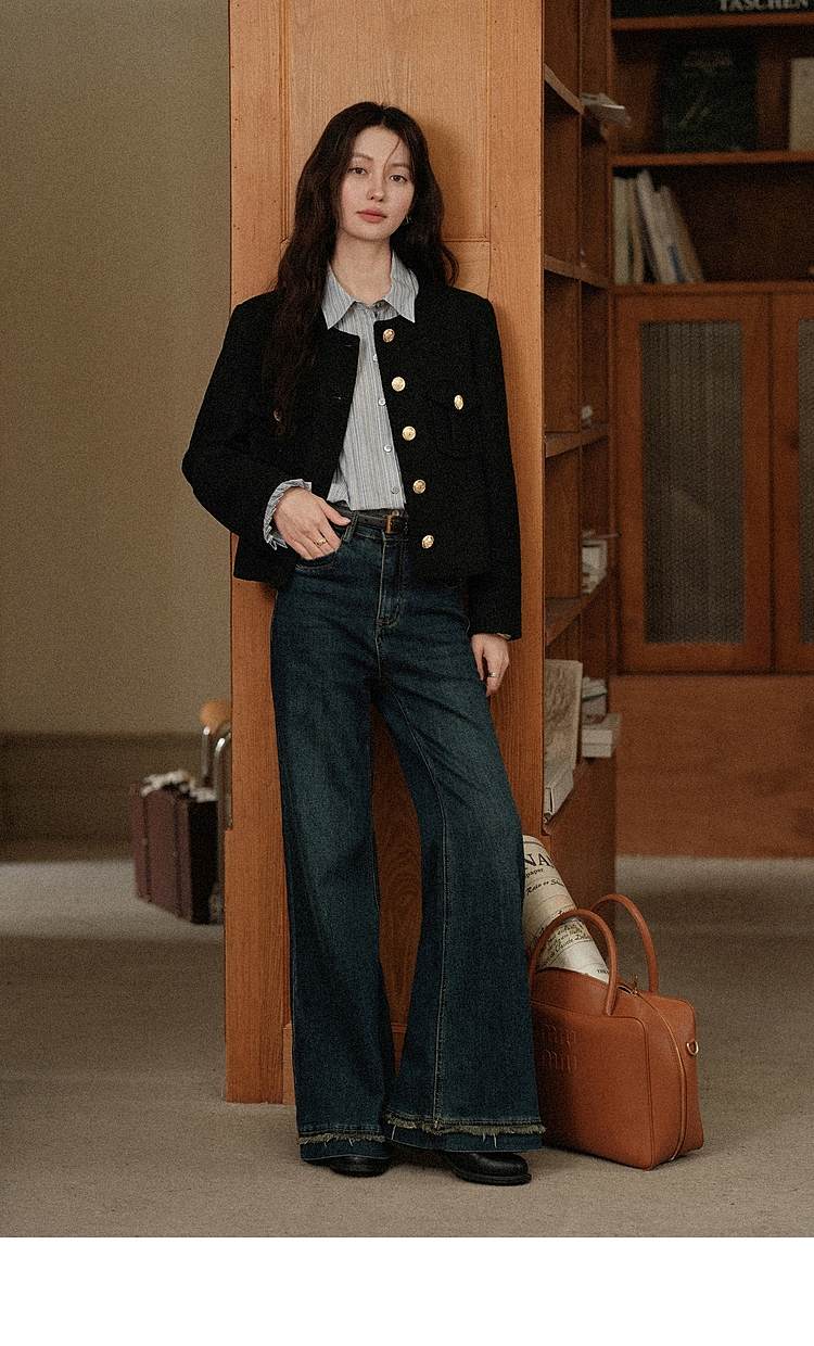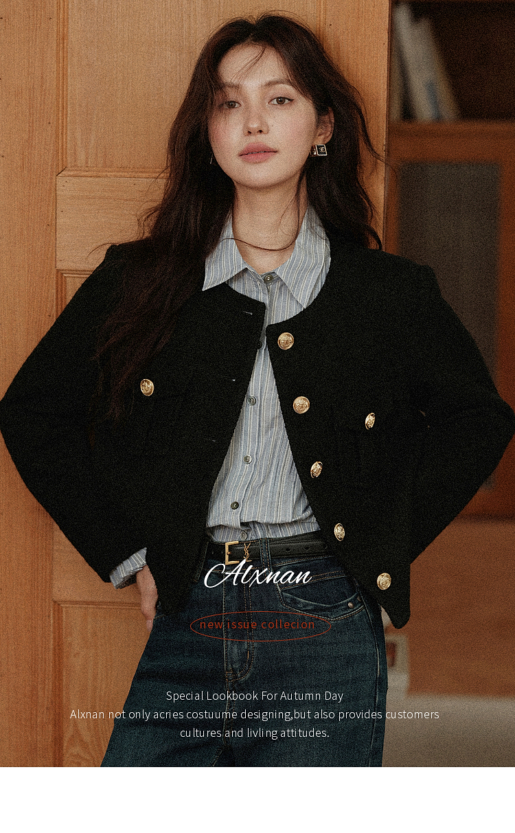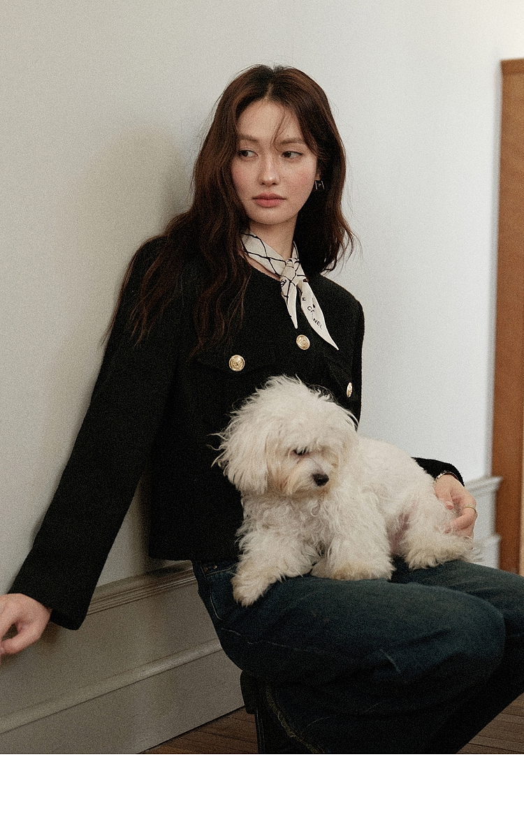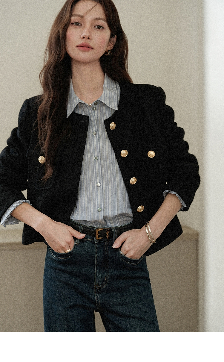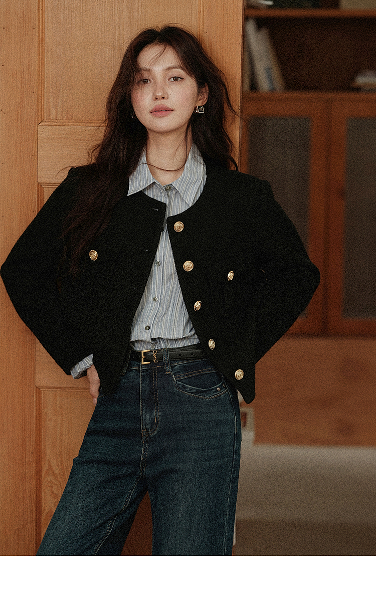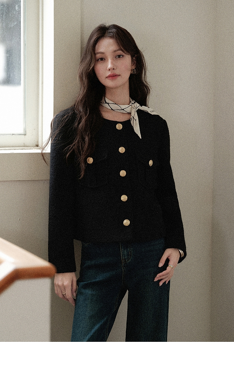 鹿向南「航海日记」黑色复古短款外套女早秋新款小香风休闲外衣