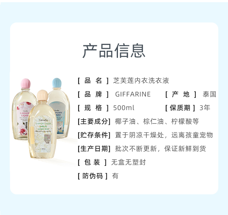 泰国 Giffarine/芝芙莲 内衣洗液 500ml