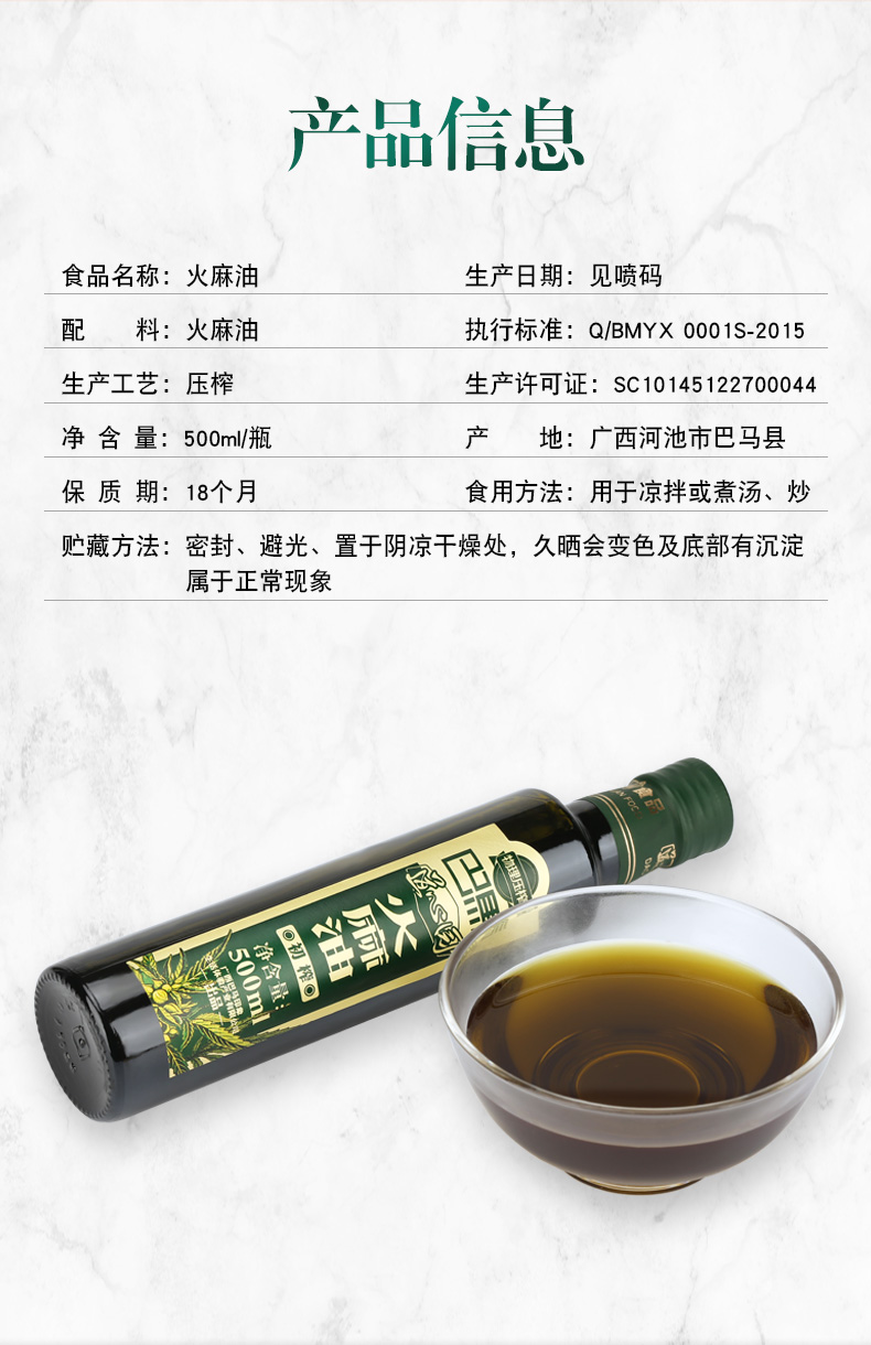 道心园初榨火麻油500ml