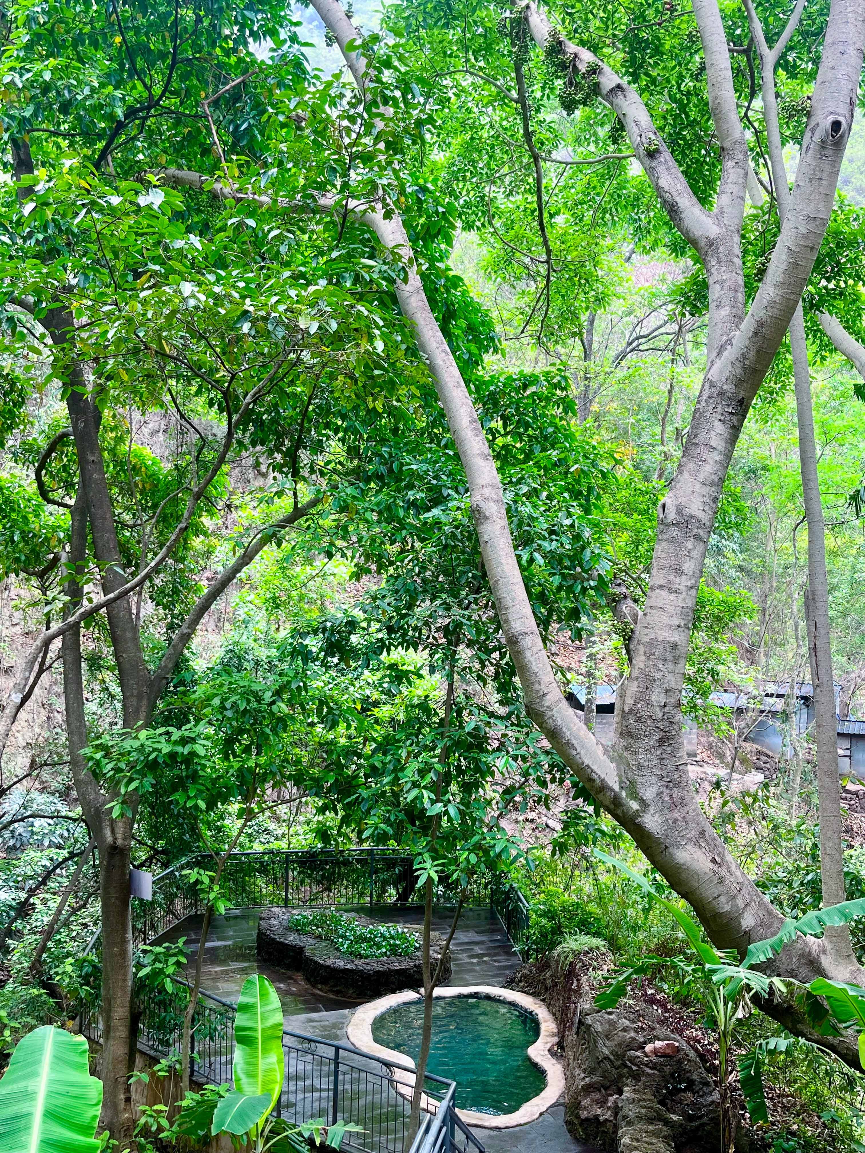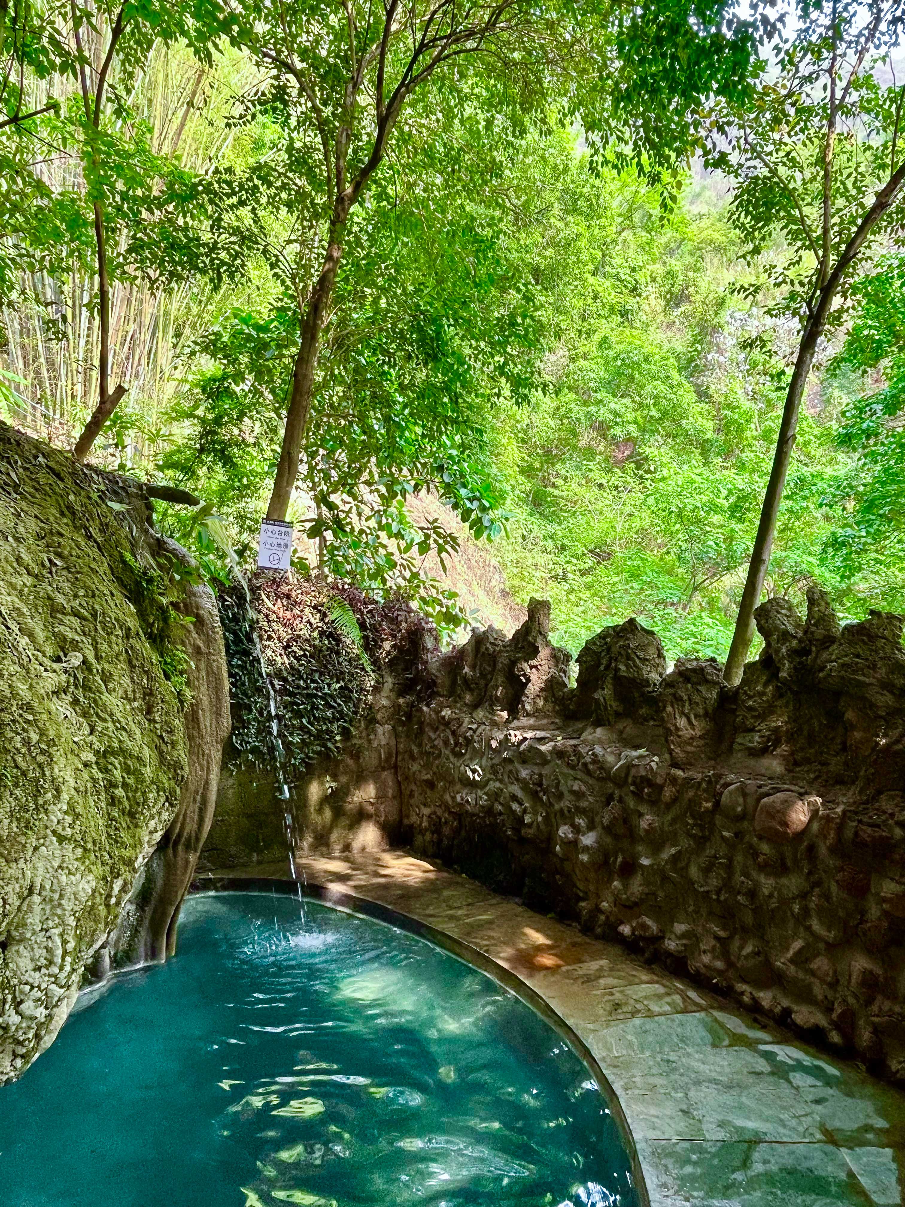 沿途泉眼有的从古树根渗出,有的沿崖壁形成温泉瀑布,月牙池、冲腰池藏在绿树间。泡着40℃碳酸泉,听溪流潺潺、松涛阵阵,抬头是遮天古树,野趣与仙气拉满,很值得一去!