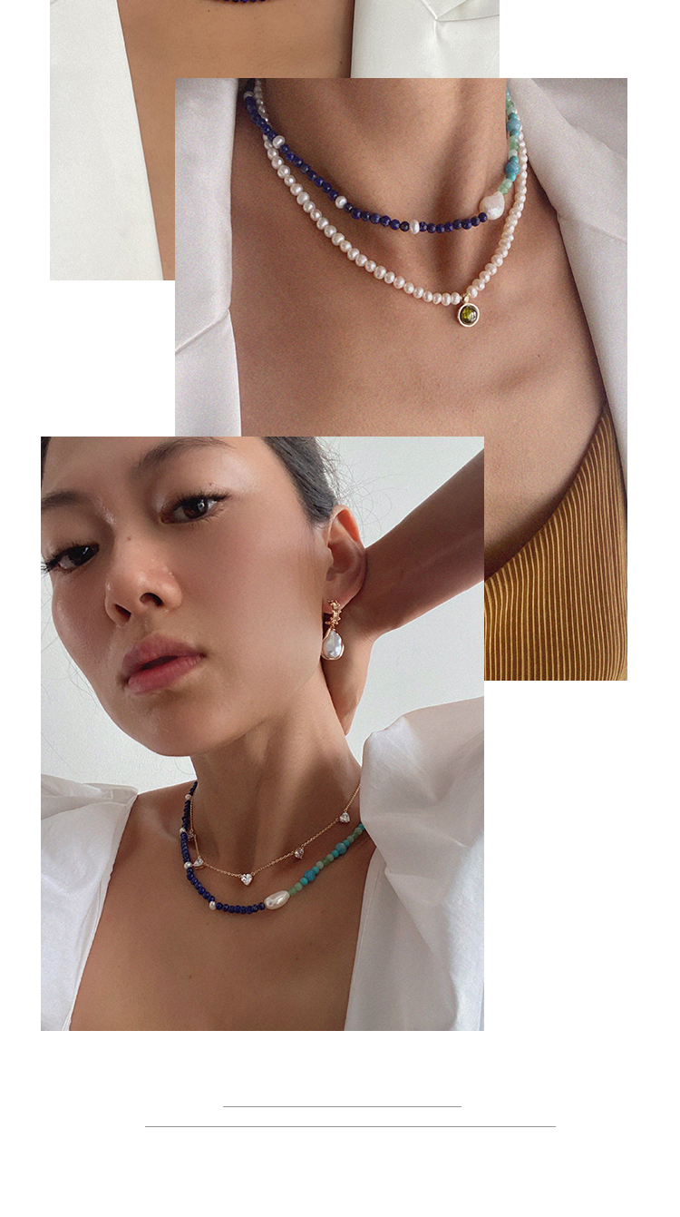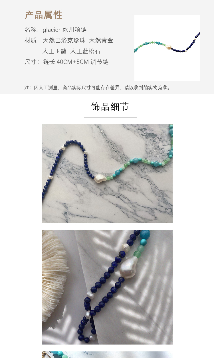 LHWINDSORglacier冰川项链原创设计松石珍珠颈链手工串珠颈链