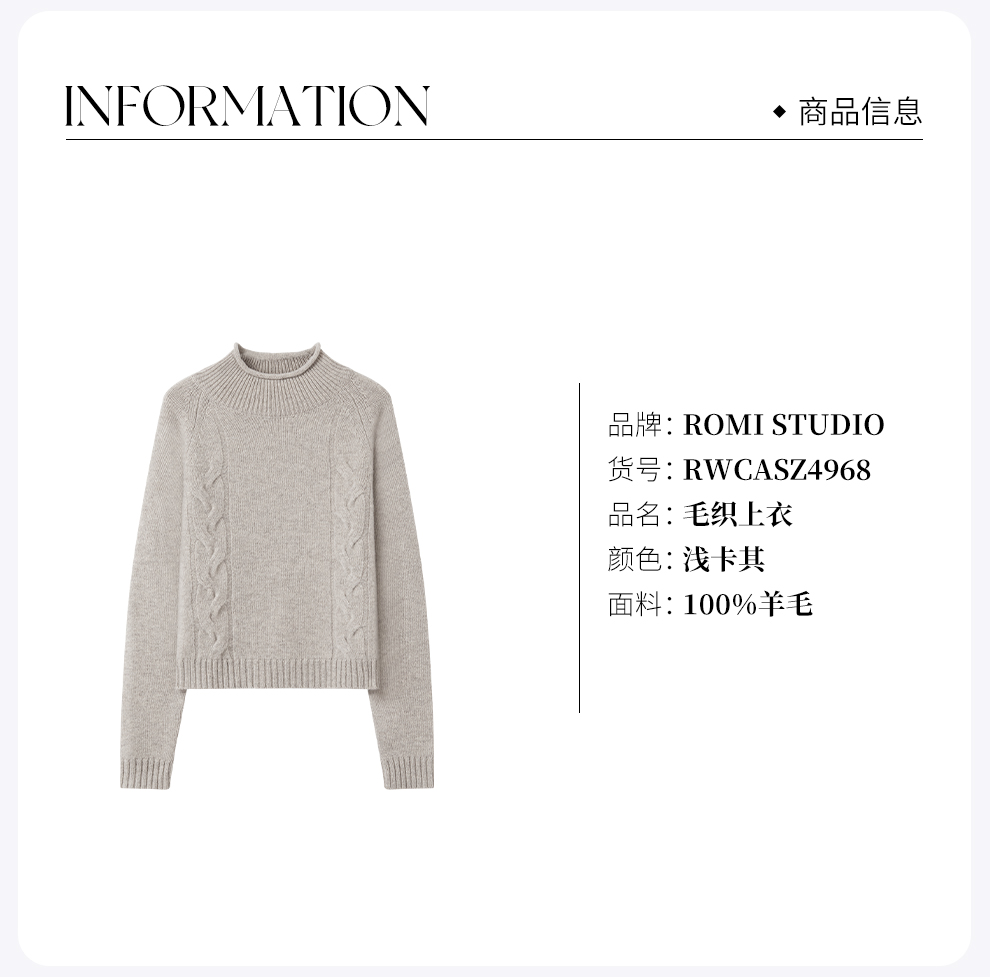 ROMI STUDIO“温暖如初”100%澳洲羊毛秋冬经典绞花毛衣RWCASZ4968