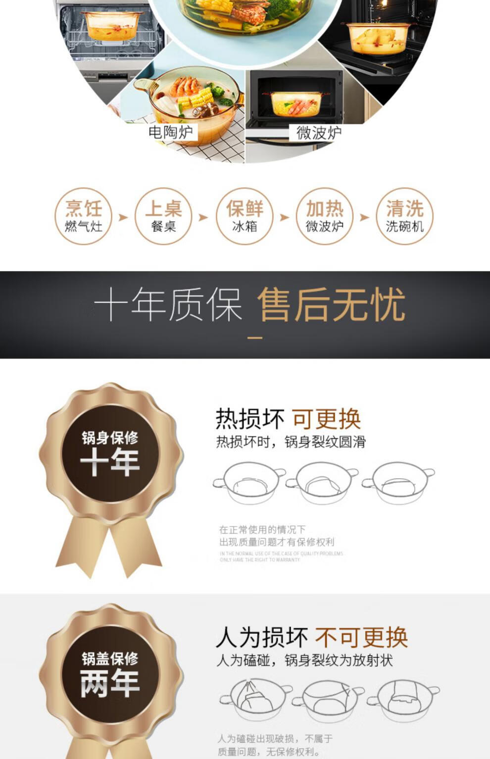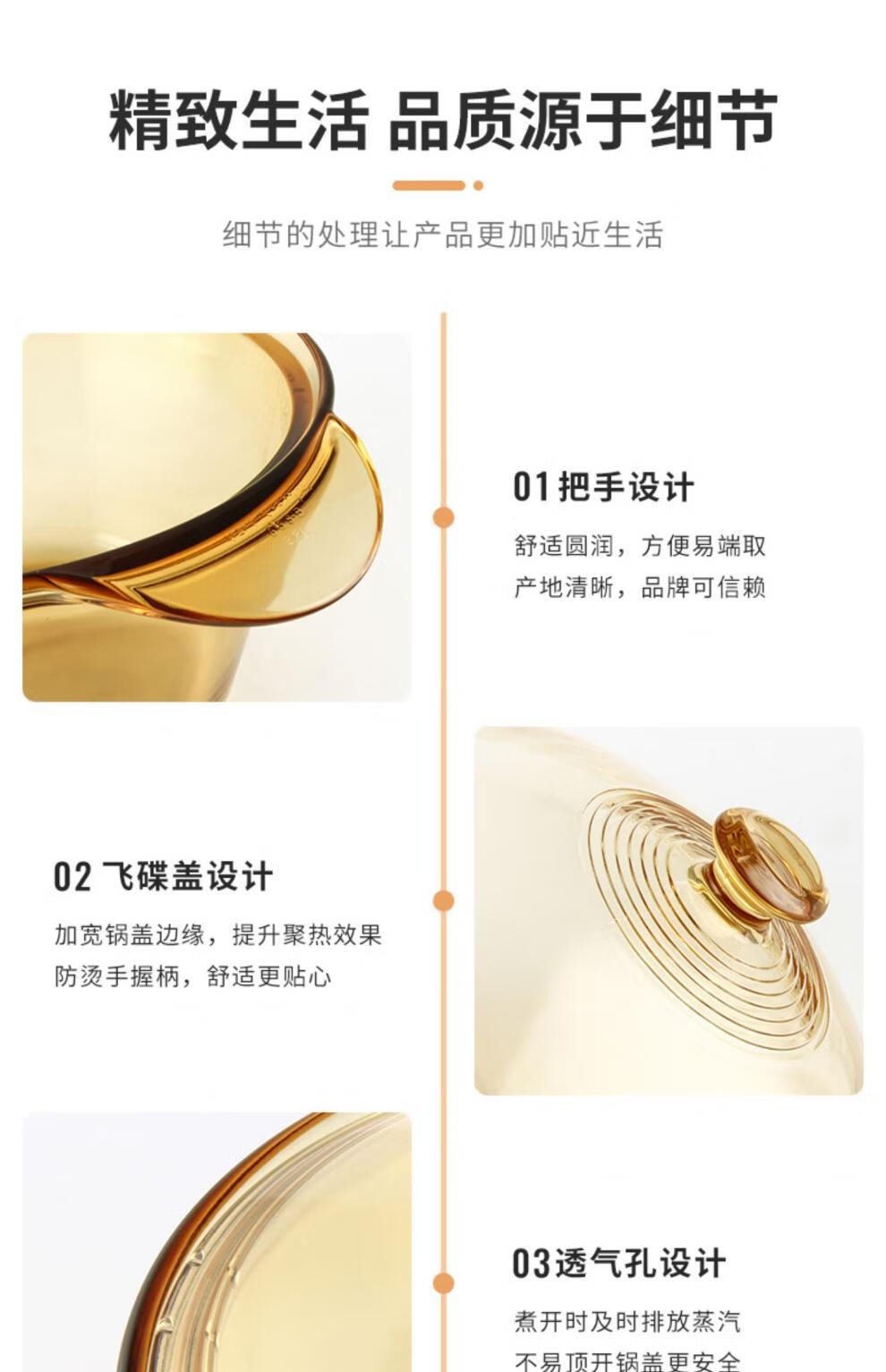 康宁美国康宁锅vs2.25升琥珀玻璃汤锅炖锅明火直烧耐高温燃气玻璃锅 20CM琥珀色蒸格 【配手套】