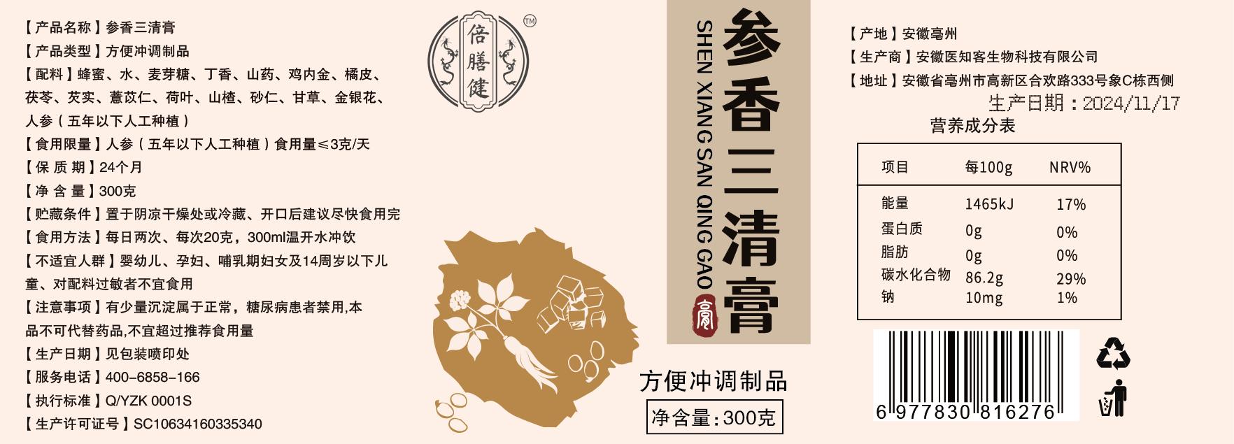 【官方旗舰】参香三清膏山药茯苓甄选食材古法熬制方便冲饮300g/罐