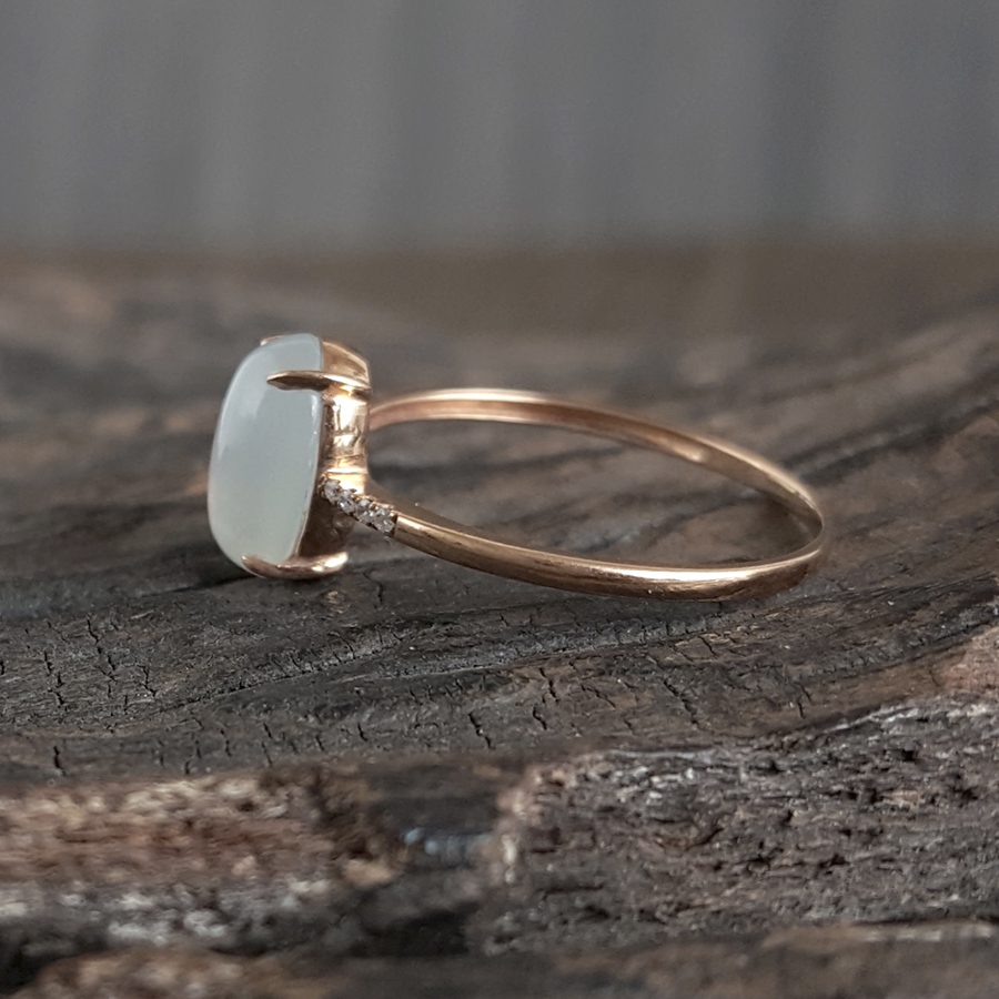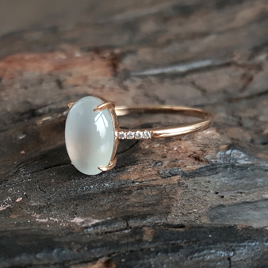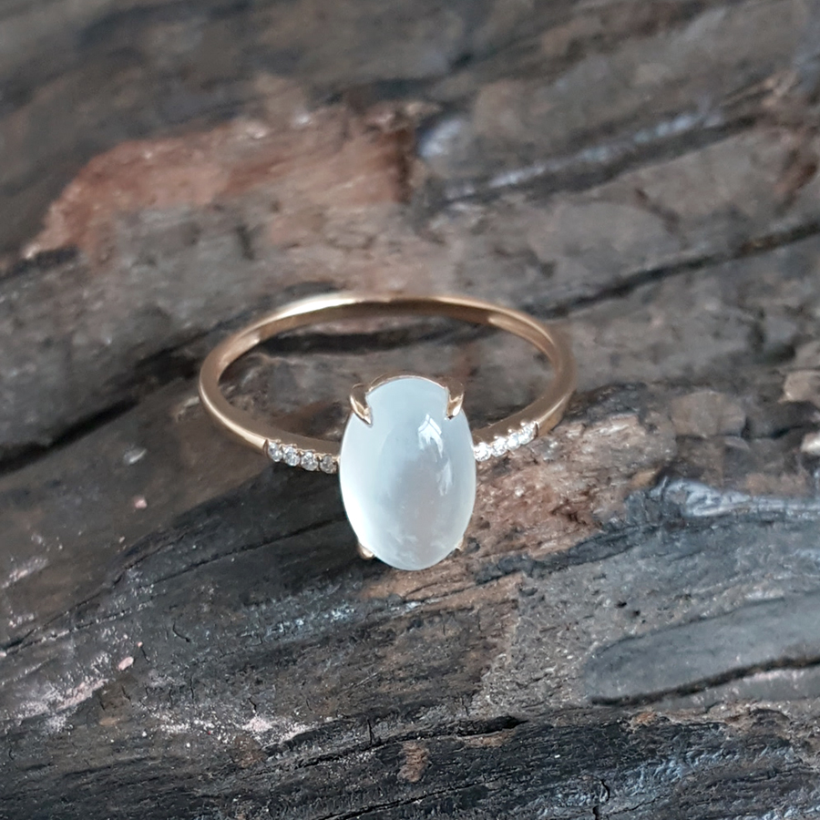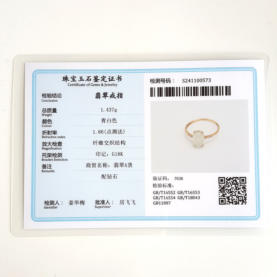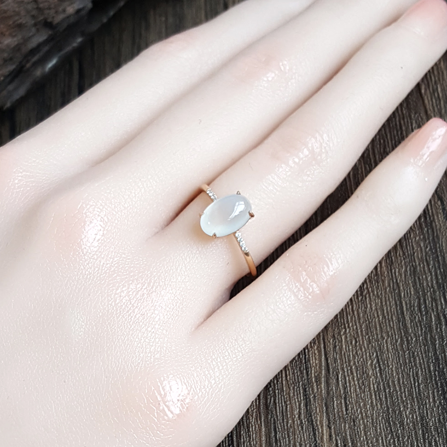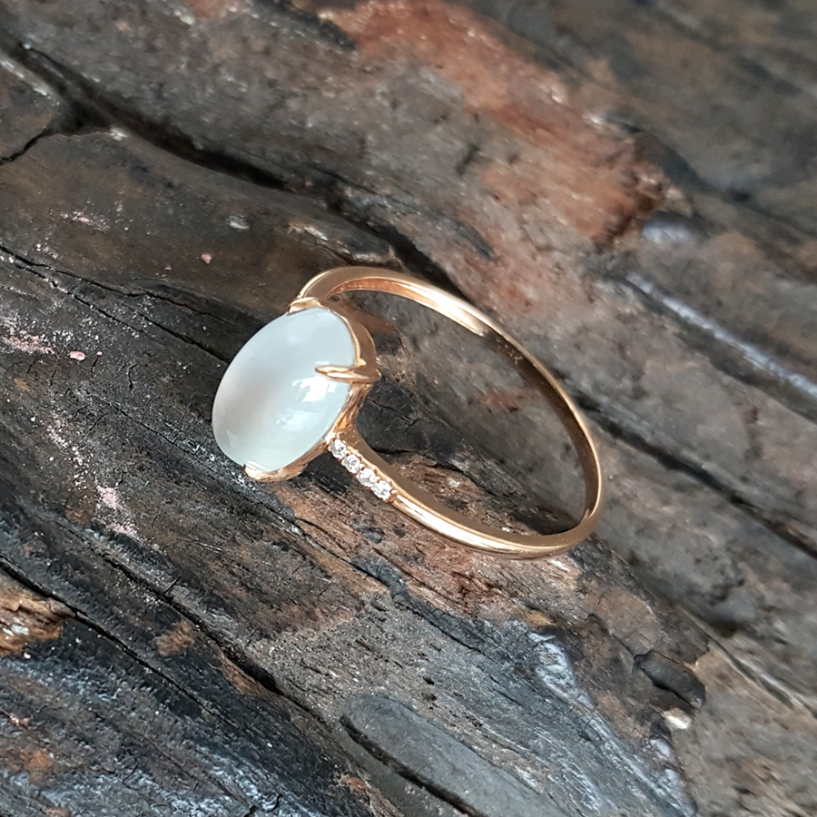 【天然正品】AU750玫瑰金镶钻镶天然冰种蛋面15号翡翠戒指041124AH11 现售价:1080(特价)