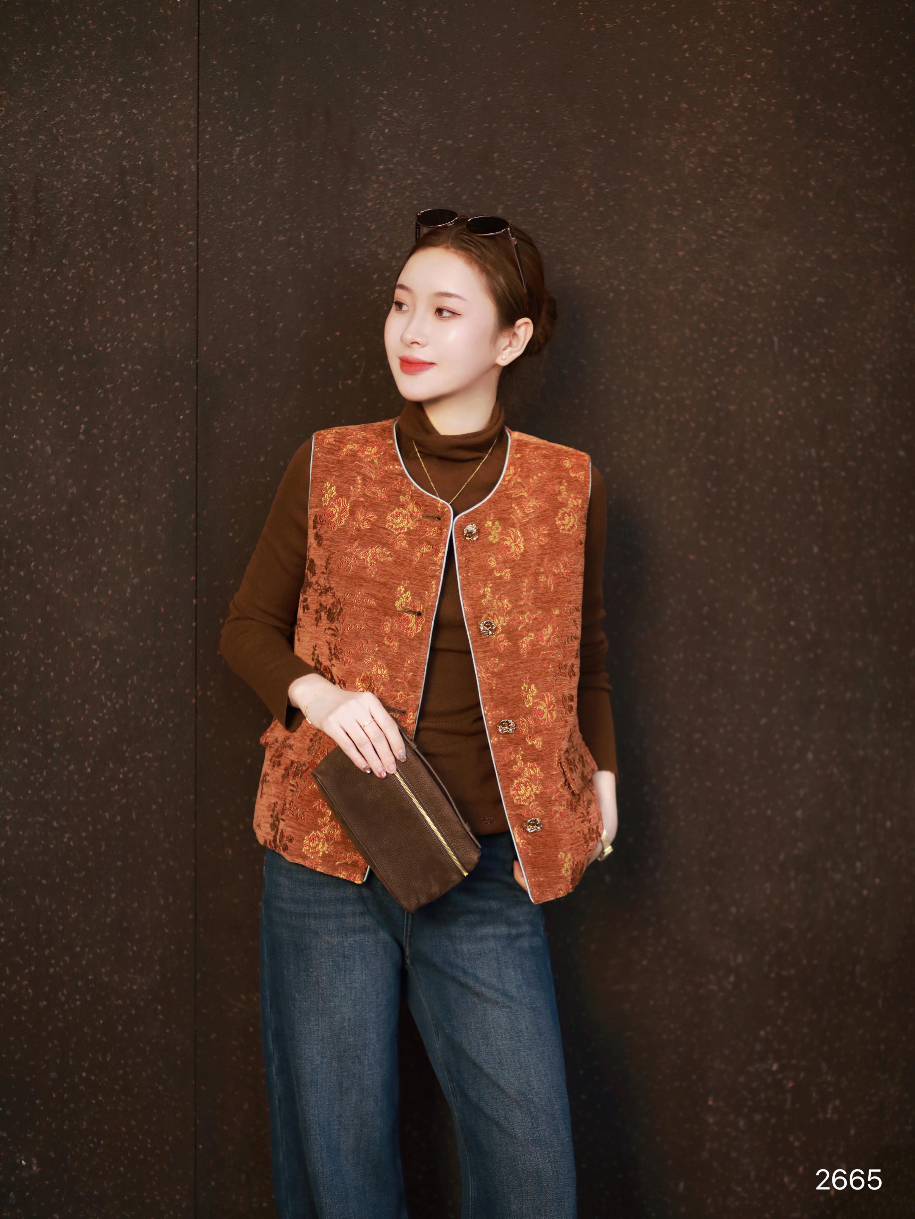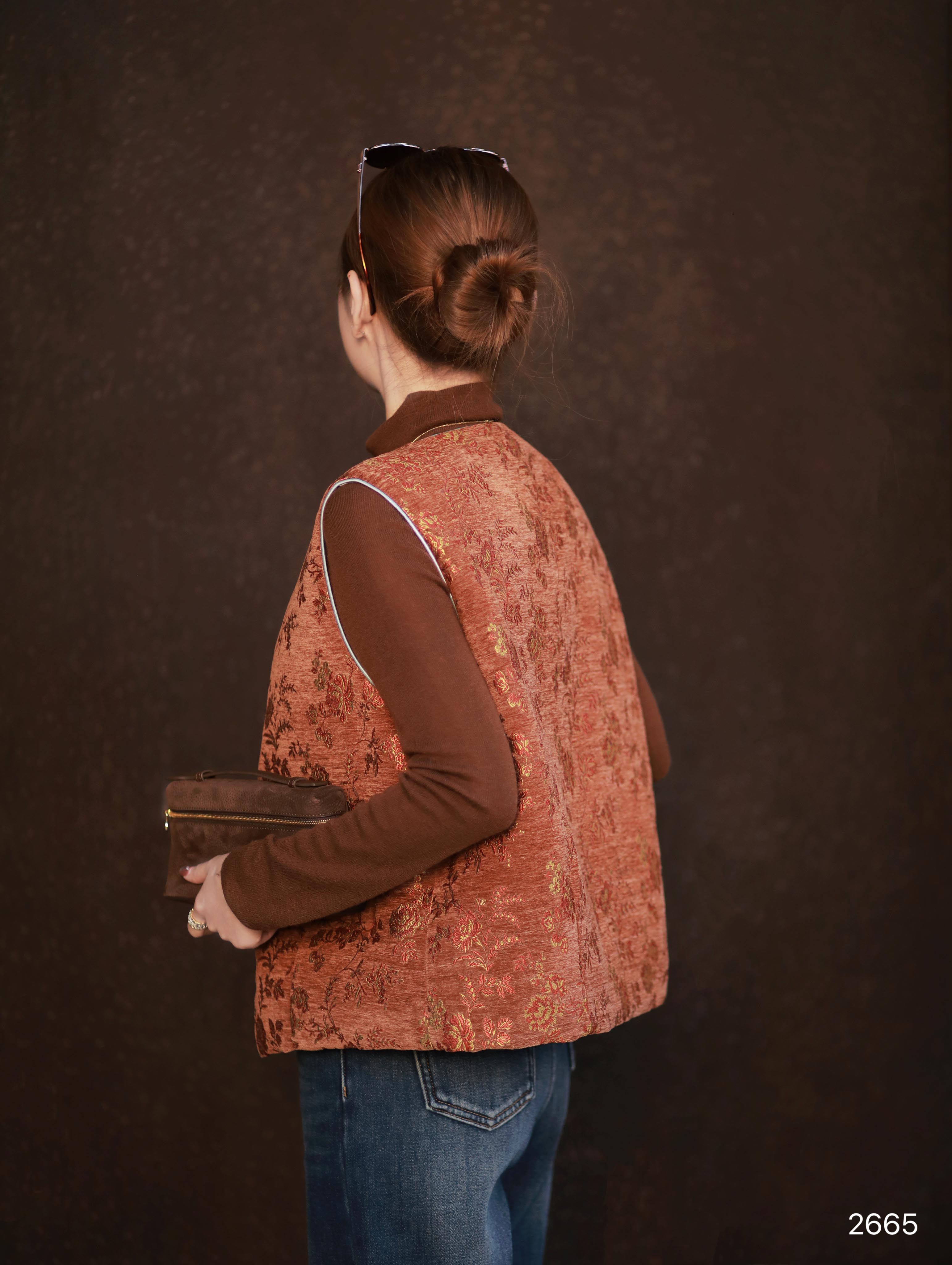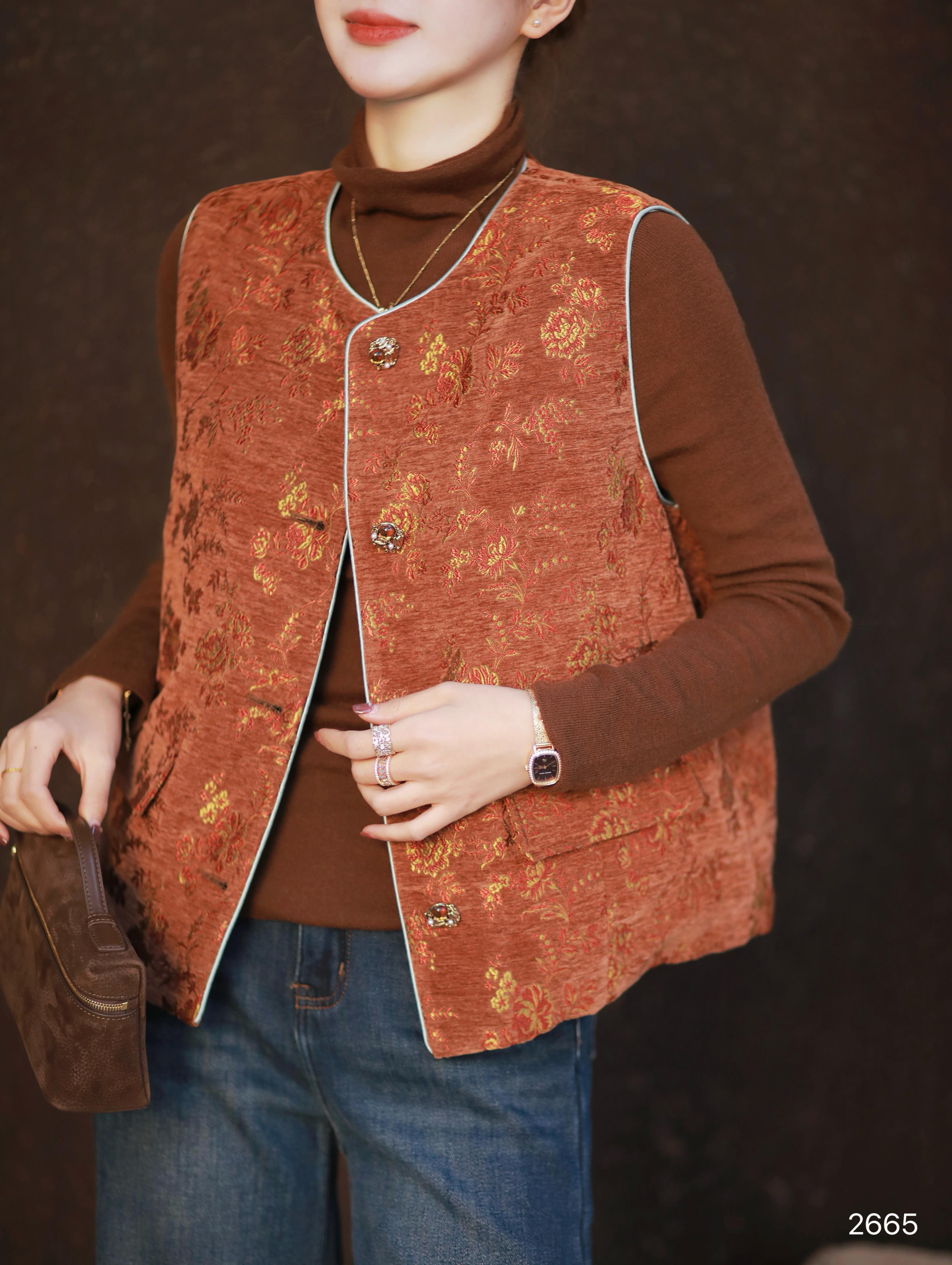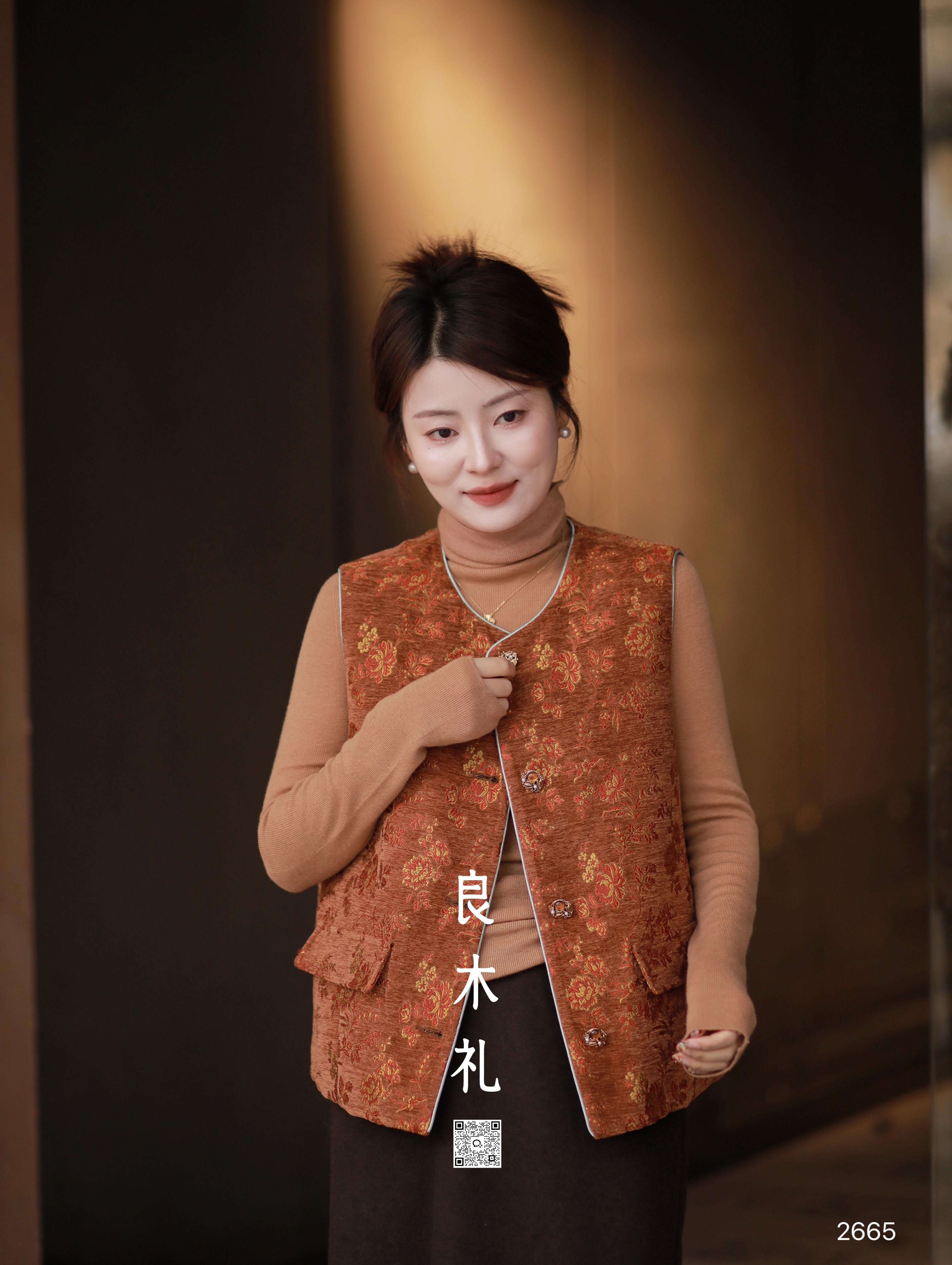 【特价不退换】良木礼鹅绒印花马甲(2665)