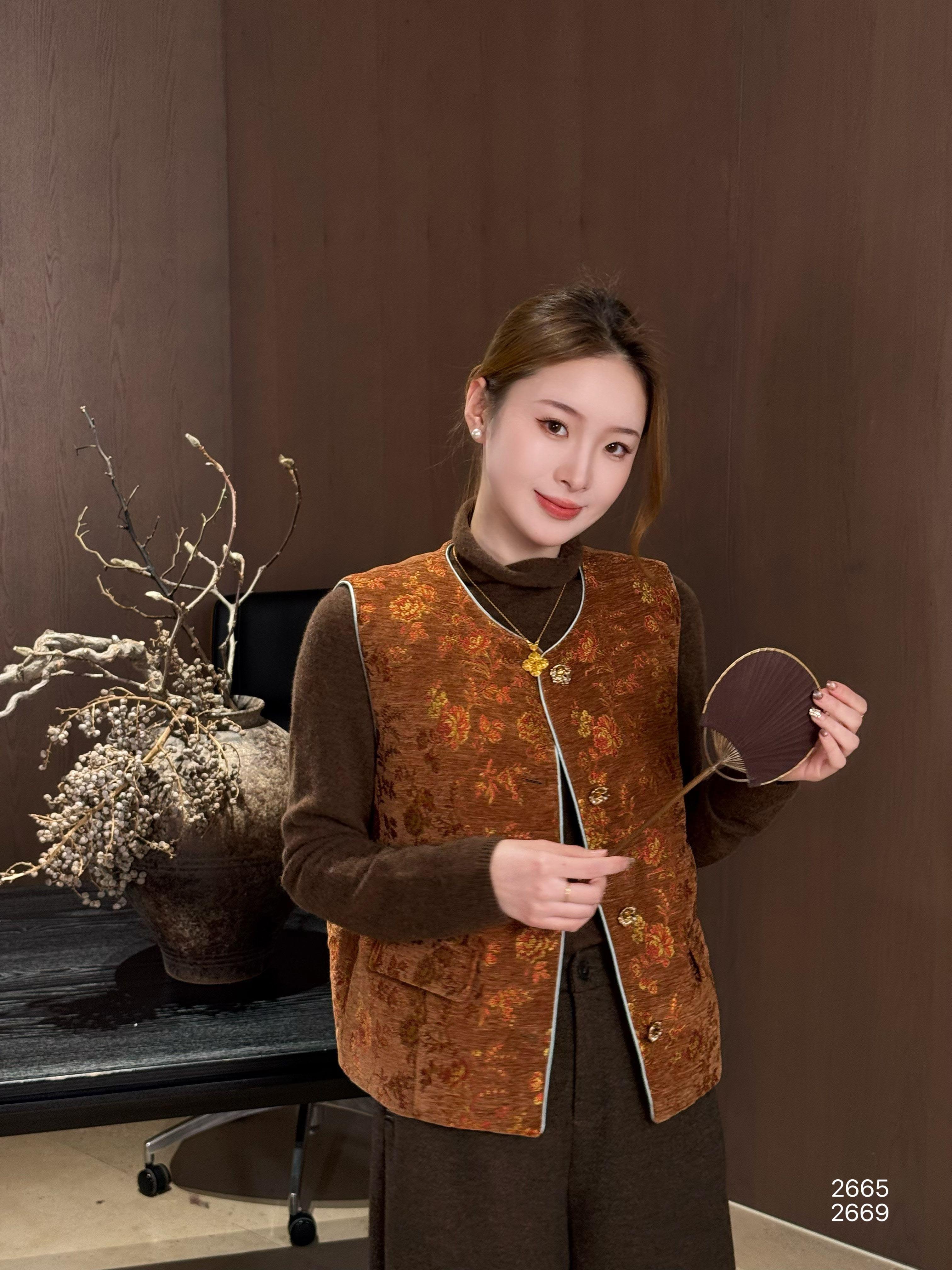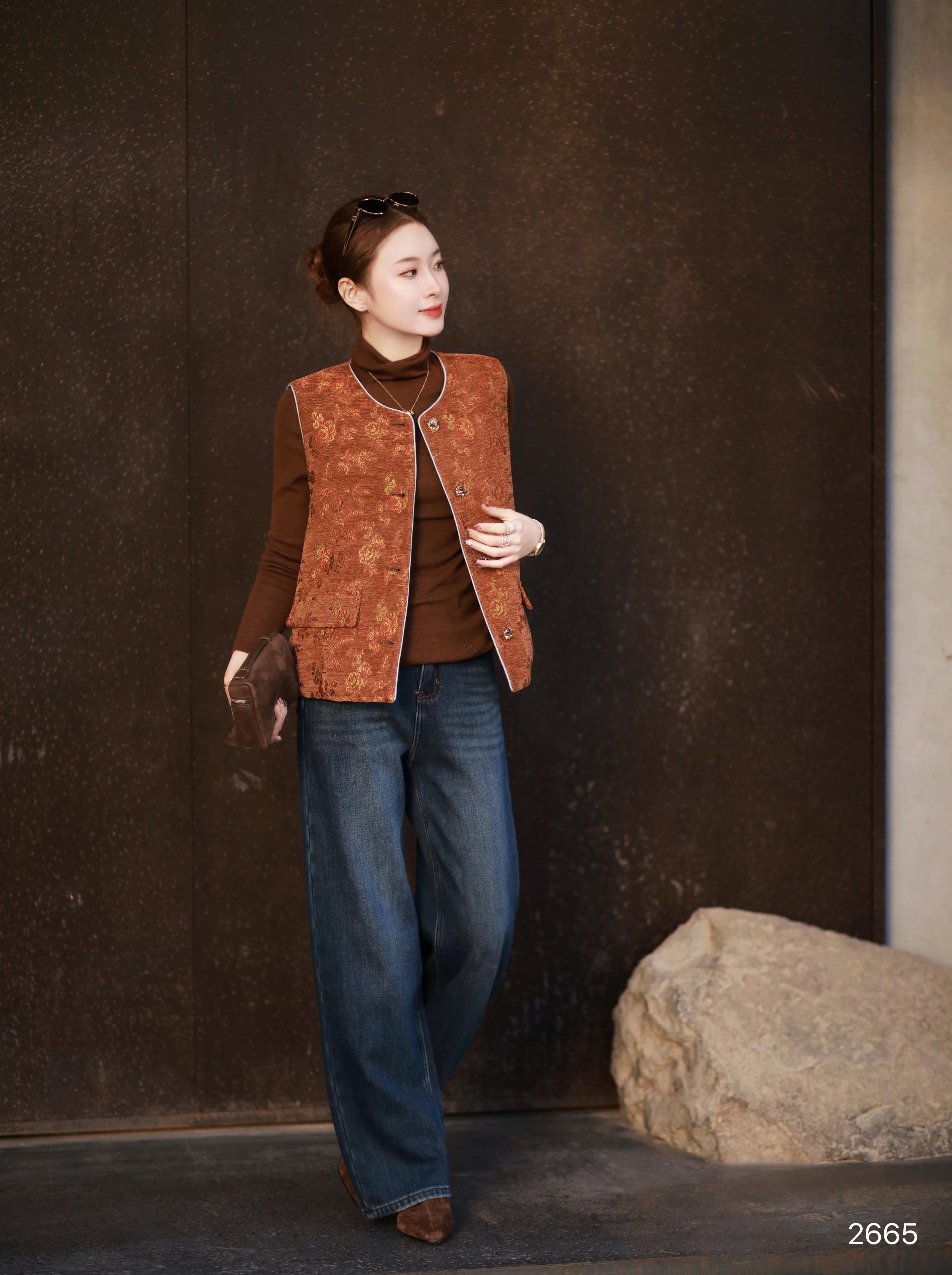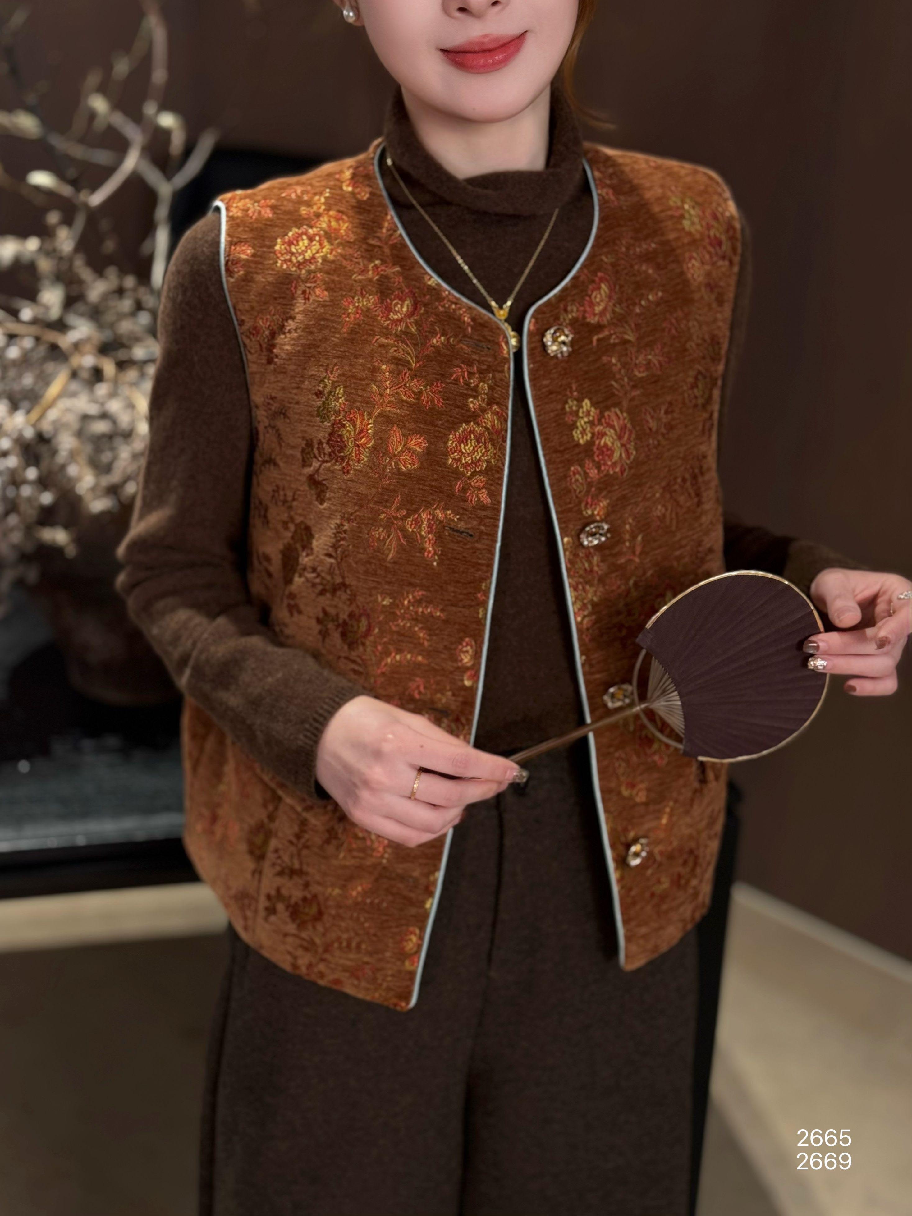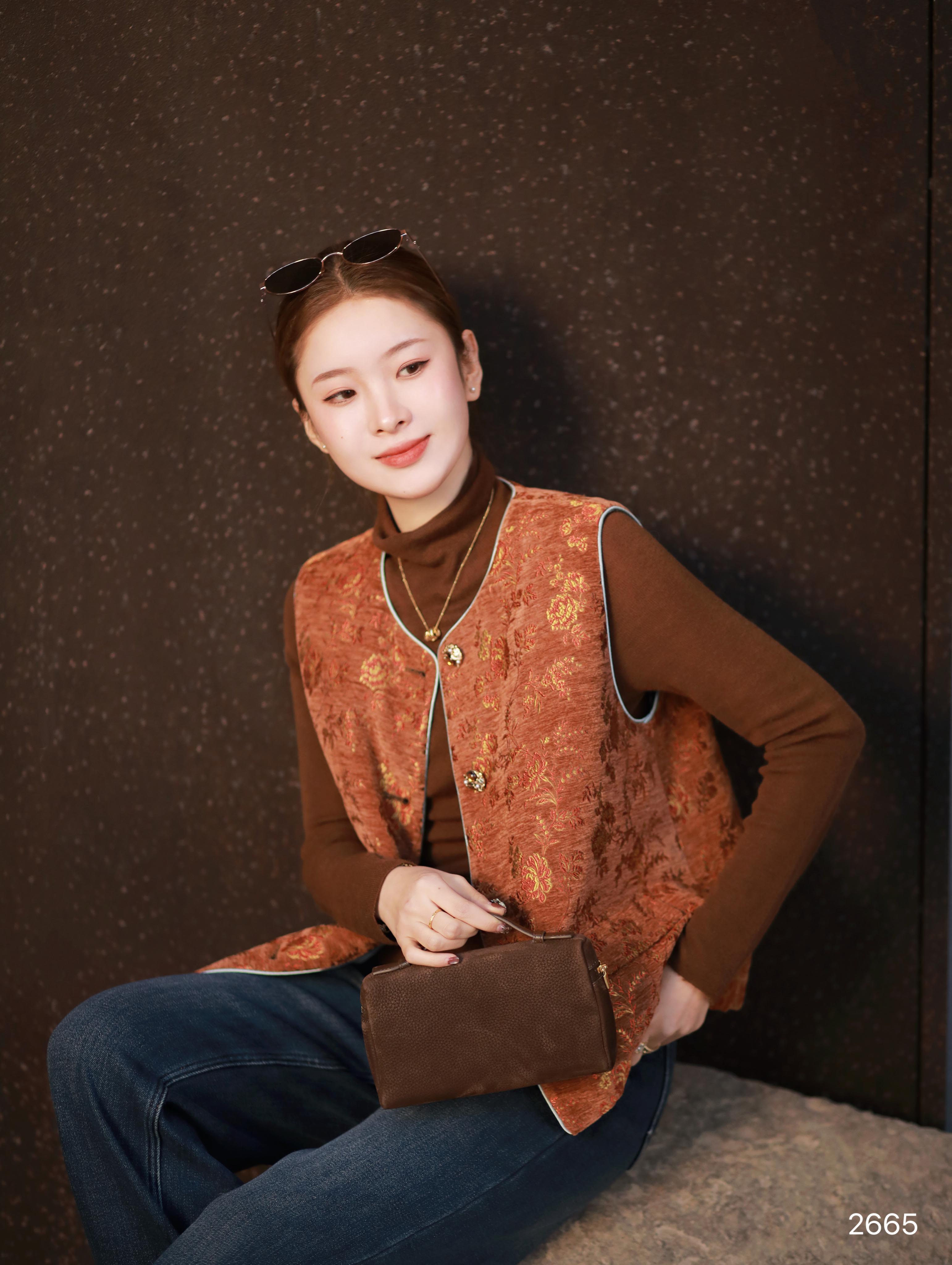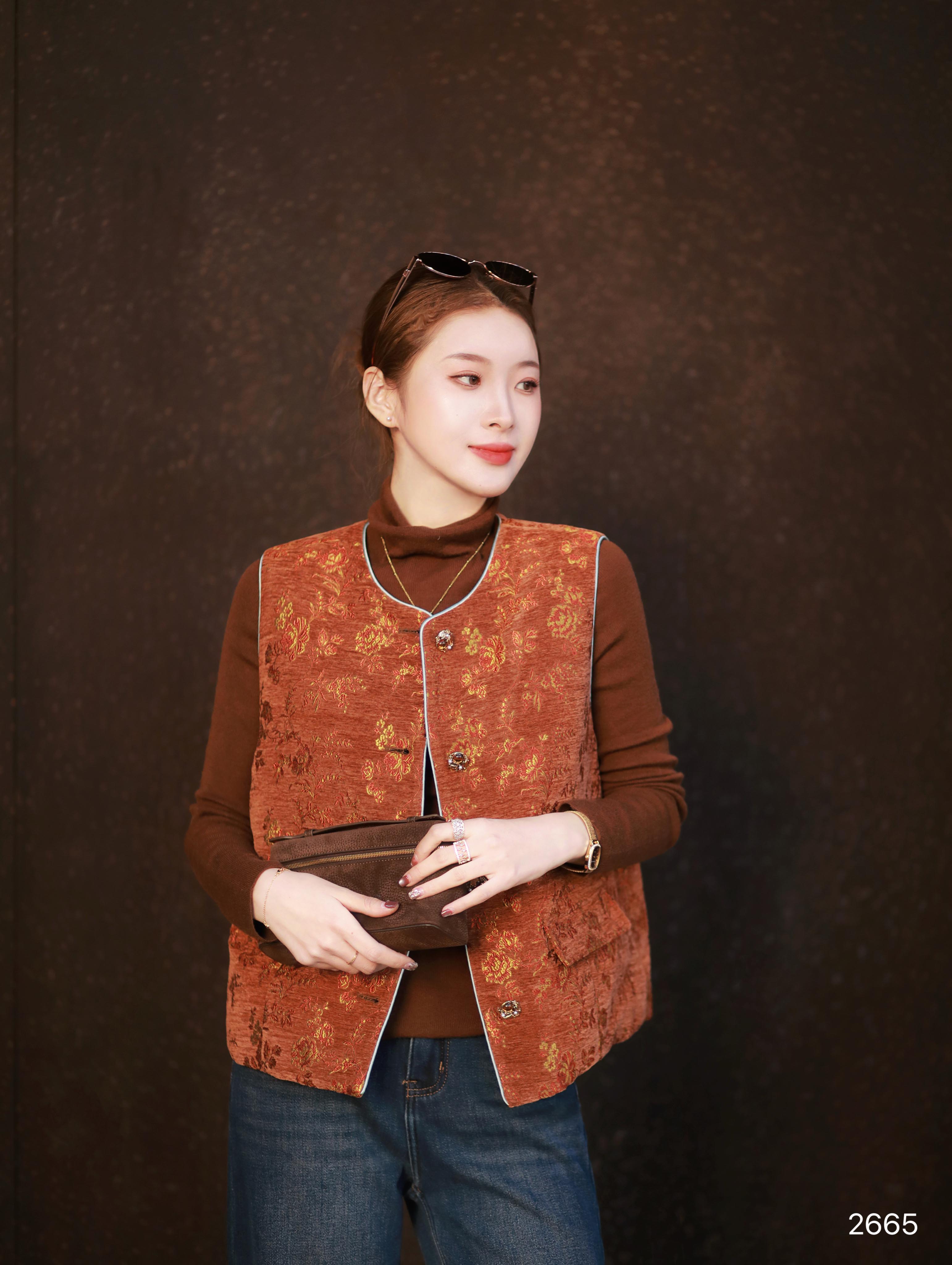 【特价不退换】良木礼鹅绒印花马甲(2665)