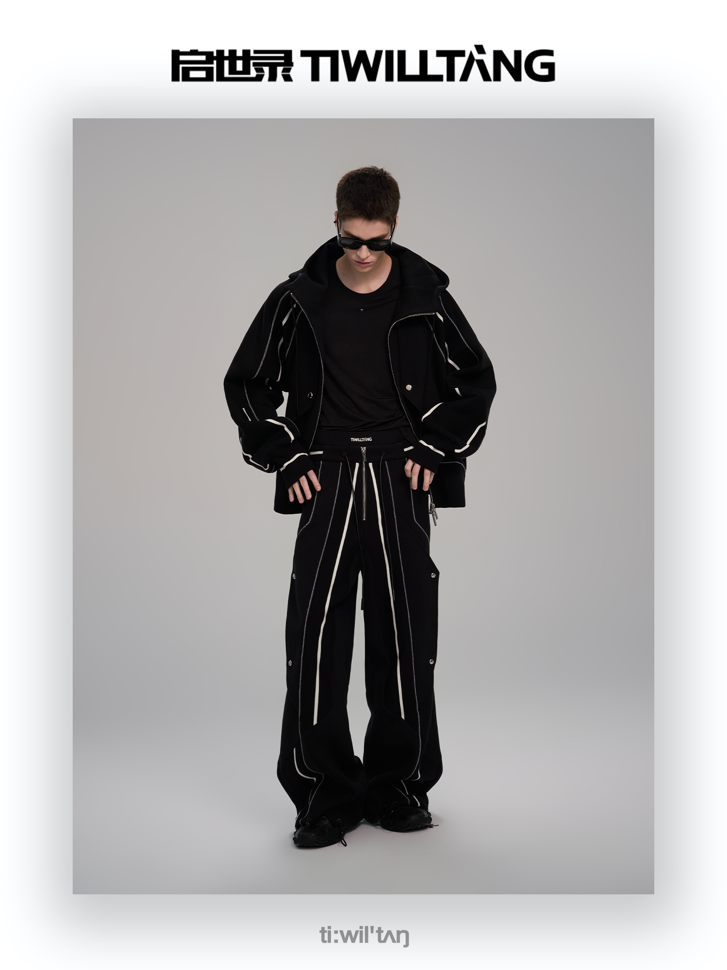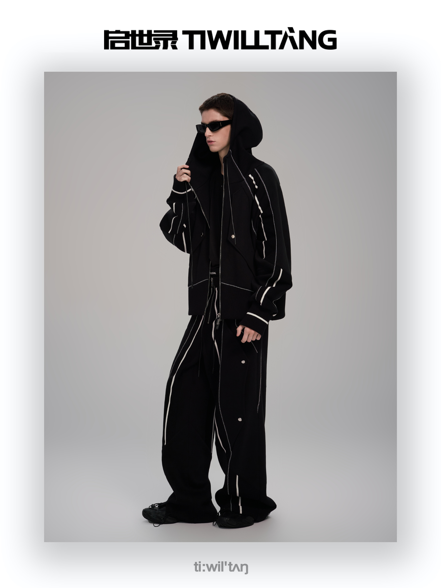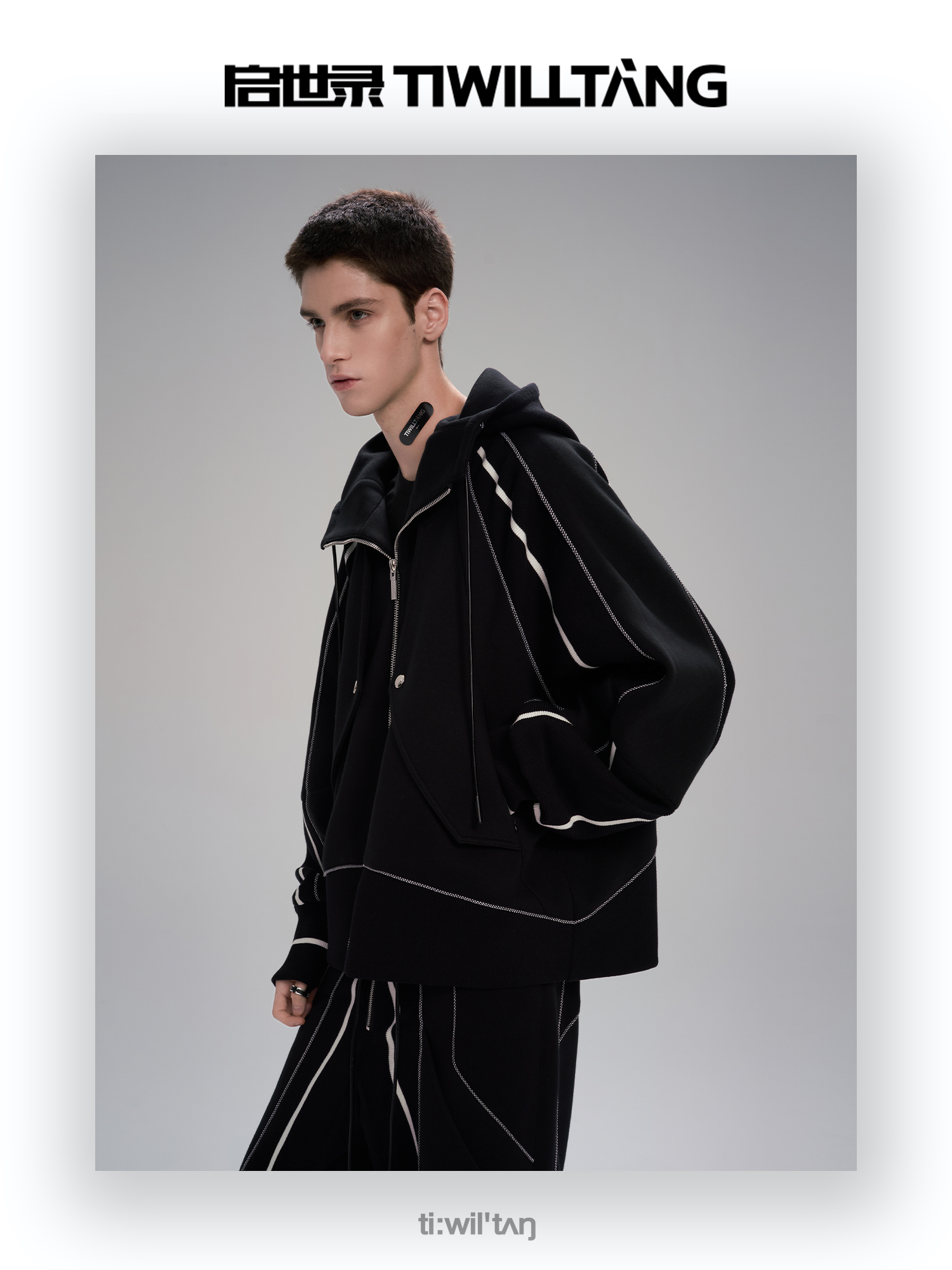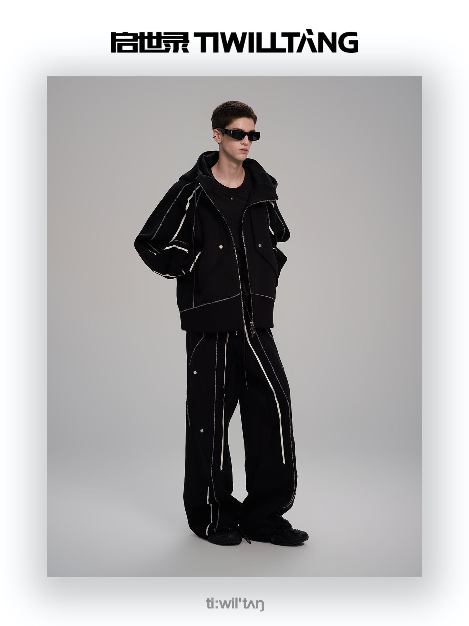 启世录TIWILLTANG“黎曜墨序 ”撞色螺纹卫衣裤子套装