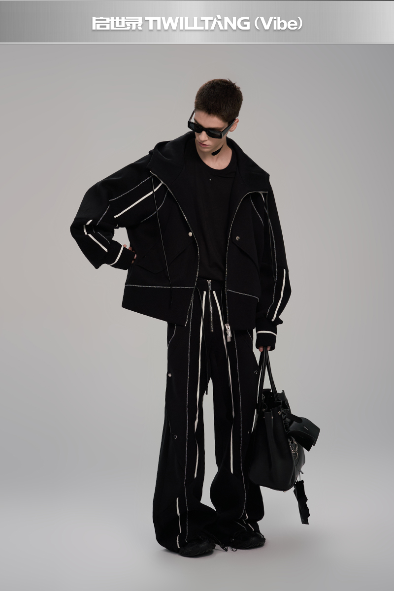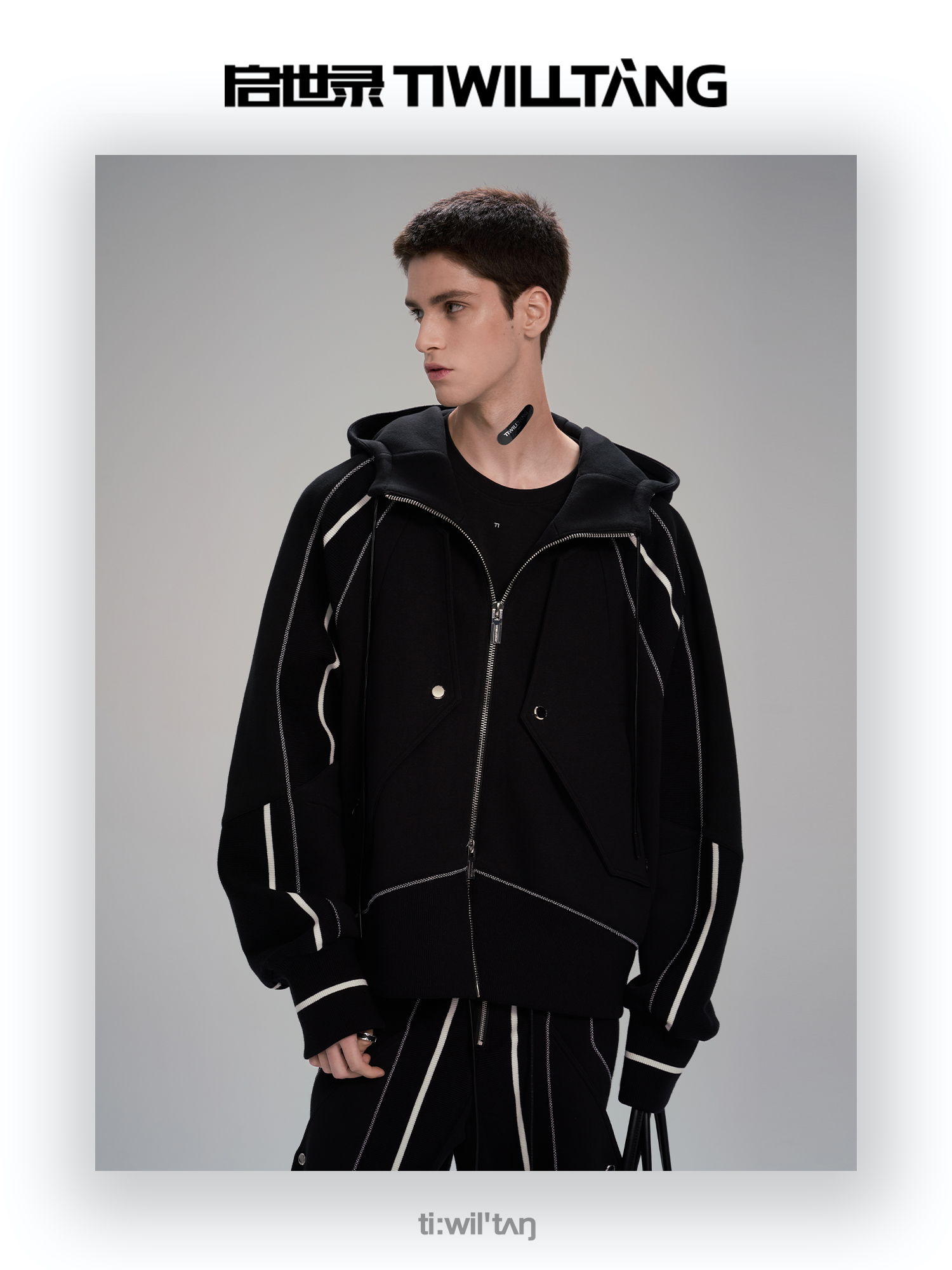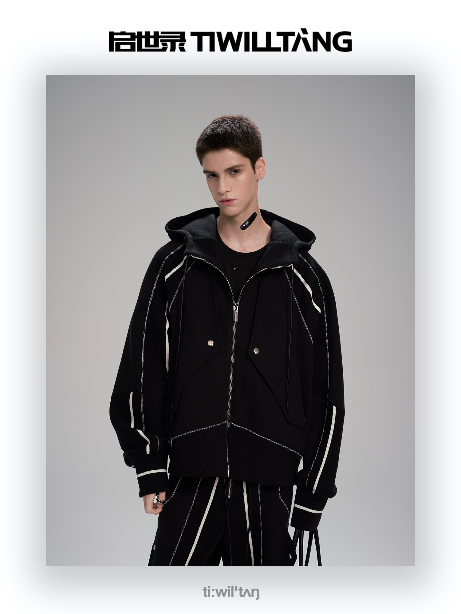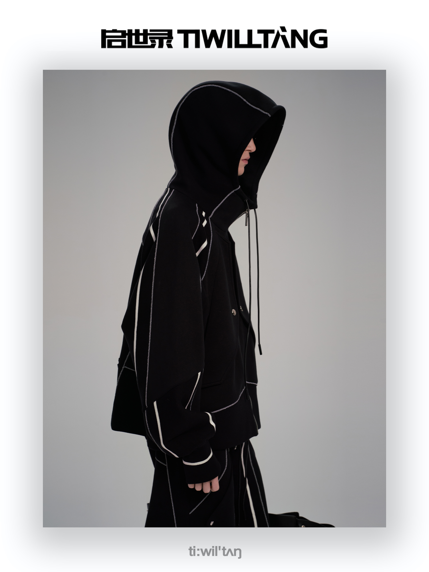 启世录TIWILLTANG“黎曜墨序 ”撞色螺纹卫衣裤子套装