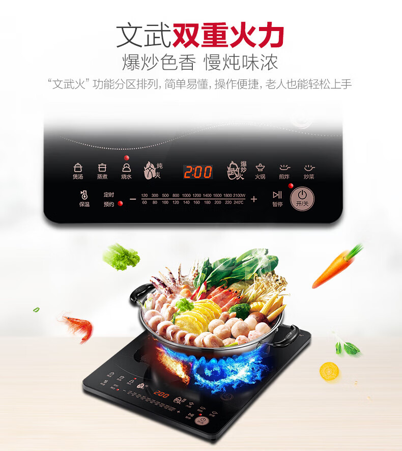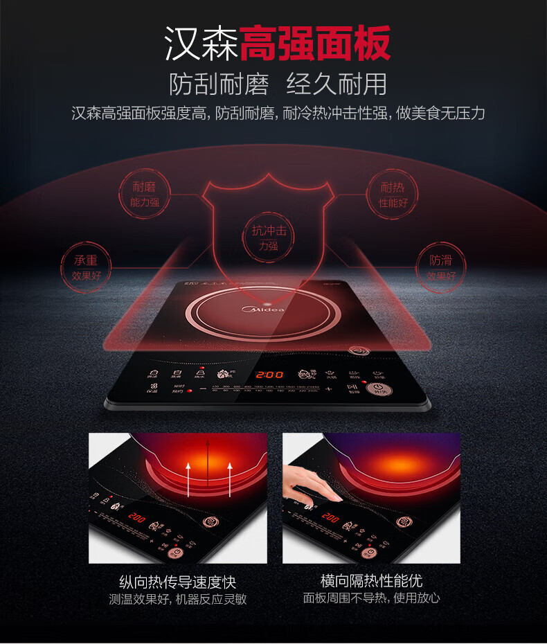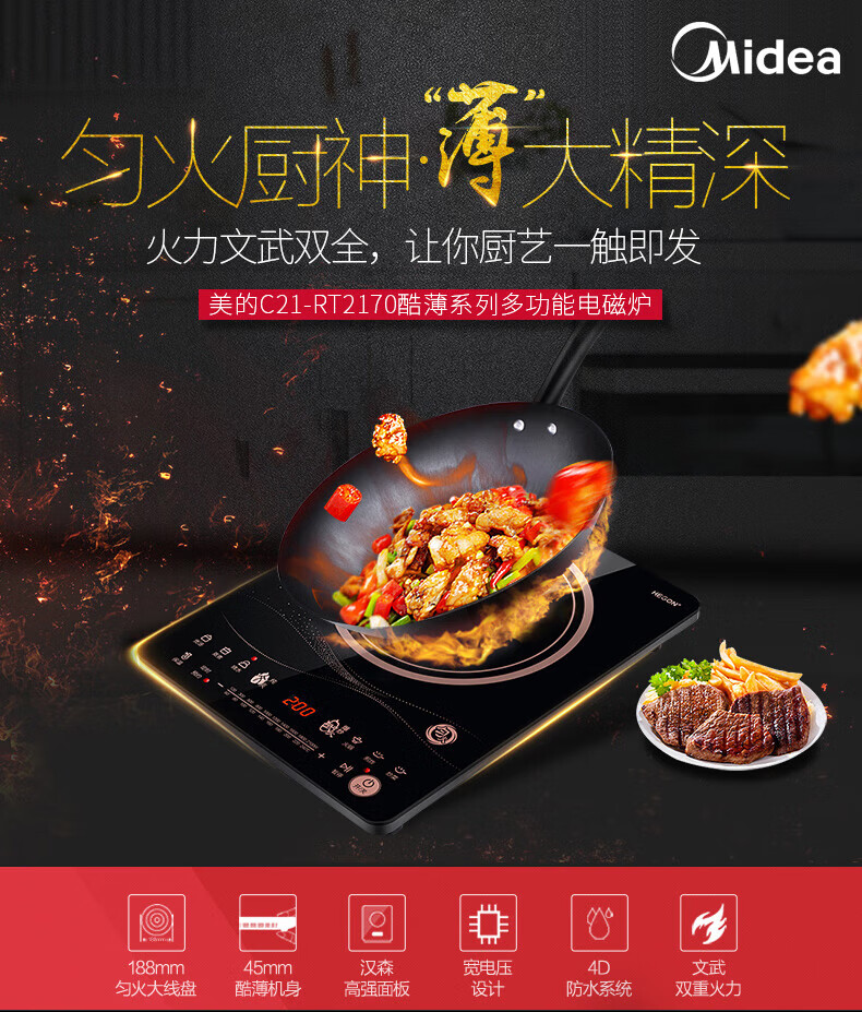 美的(Midea) C21-RT2170智能电磁炉超薄触摸爆炒大火力火锅匀火大线圈多功能2100W