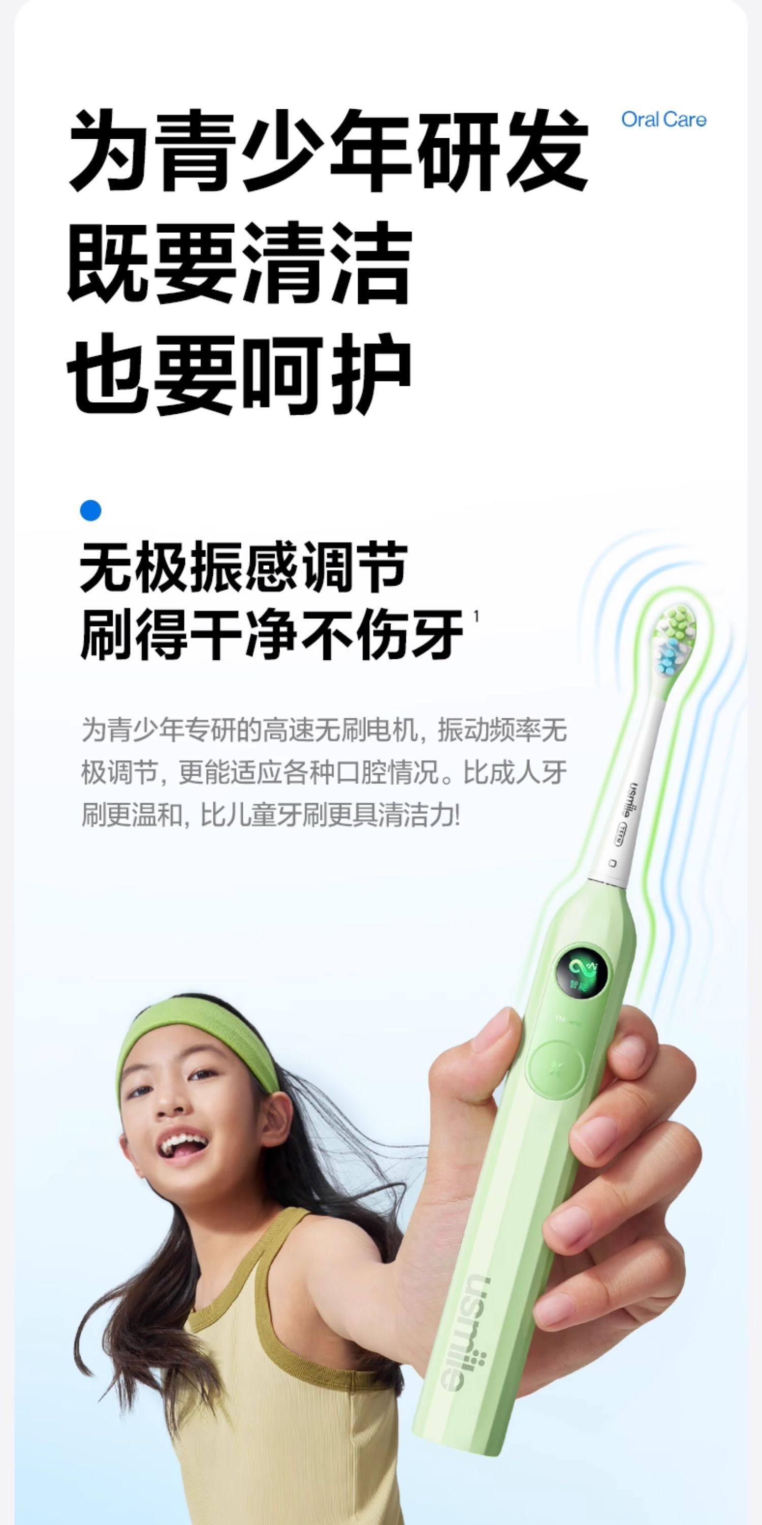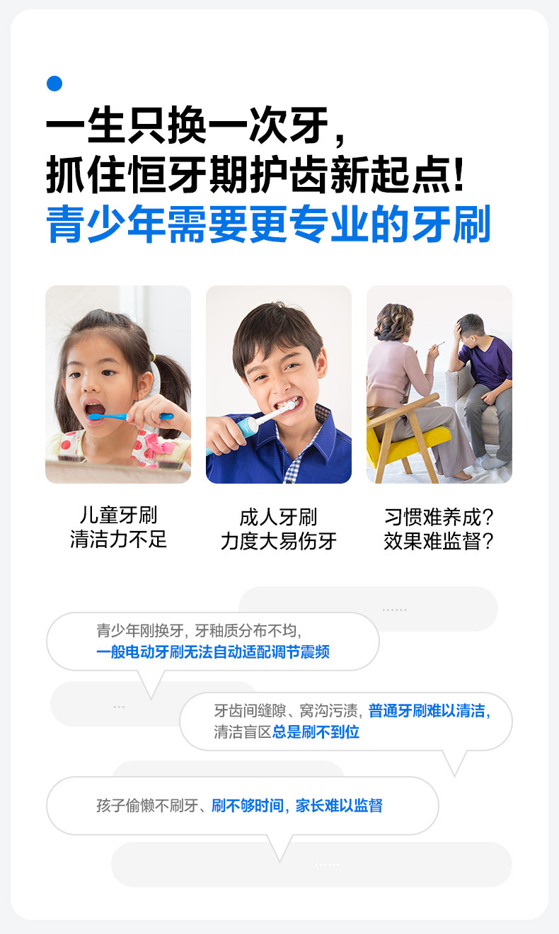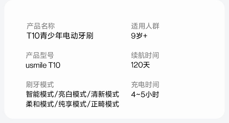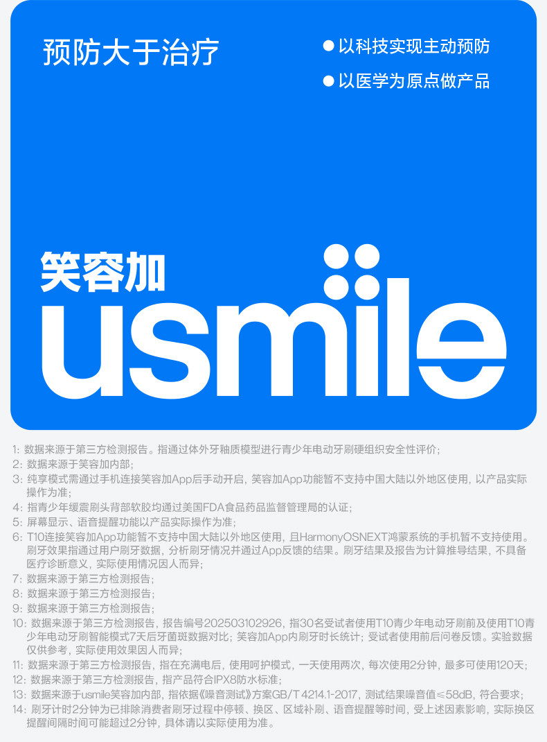 笑容加usmile青少年专用电动牙刷9-18岁智能语音提醒声波牙刷T10