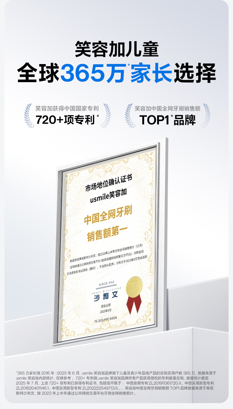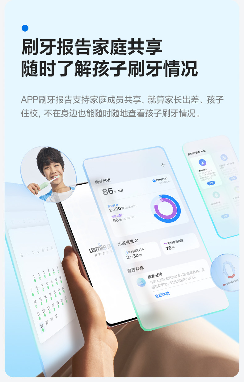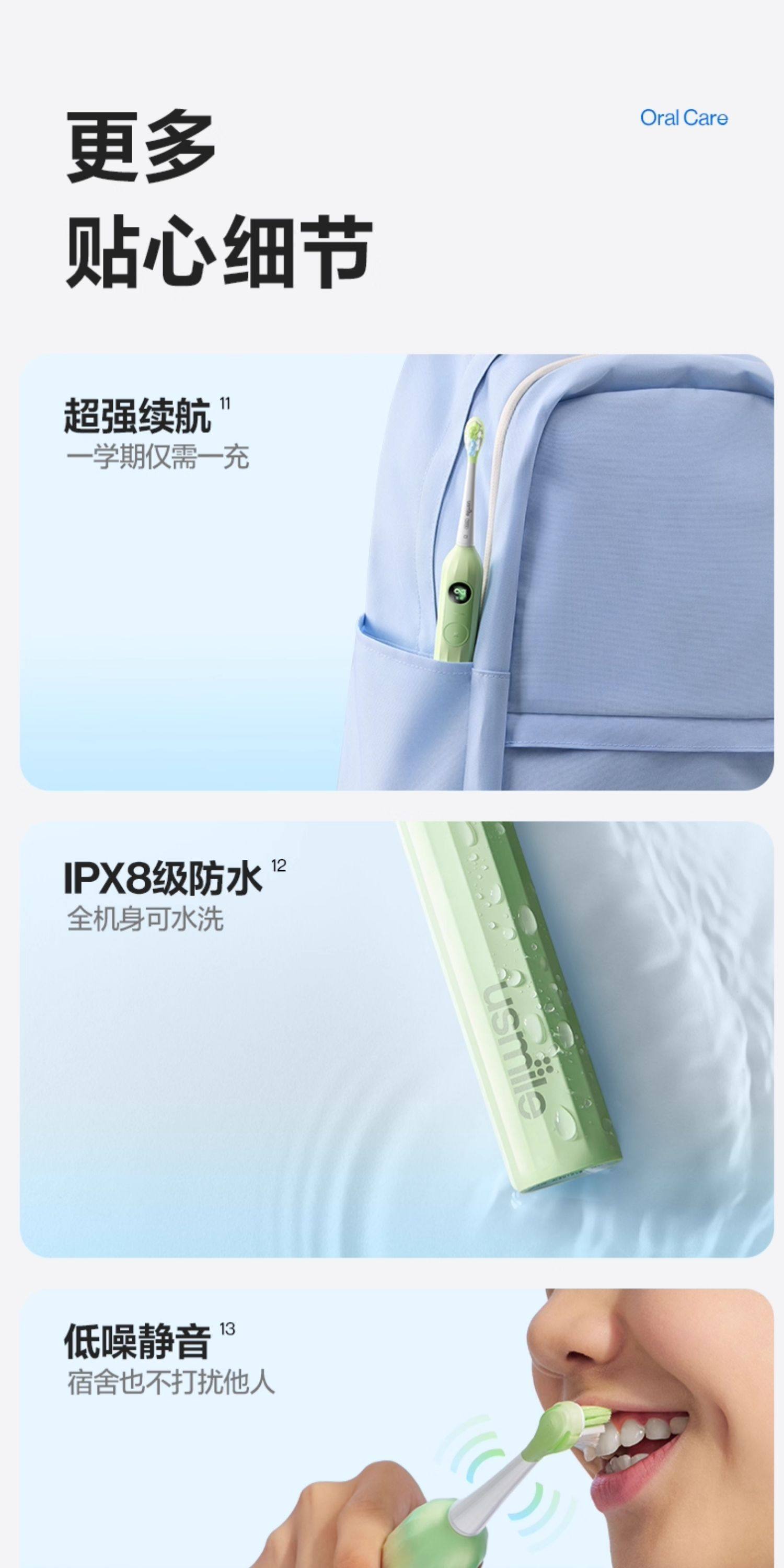 笑容加usmile青少年专用电动牙刷9-18岁智能语音提醒声波牙刷T10