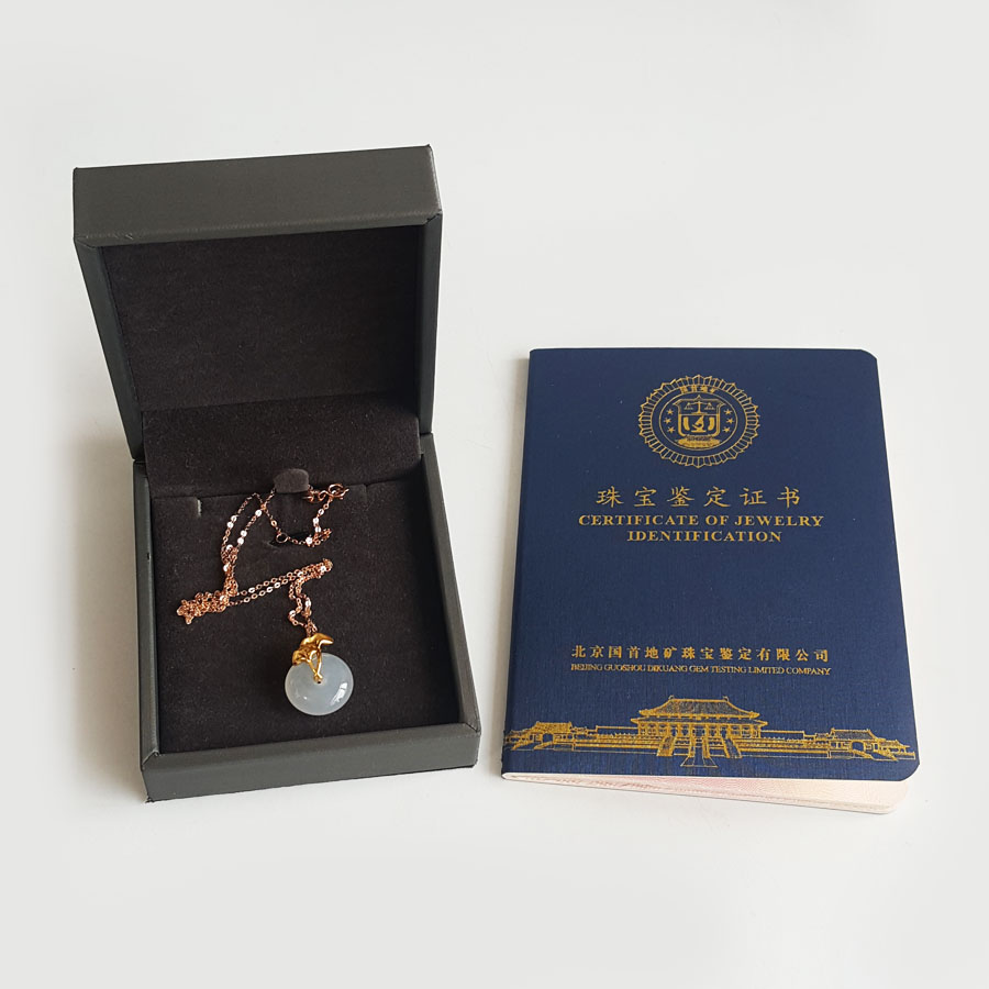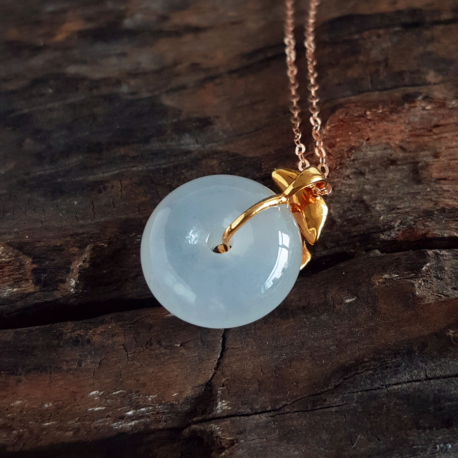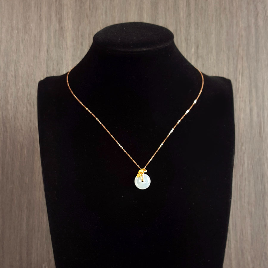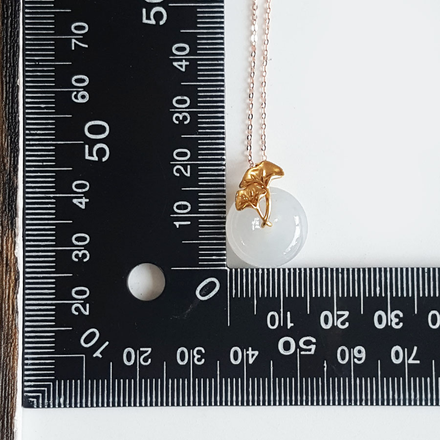 名称 | AU750黄金镶天然冰种白色平安扣造型翡翠吊坠项链 |