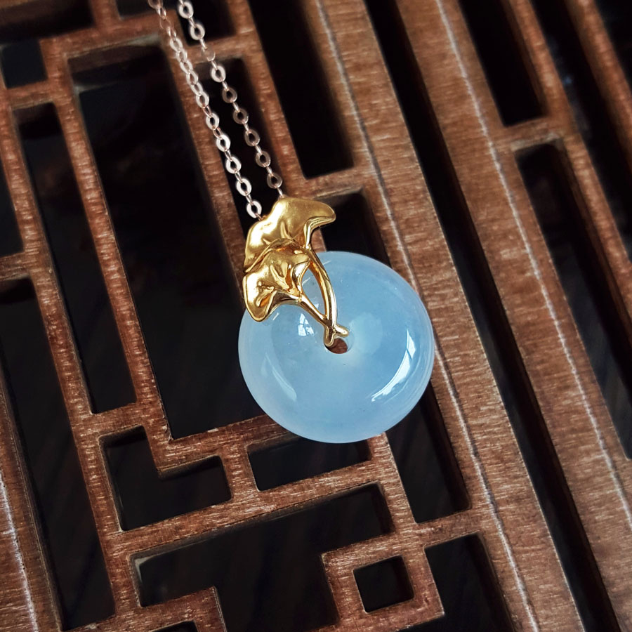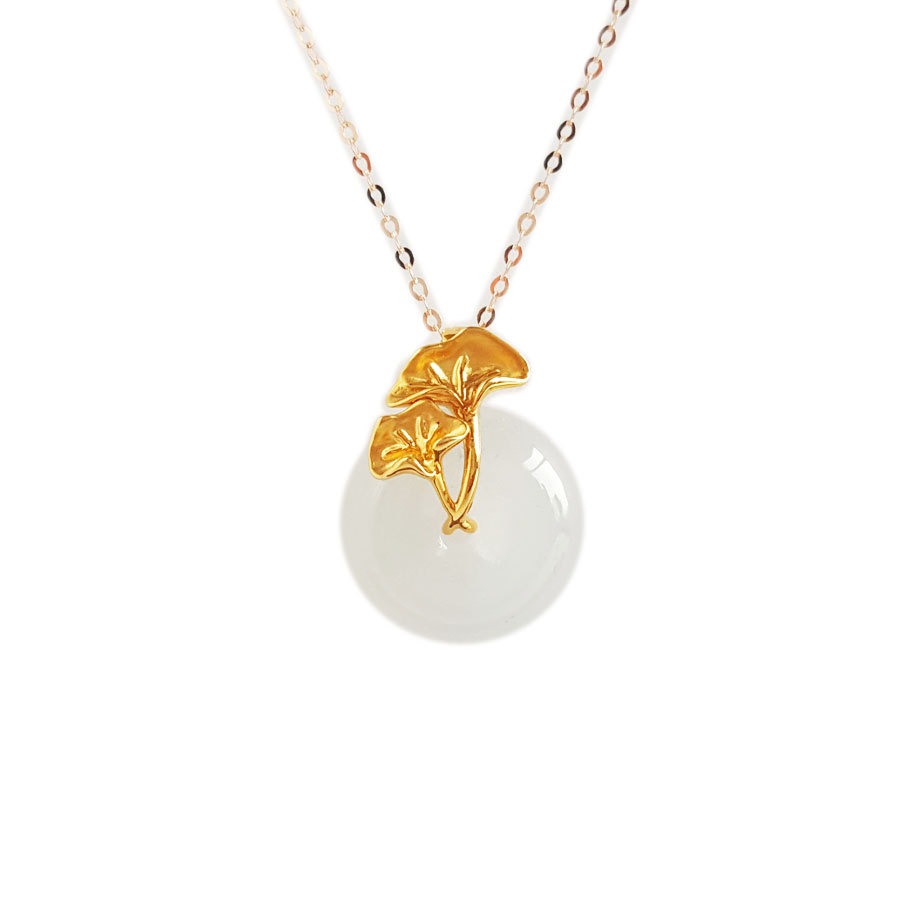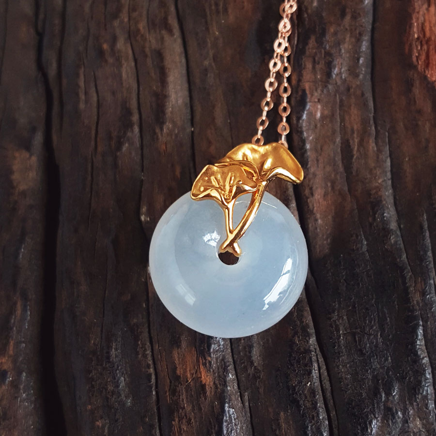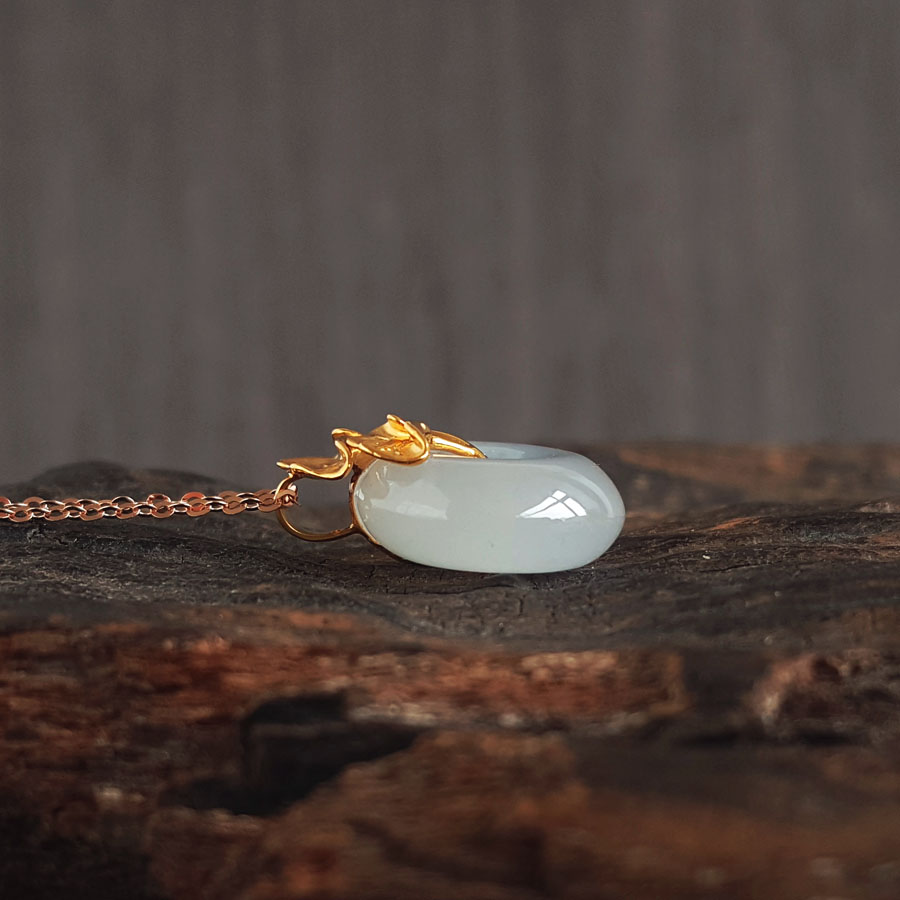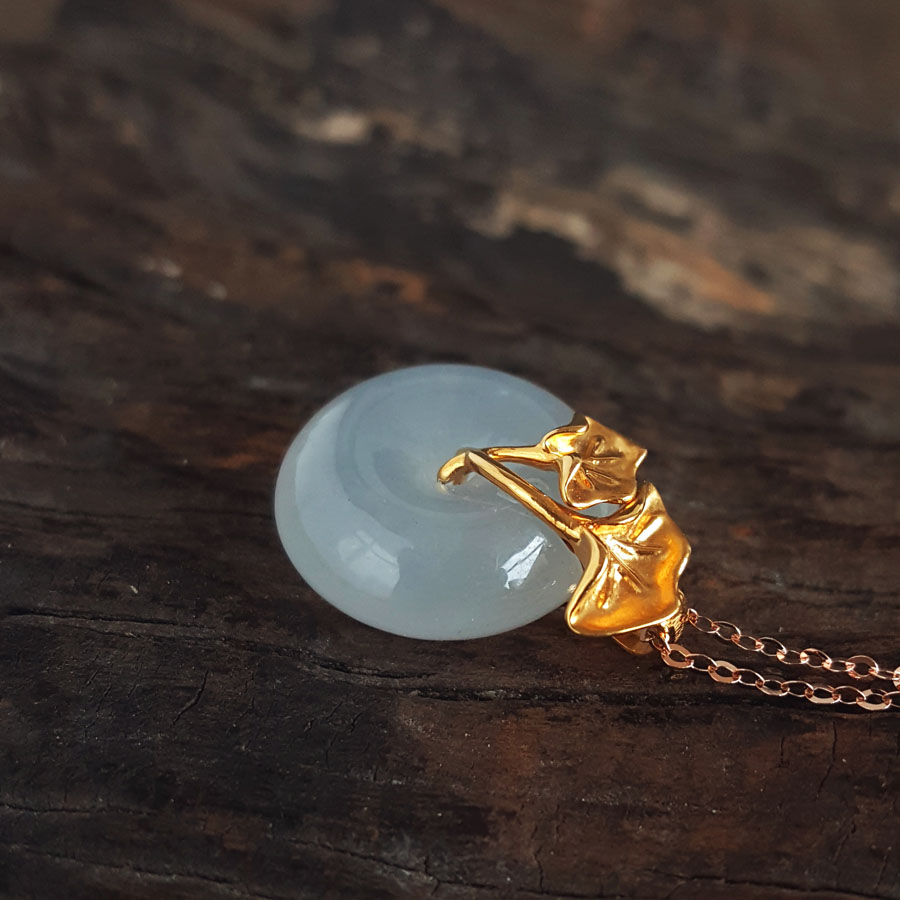 名称 | AU750黄金镶天然冰种白色平安扣造型翡翠吊坠项链 |