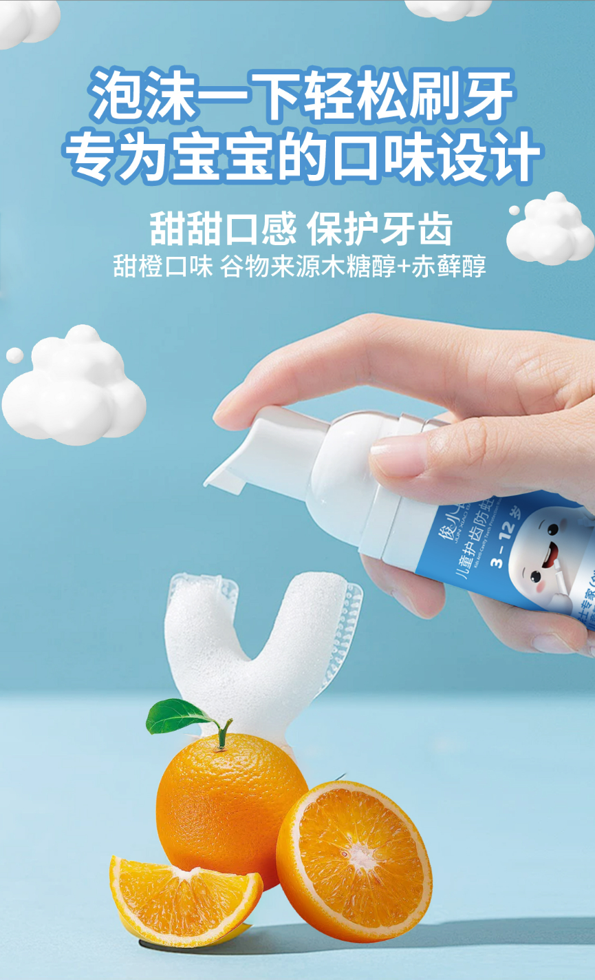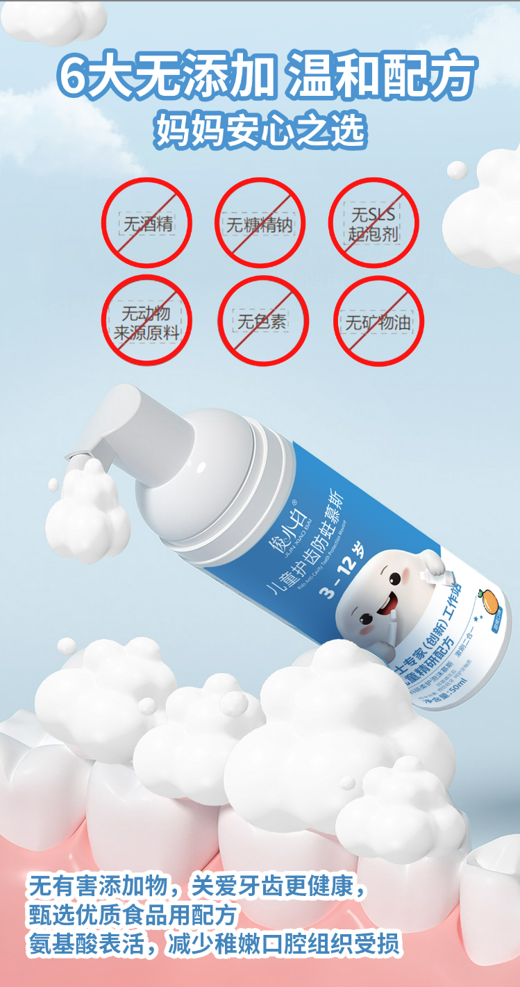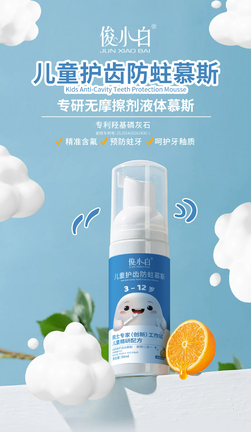 【3-12岁适用】俊小白儿童护齿慕斯 漱刷二合一