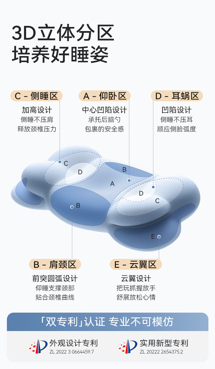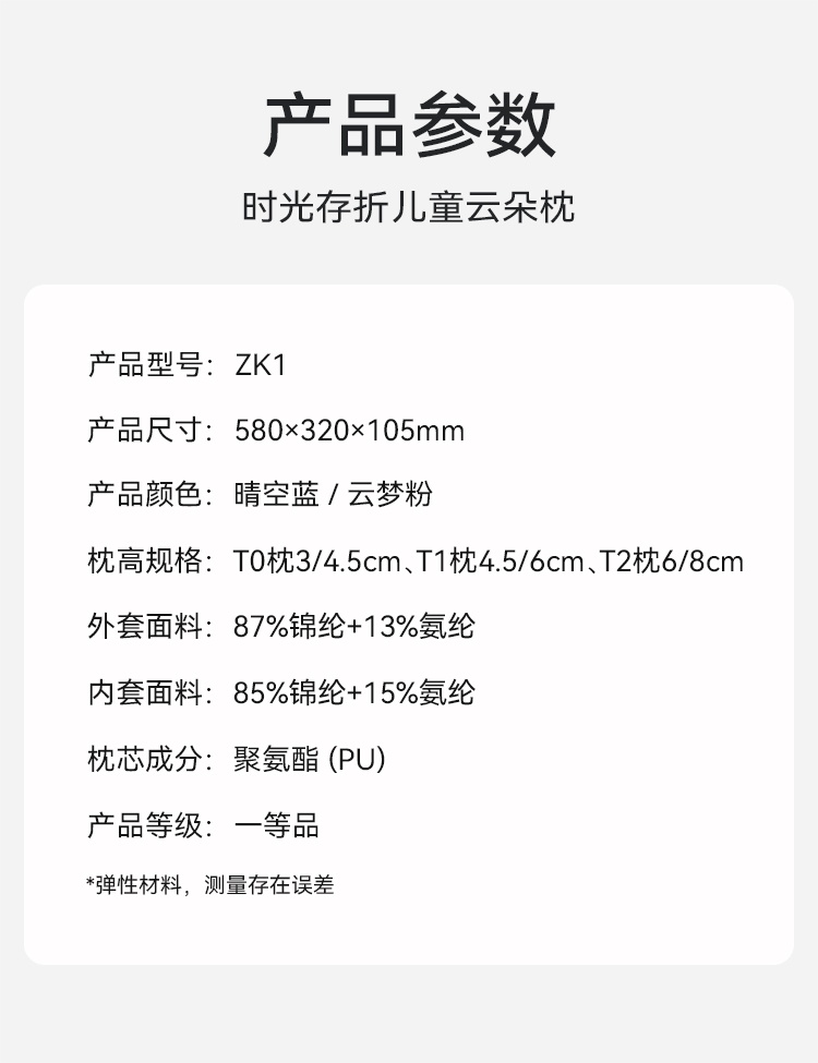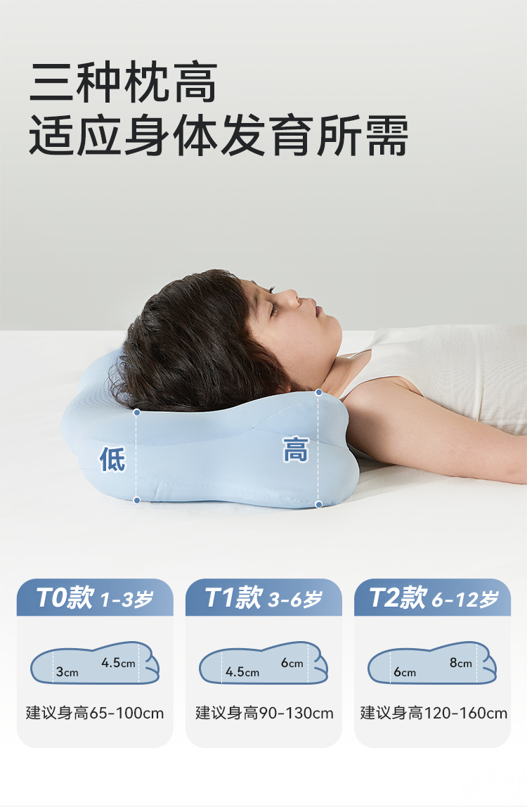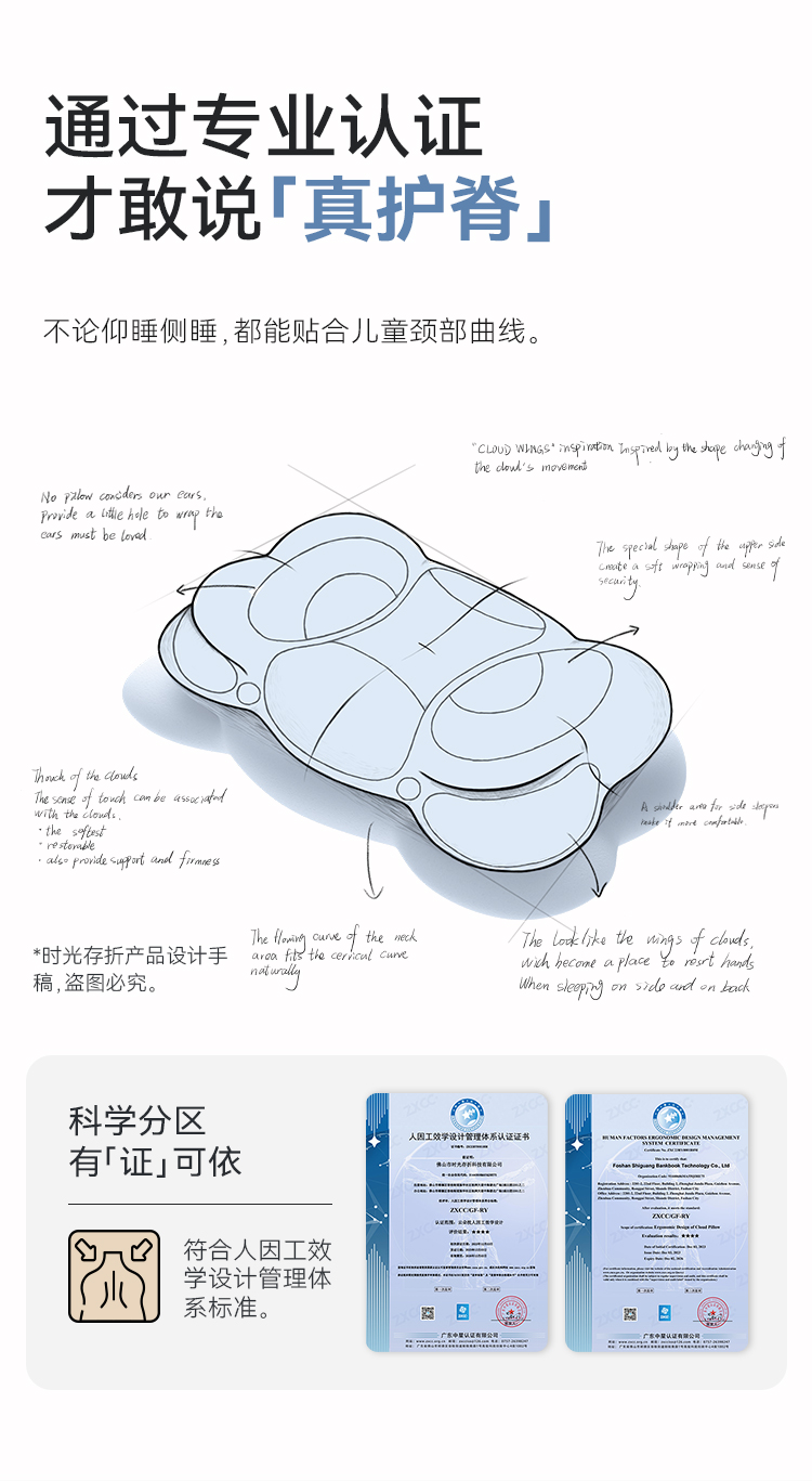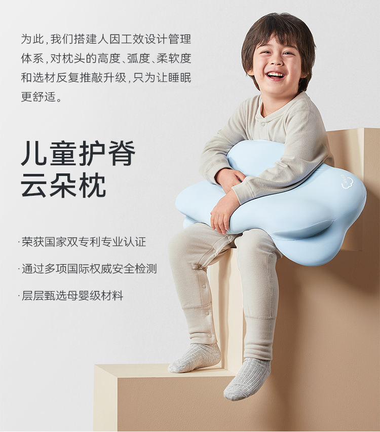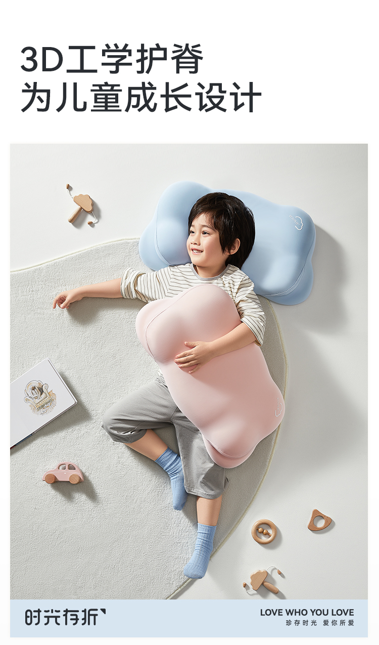 时光存折云朵儿童枕头专用枕工学护脊护颈透气3到6岁以上宝宝枕头
