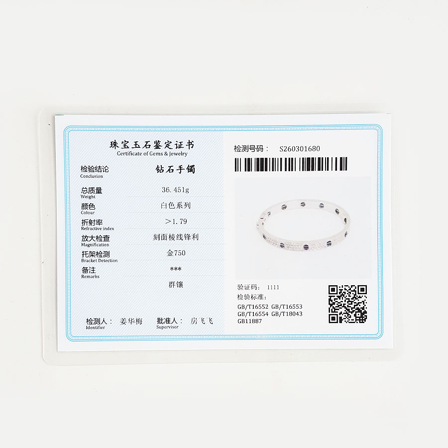 【天然正品】AU750白金经典时尚高定定制款群镶钻石手镯18号(皆取最大值)260326NJS12