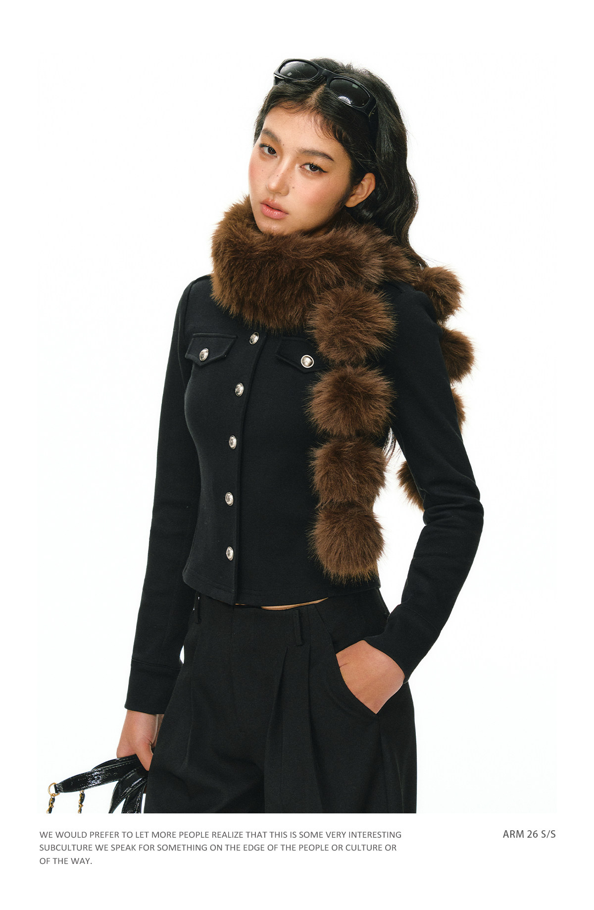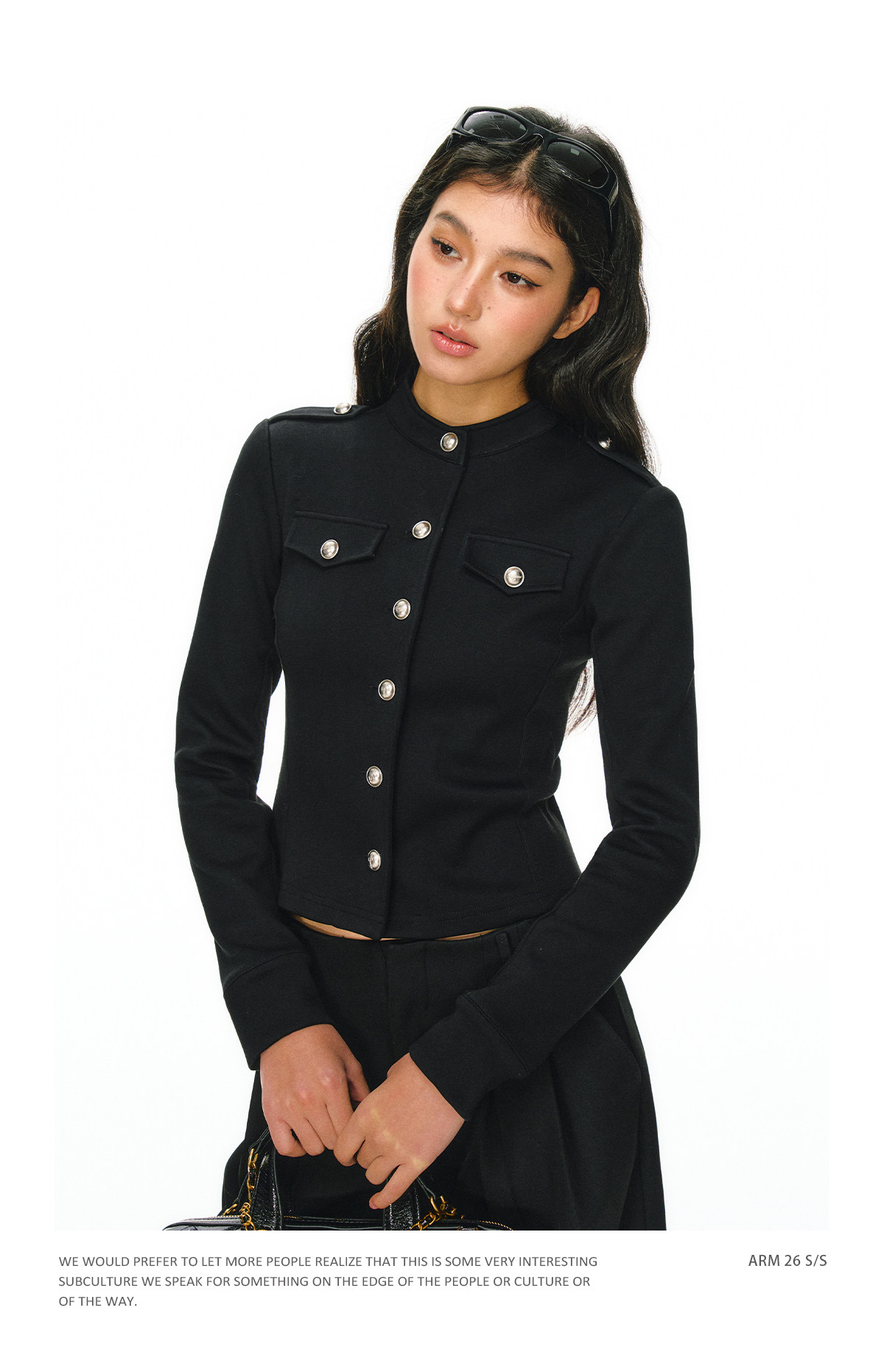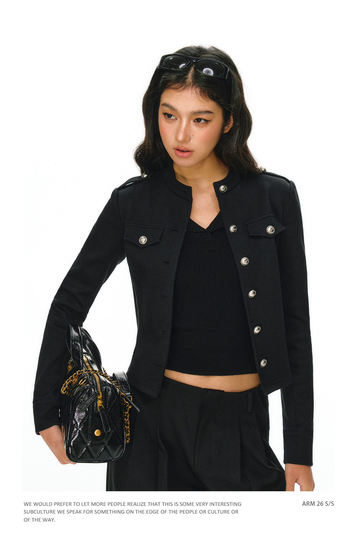 Ariseism 美式复古黑色单排扣针织开衫女春季新款圆领上衣