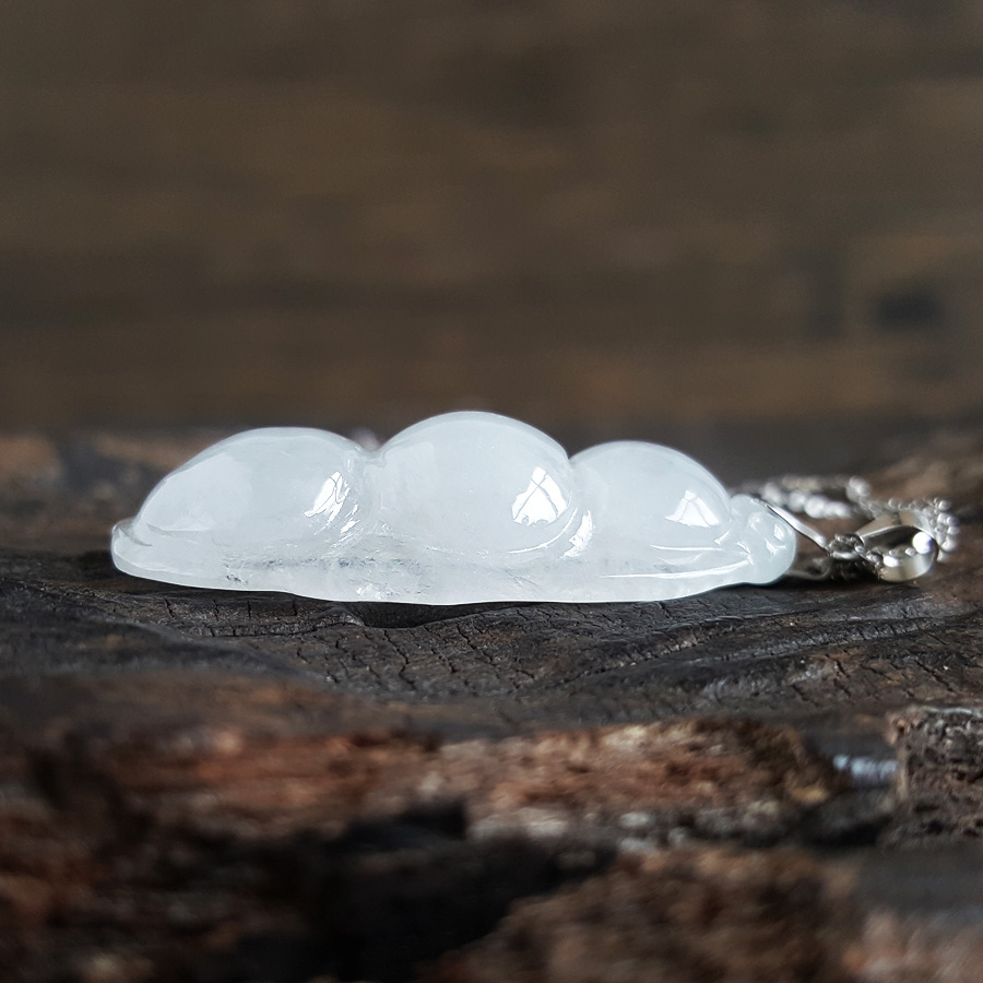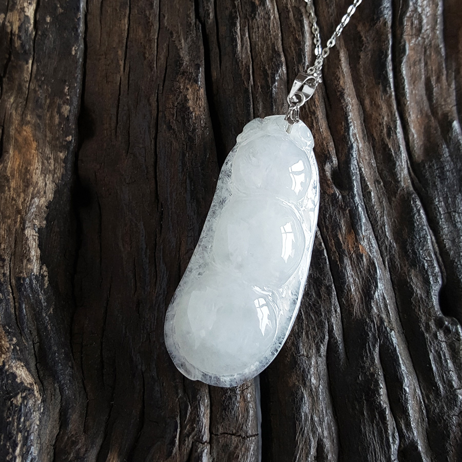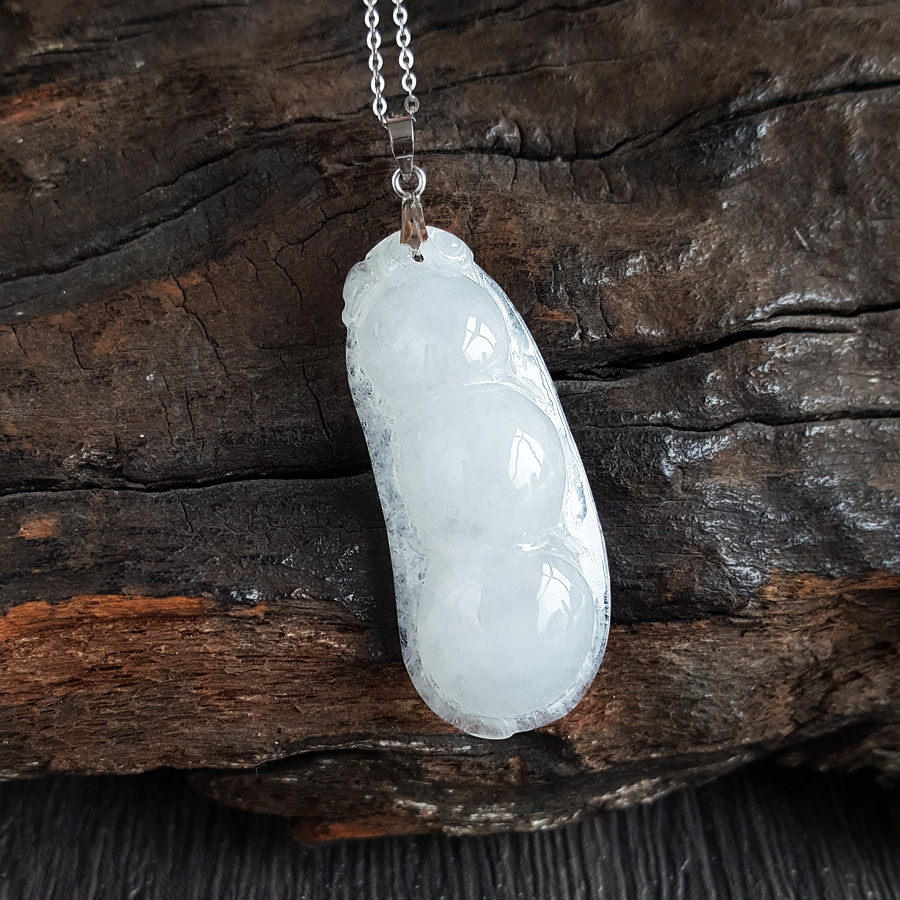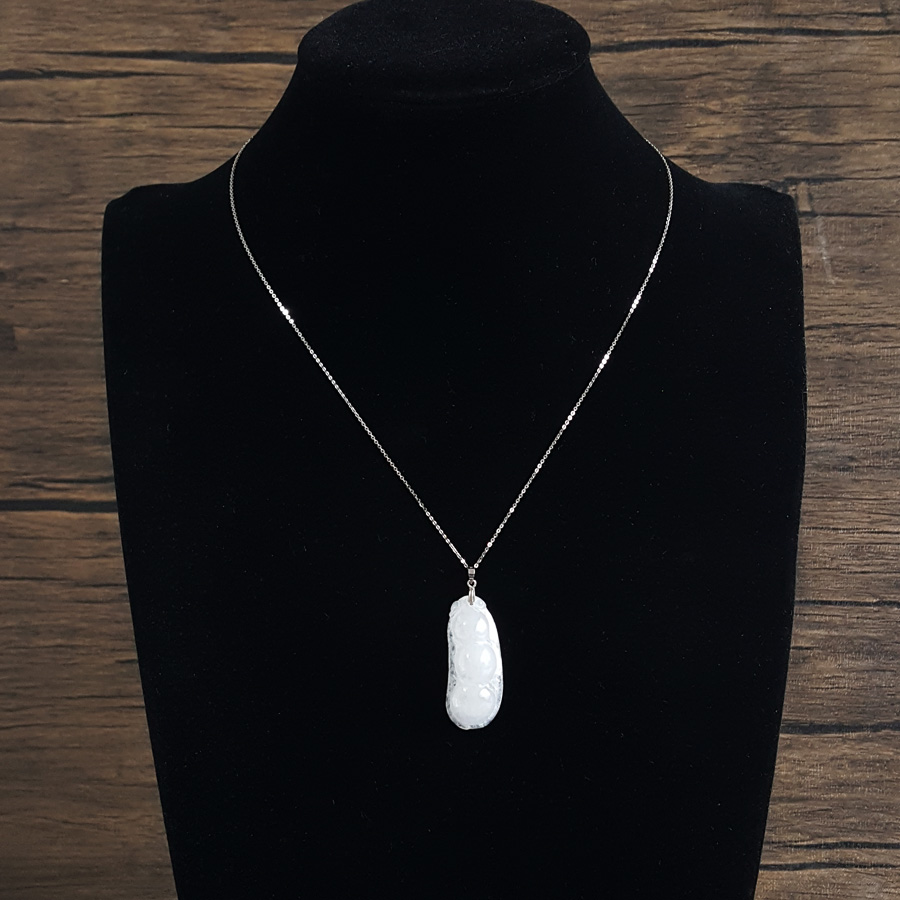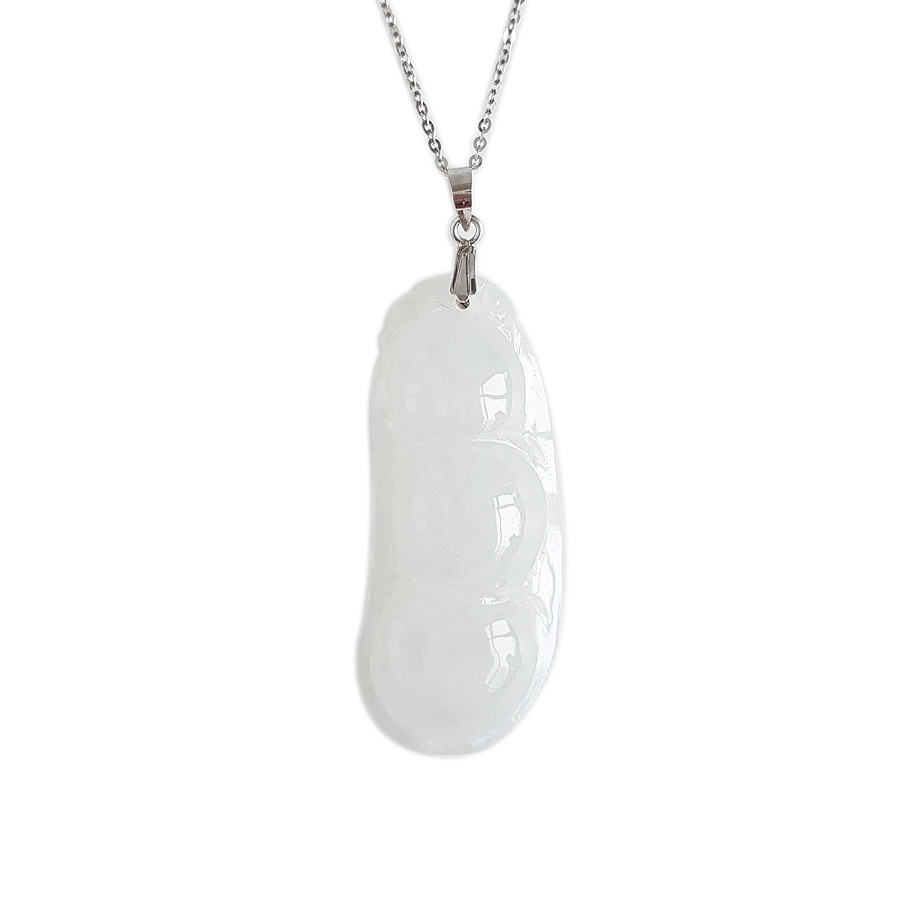 【天然正品】AU750白金镶糯种白色福豆荚翡翠(福、禄、寿)吊坠项链310524NJM08