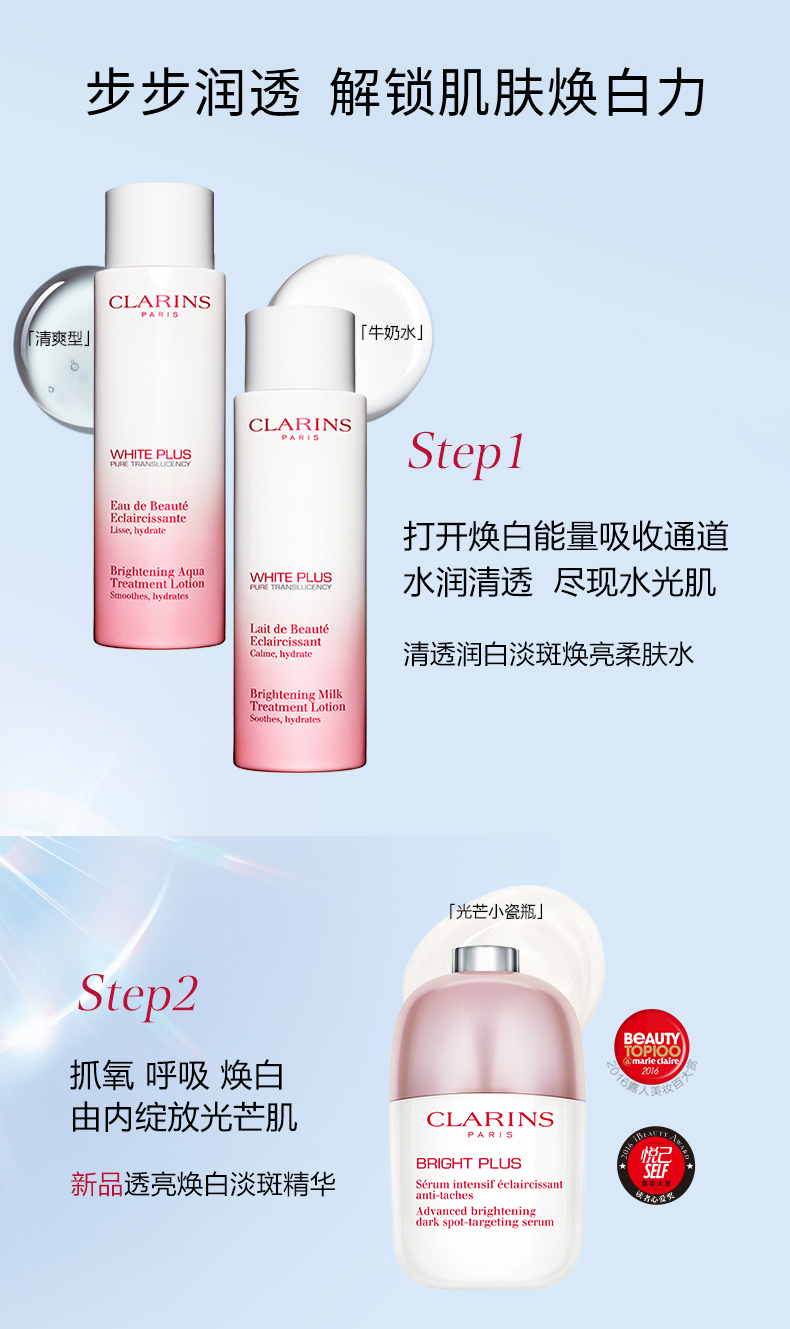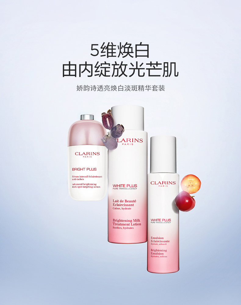 【航免仓】CLARINS娇韵诗透亮焕白淡斑精华三件套装(小瓷瓶焕白精华50ml+淡斑焕亮柔肤水200ml+淡斑焕亮乳液75ml)