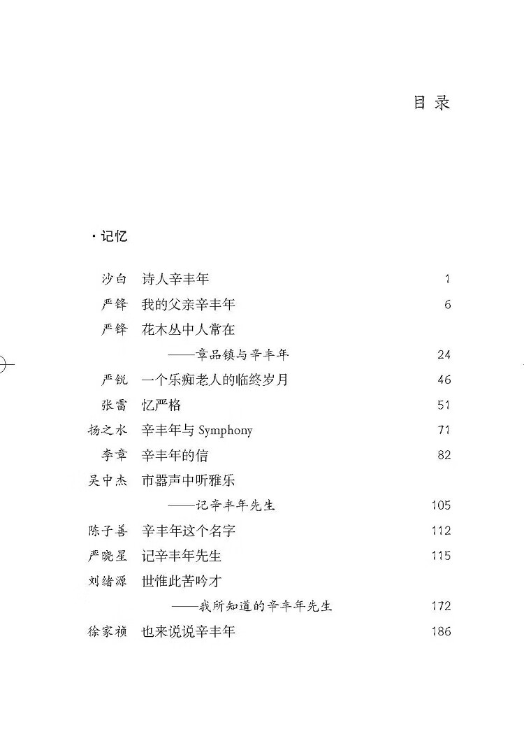 本书收入各时期辛丰年家人、友人、读者、评论家评论、怀念辛丰年先生的文章33篇,涉及其生平、生活、写作和思想的各个方面,向世人比较全面地展现了先生早年读书交游、青年时期背离家庭投身革命,老来读书著述、文章渐为天下知的人生历程。另收入各时期先生本人或有关影像和手迹等图片三十余幅。