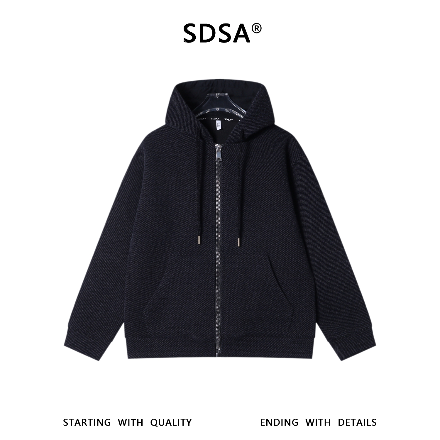 SDSA男士秋冬新款痞帅男装潮牌时尚撞色斜纹拉链连帽卫衣外套百搭