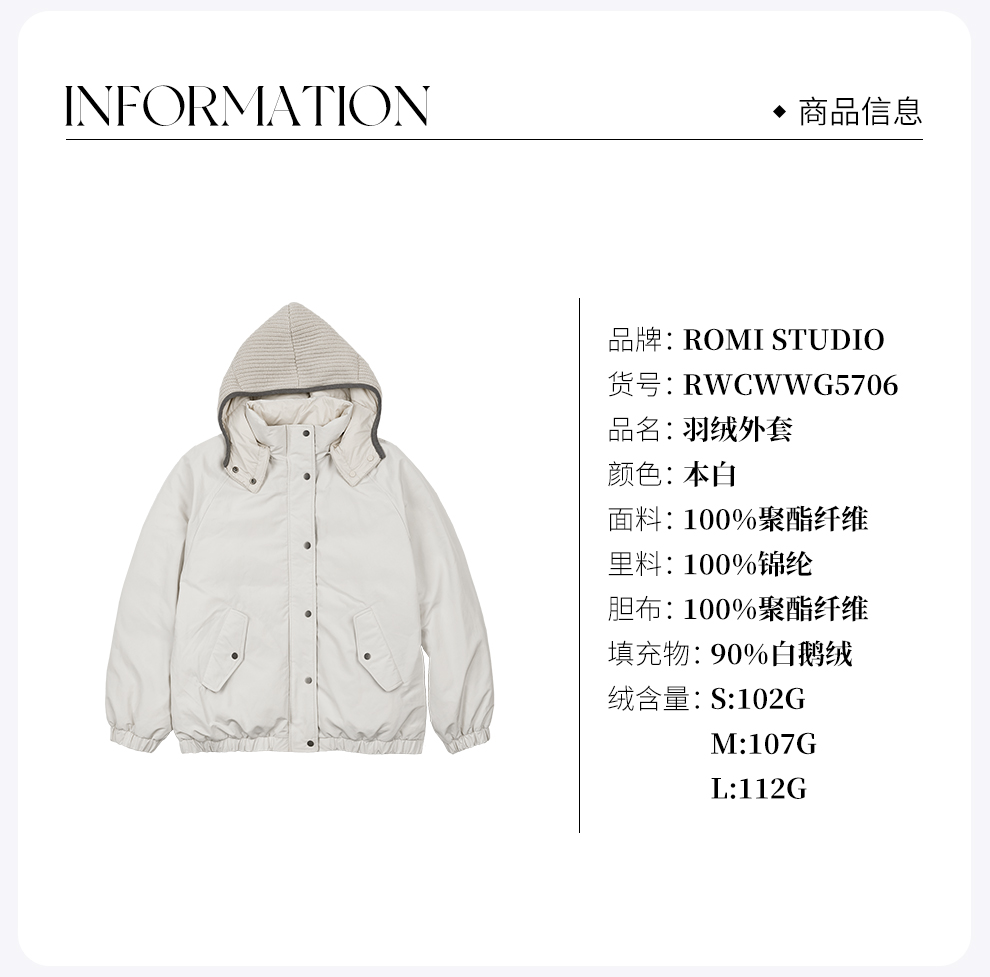 ROMI STUDIO90白鹅绒蓬松轻盈一手长廓形连帽羽绒外套RWCWWG5706