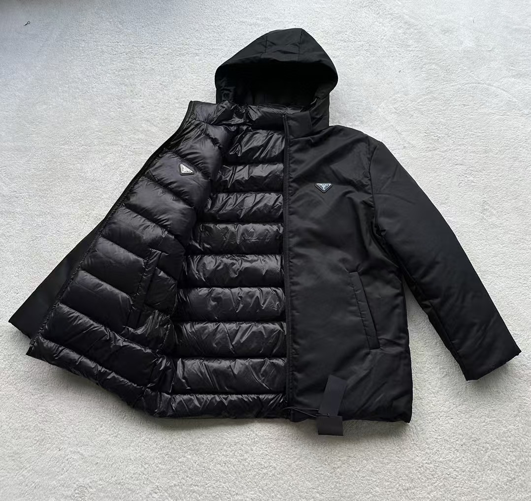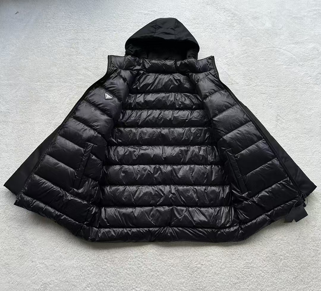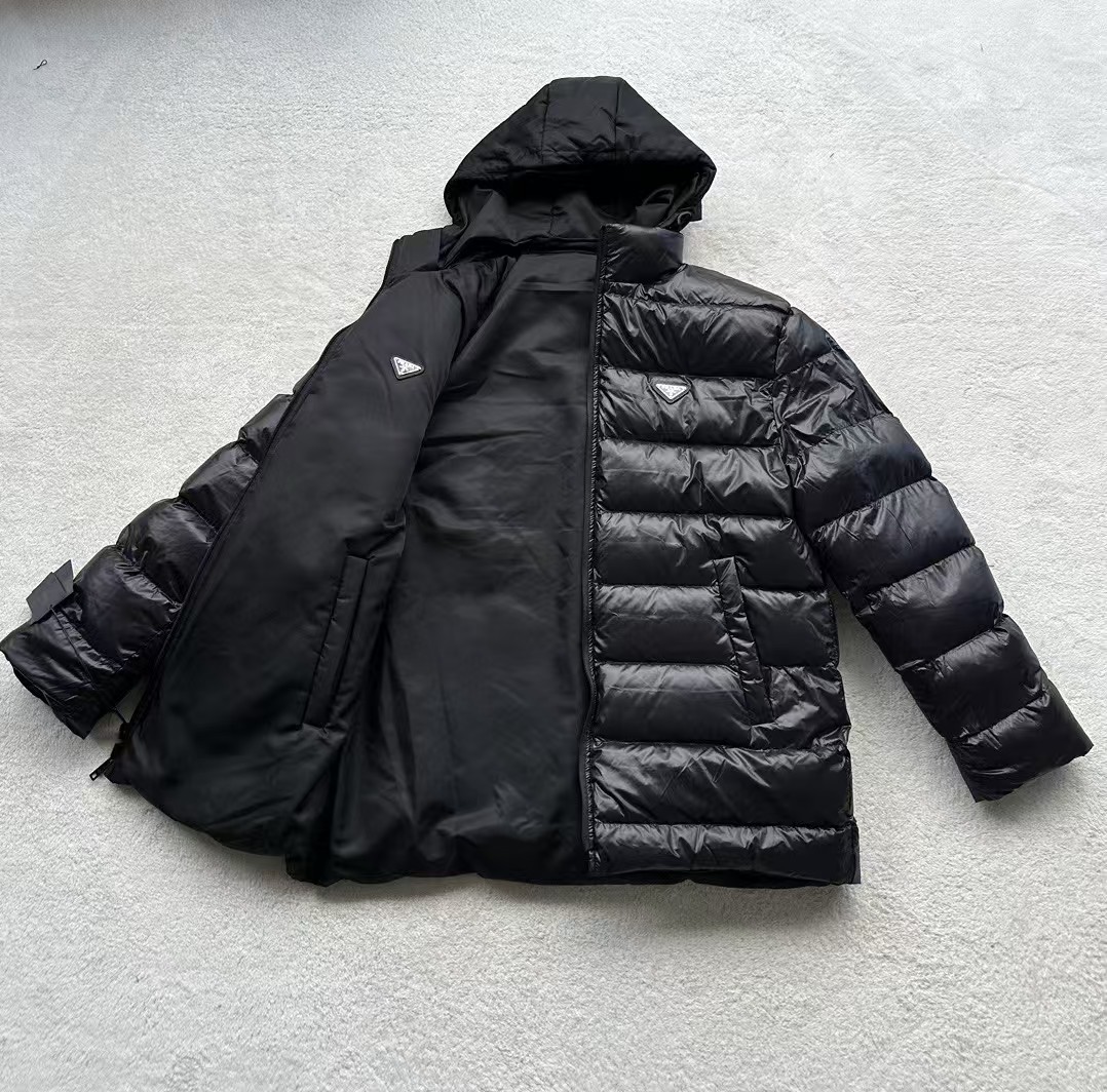 可拆卸帽子:羽绒服配备了可拆卸的尼龙帽子,用户可以根据天气变化或个人喜好轻松拆卸或安装,既实用又方便。