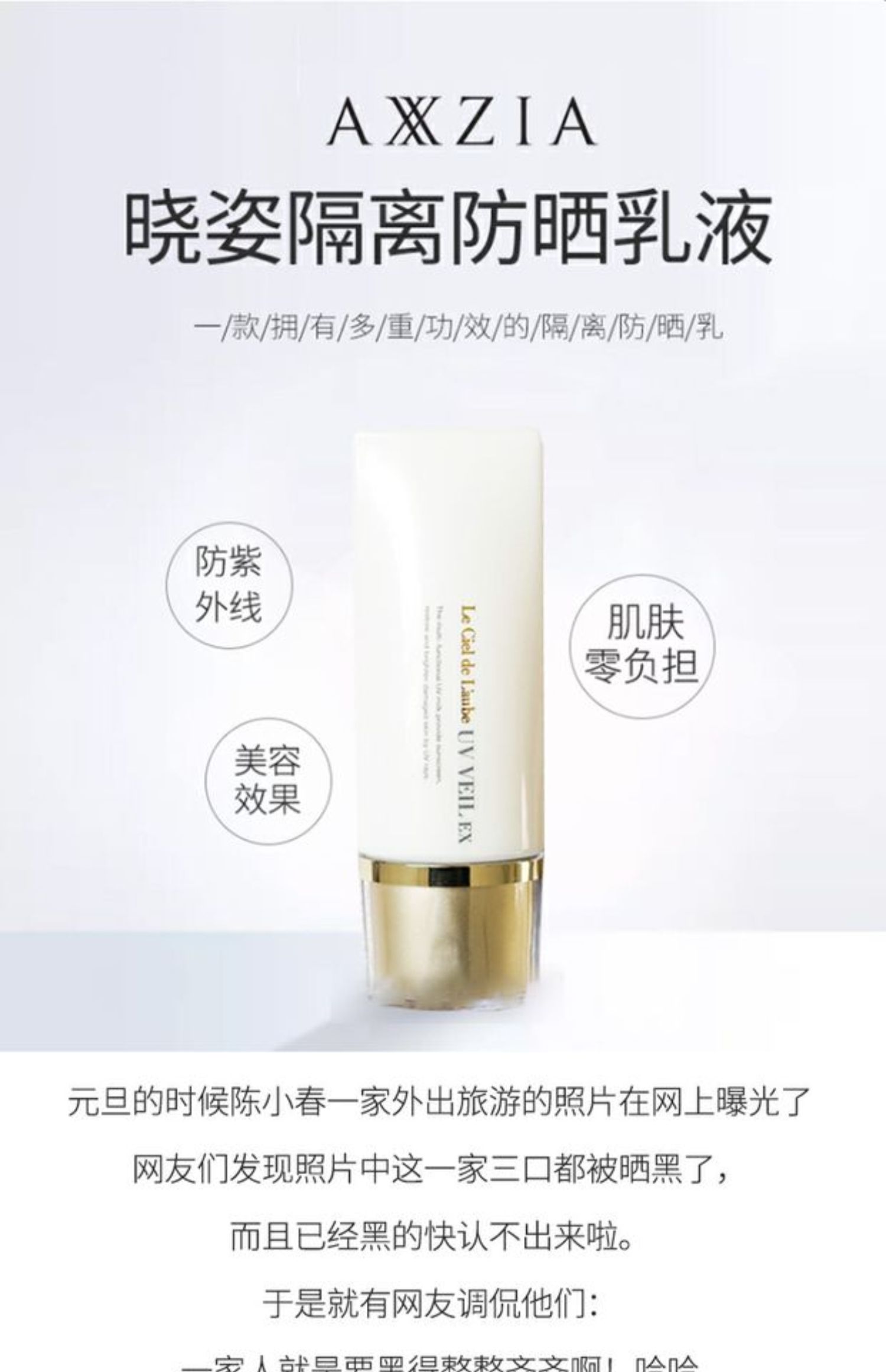 日本AXXZIA晓姿防晒隔离乳霜 清爽户外防紫外线孕妇痘痘过敏SPF50