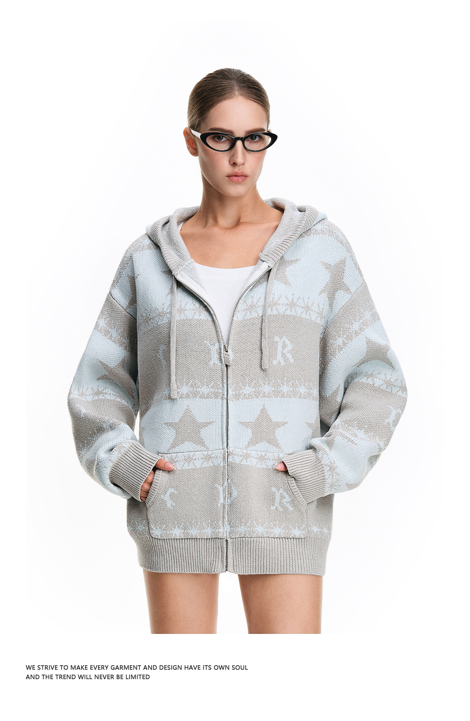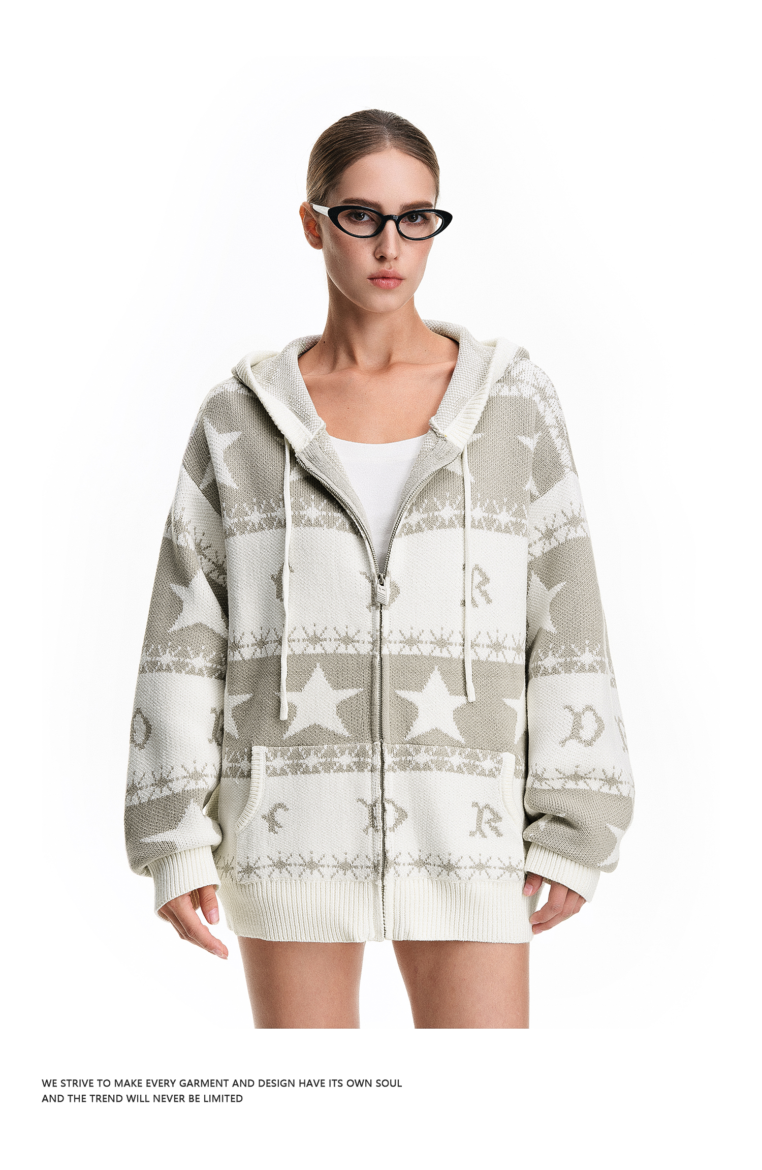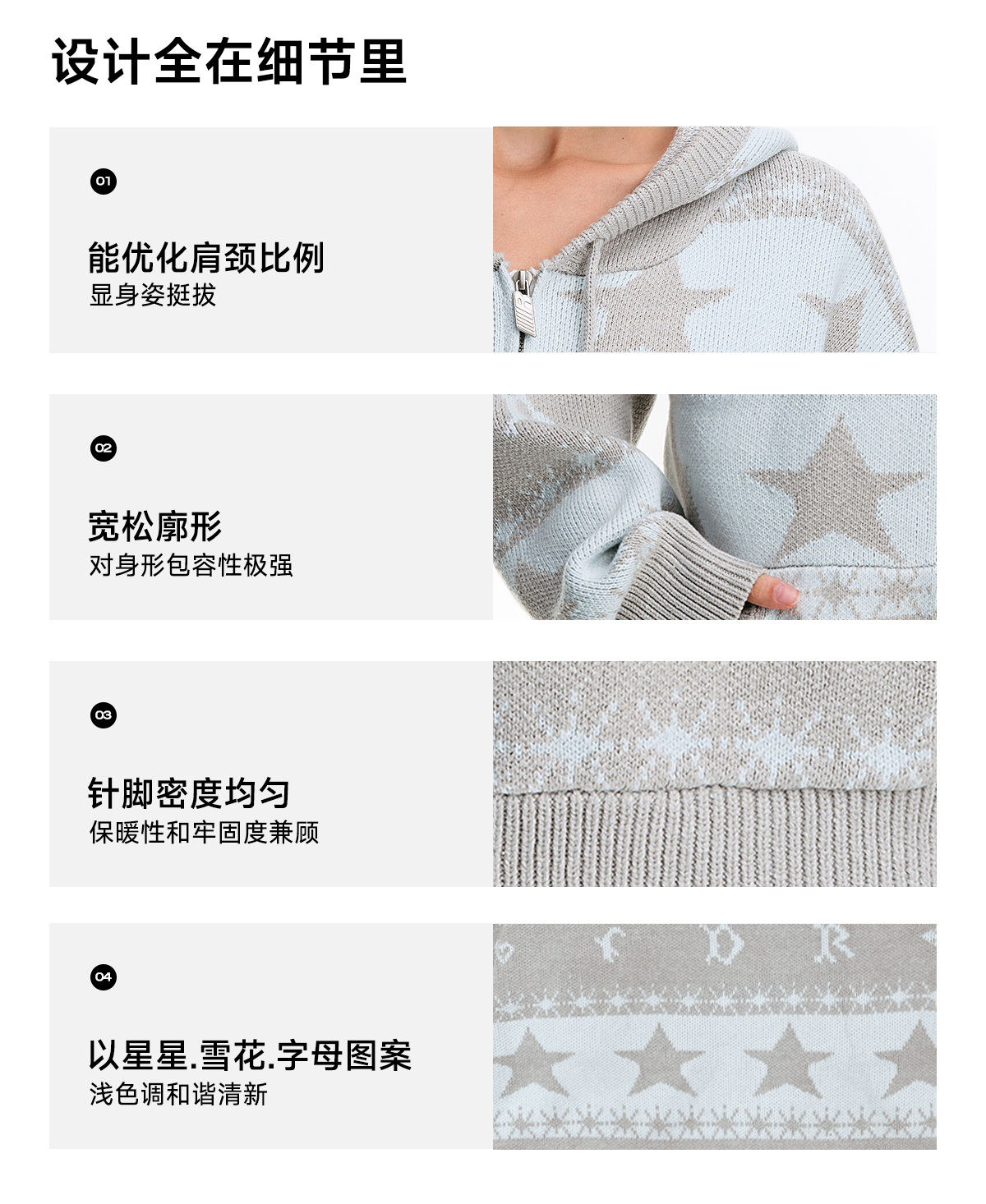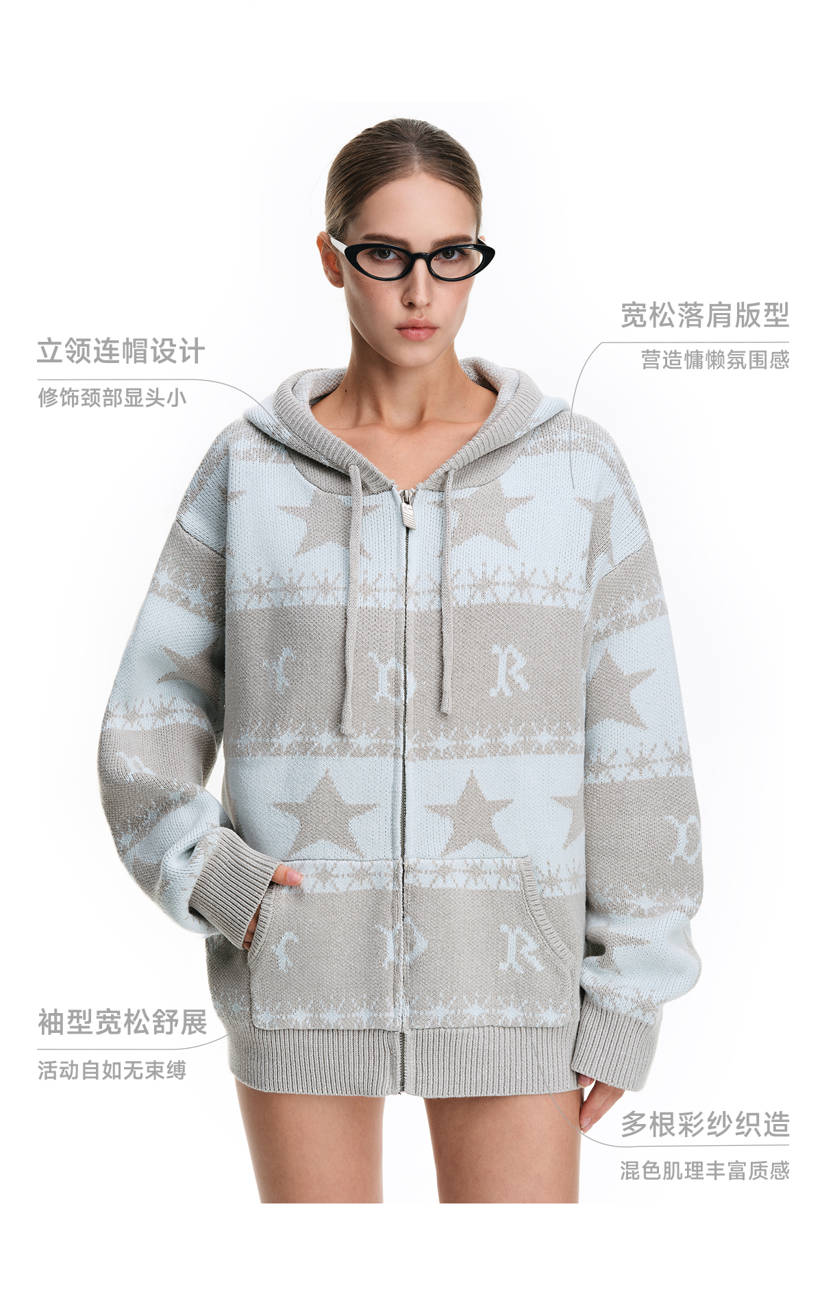 FDR官方店 星星提花毛衣开衫外套女2025新款秋冬连帽情侣针织衫男