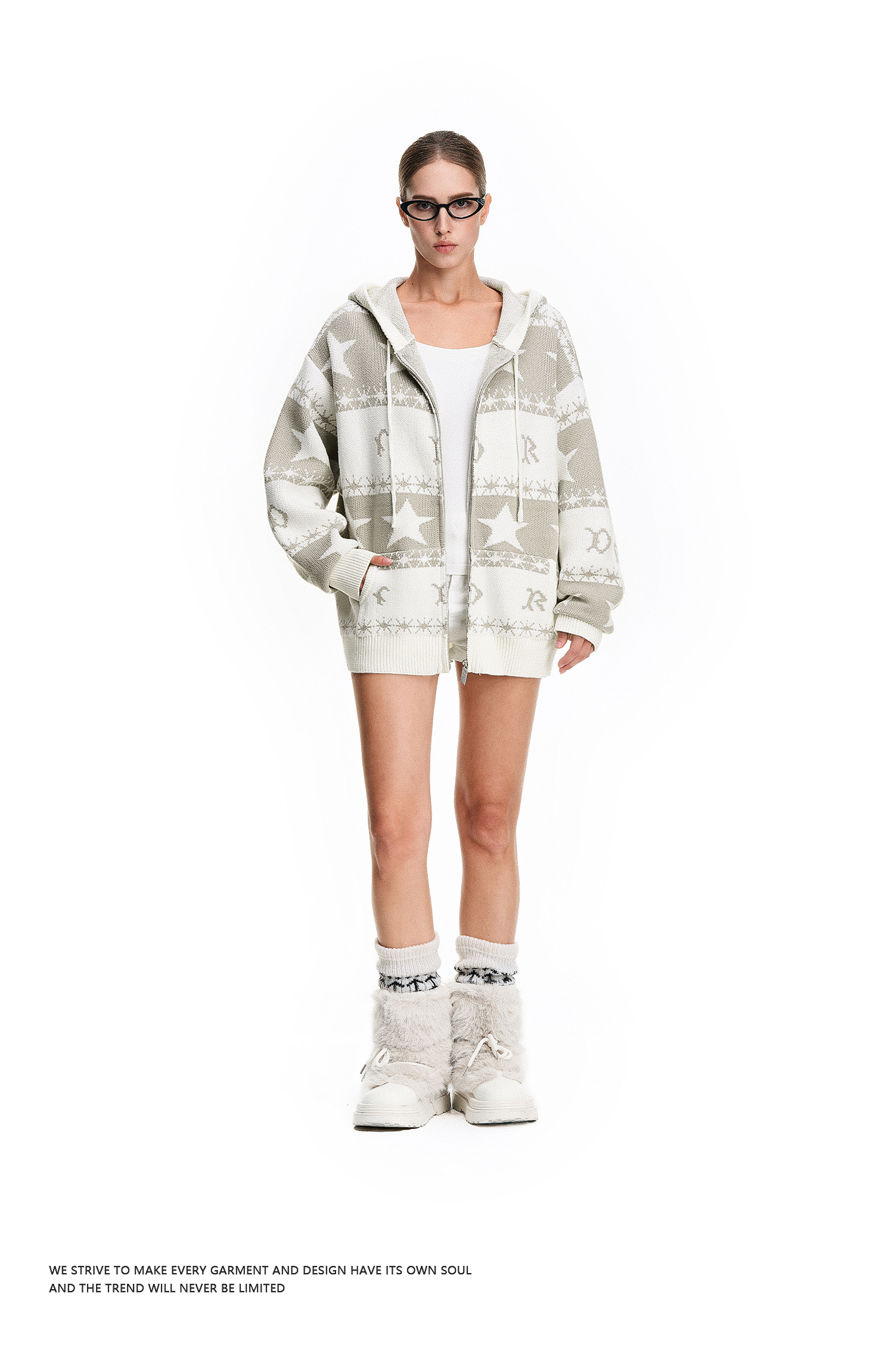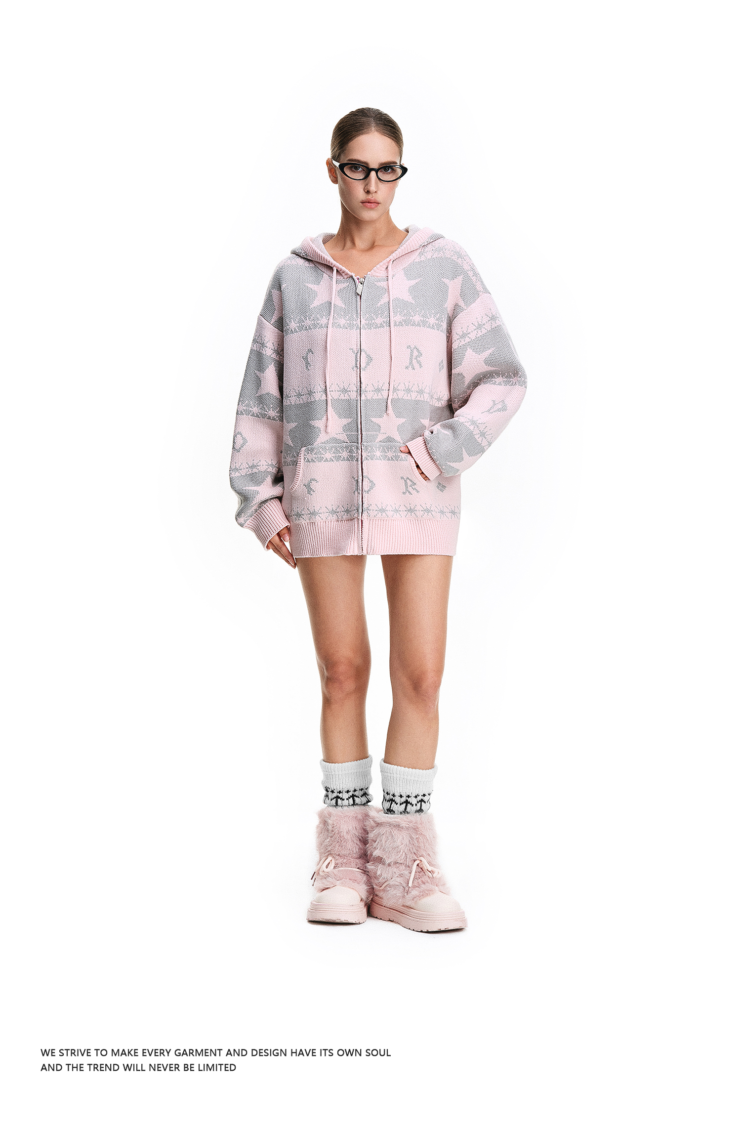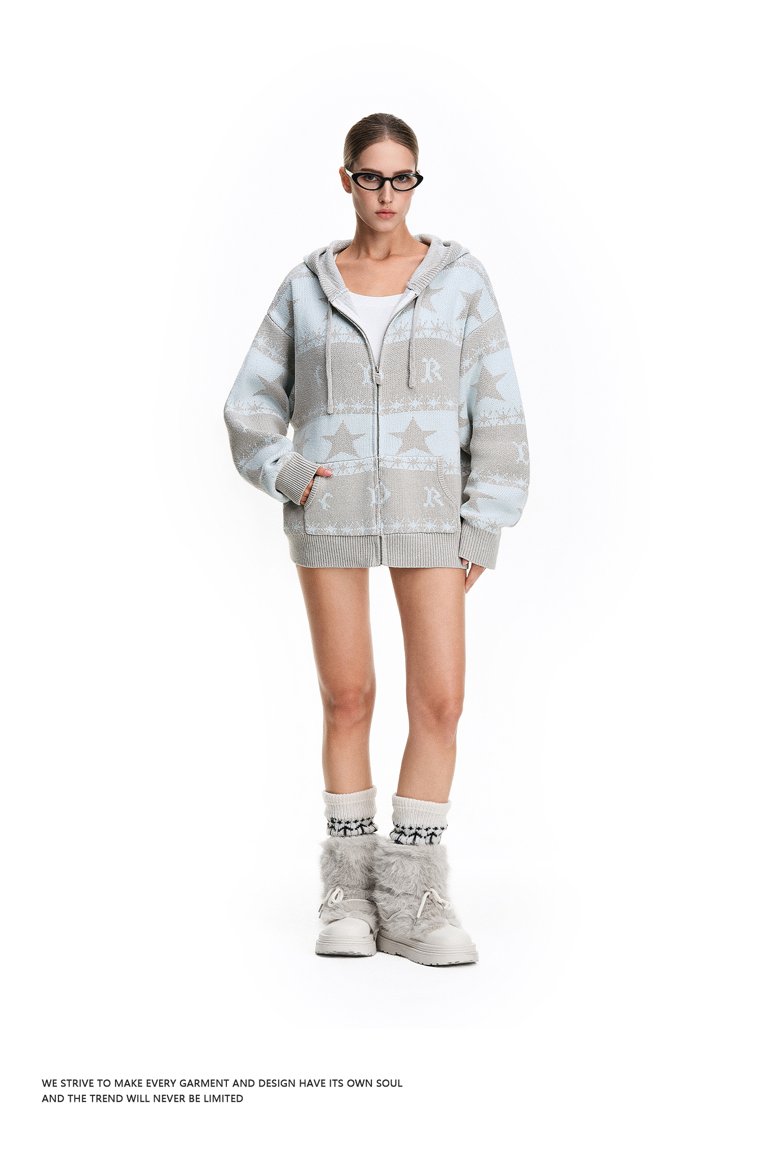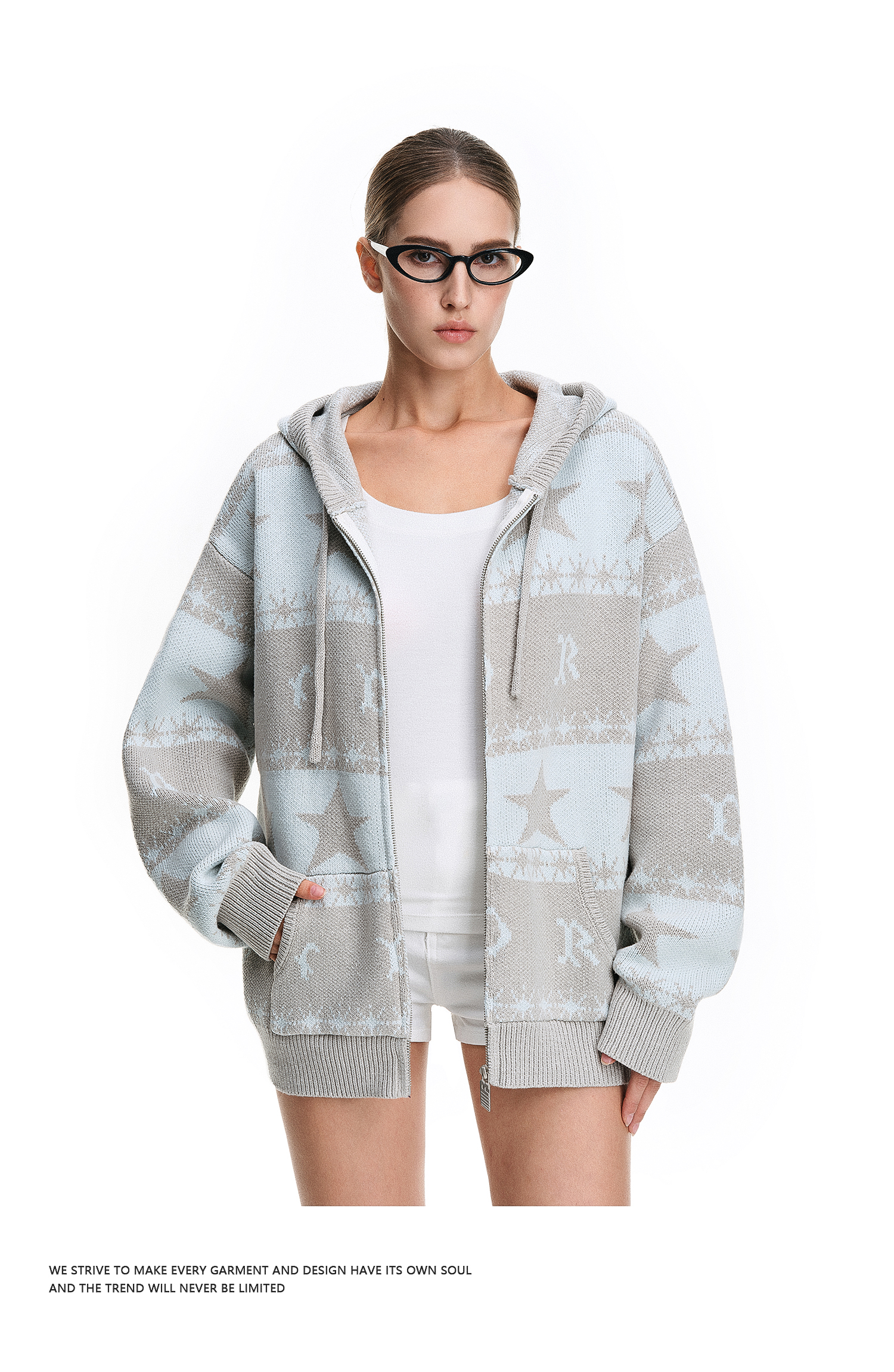 FDR官方店 星星提花毛衣开衫外套女2025新款秋冬连帽情侣针织衫男