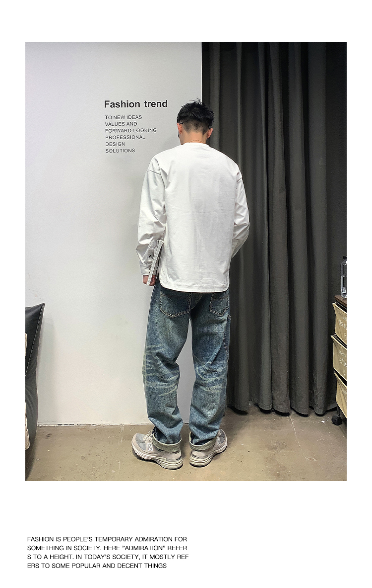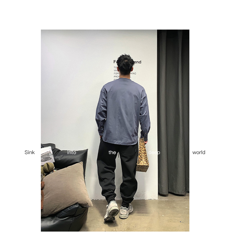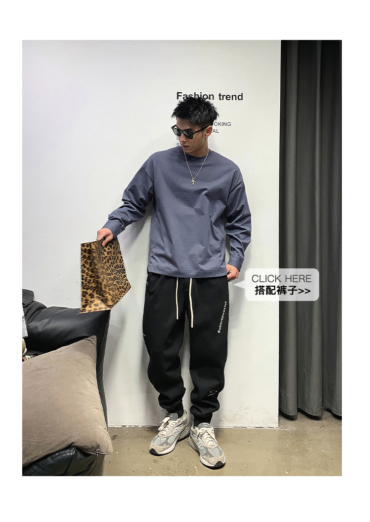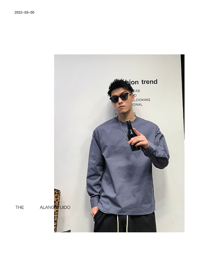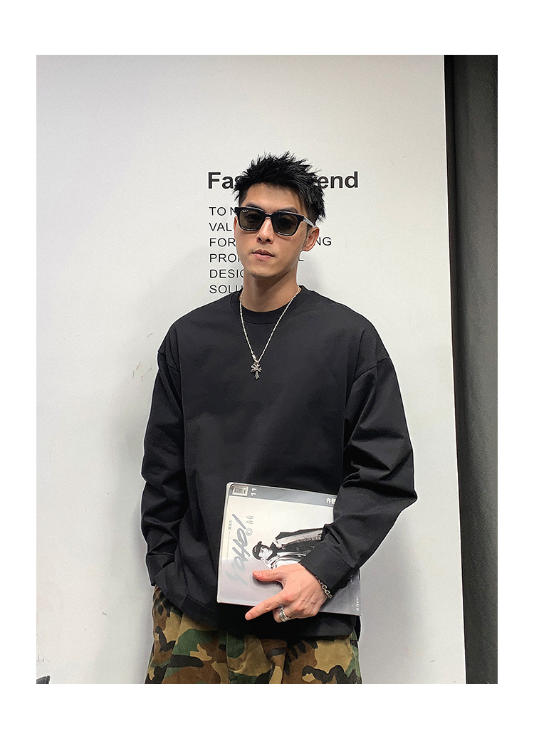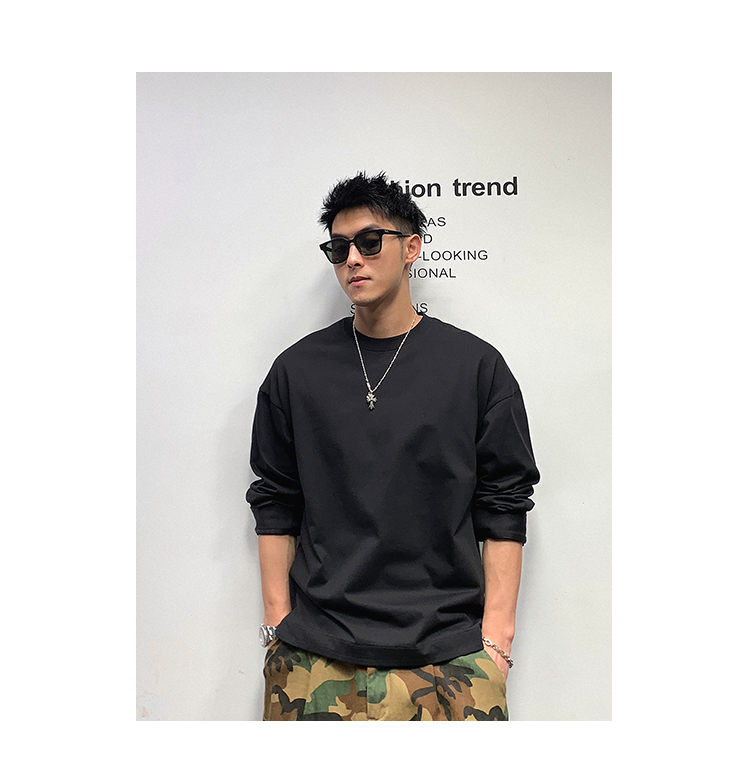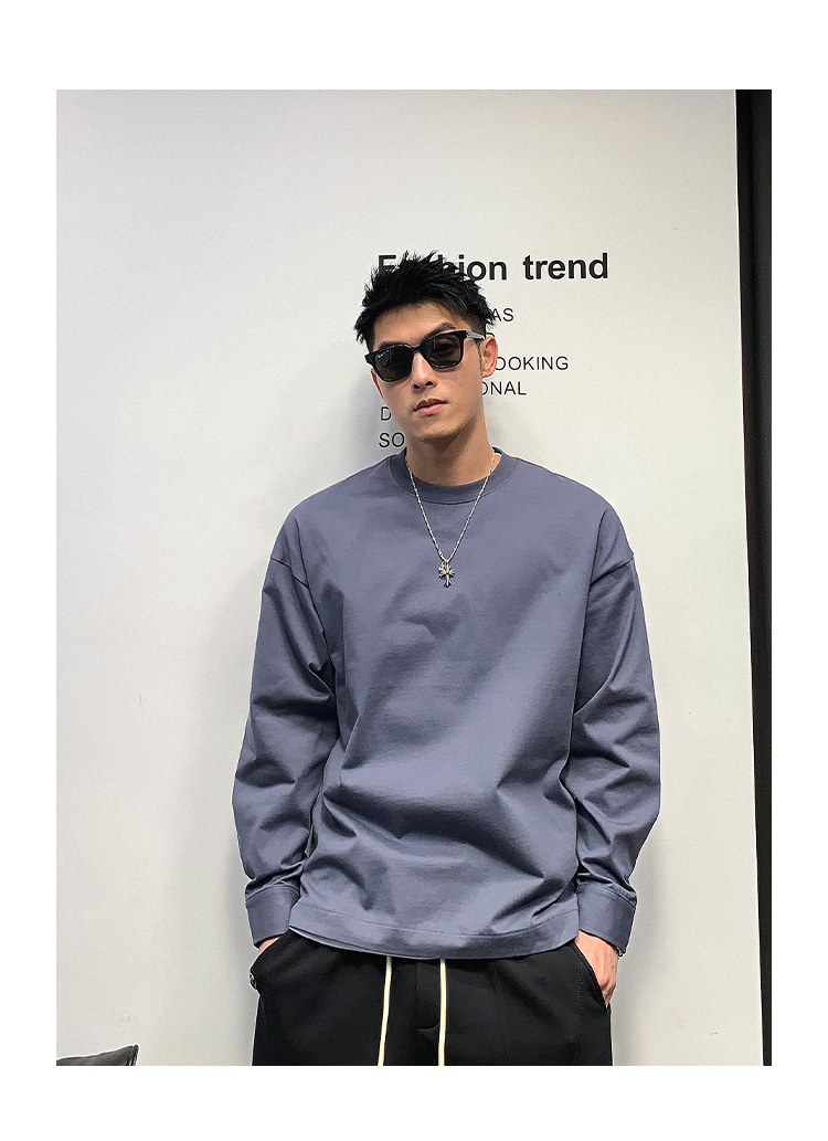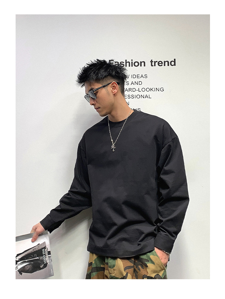 徐太浪日系基础百搭长袖t恤男高品质圆领百搭上衣春秋内搭打底衫