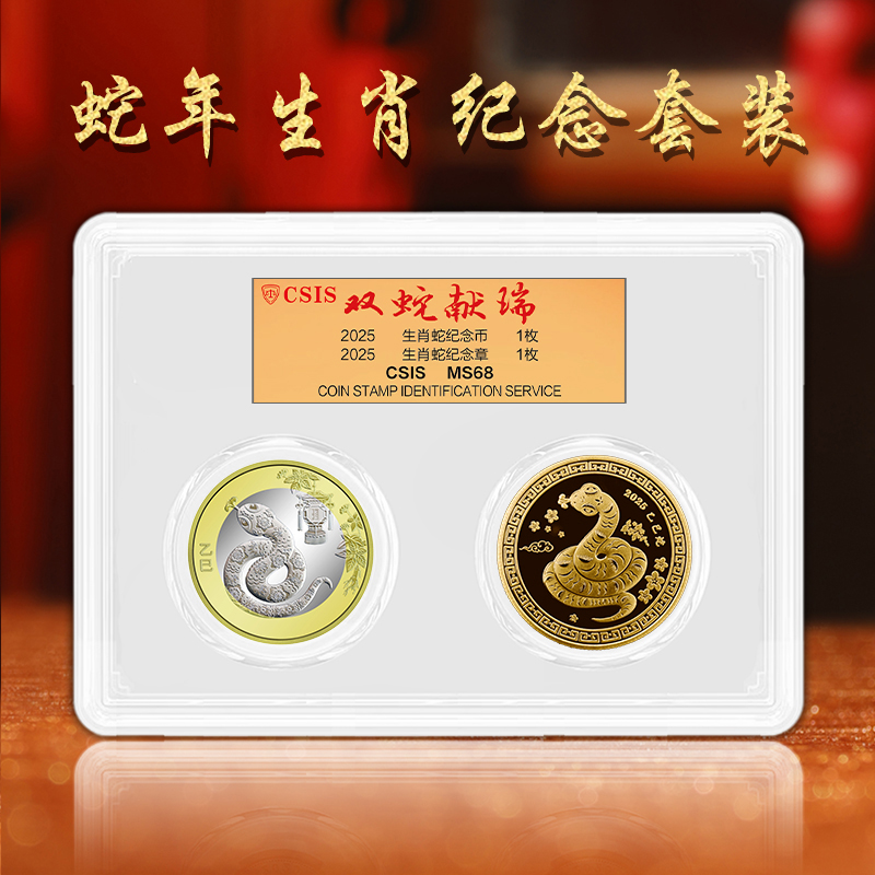 2025蛇年生肖纪念币+纪念章套装 带封装盒