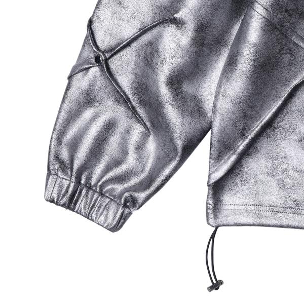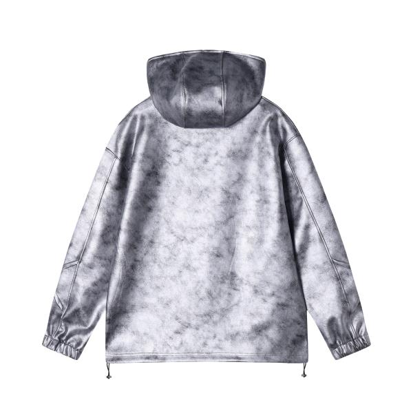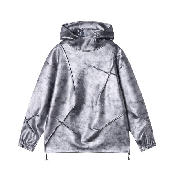 WY390秋冬季新款美式个性褶皱皮面立领连帽卫衣宽松时尚户外长袖
