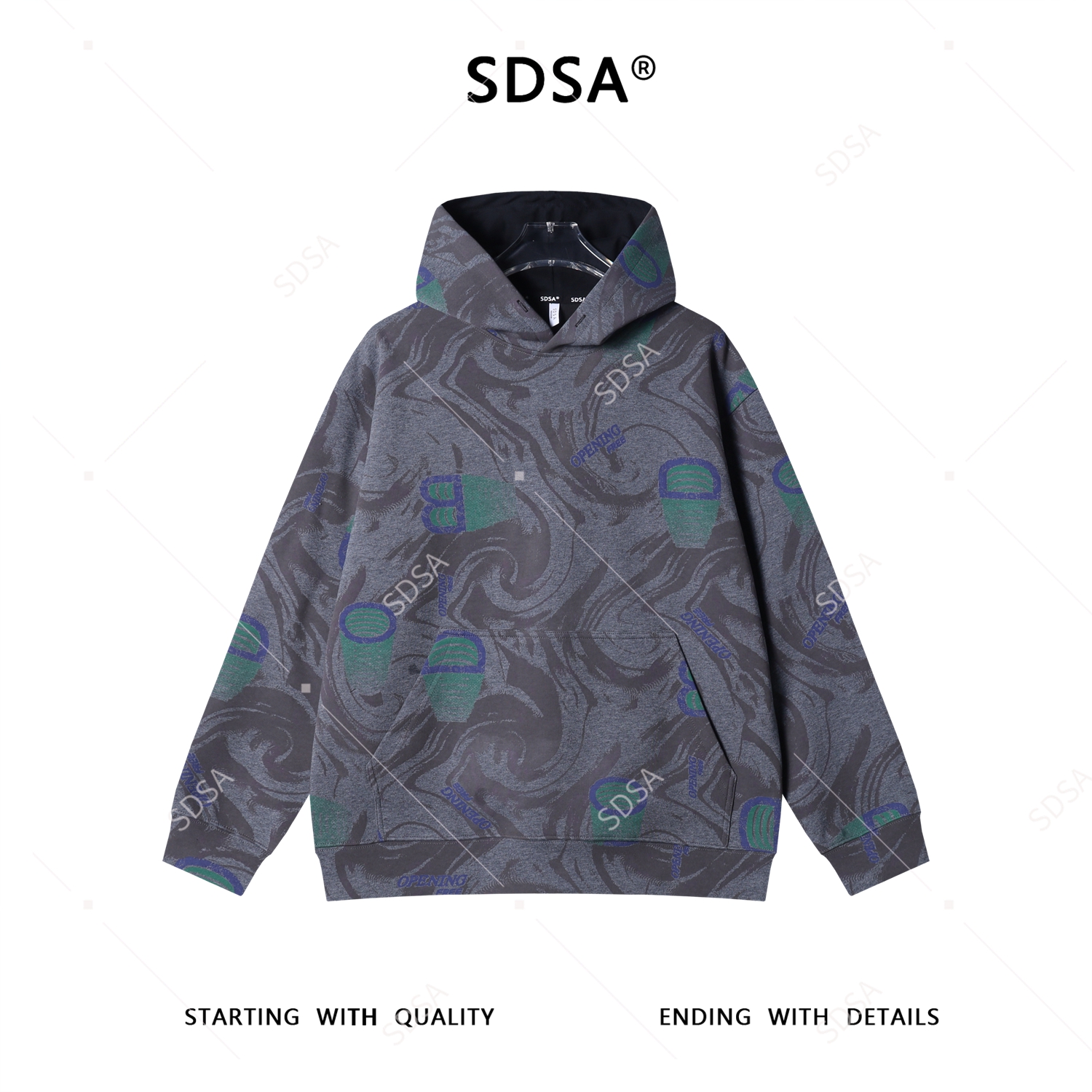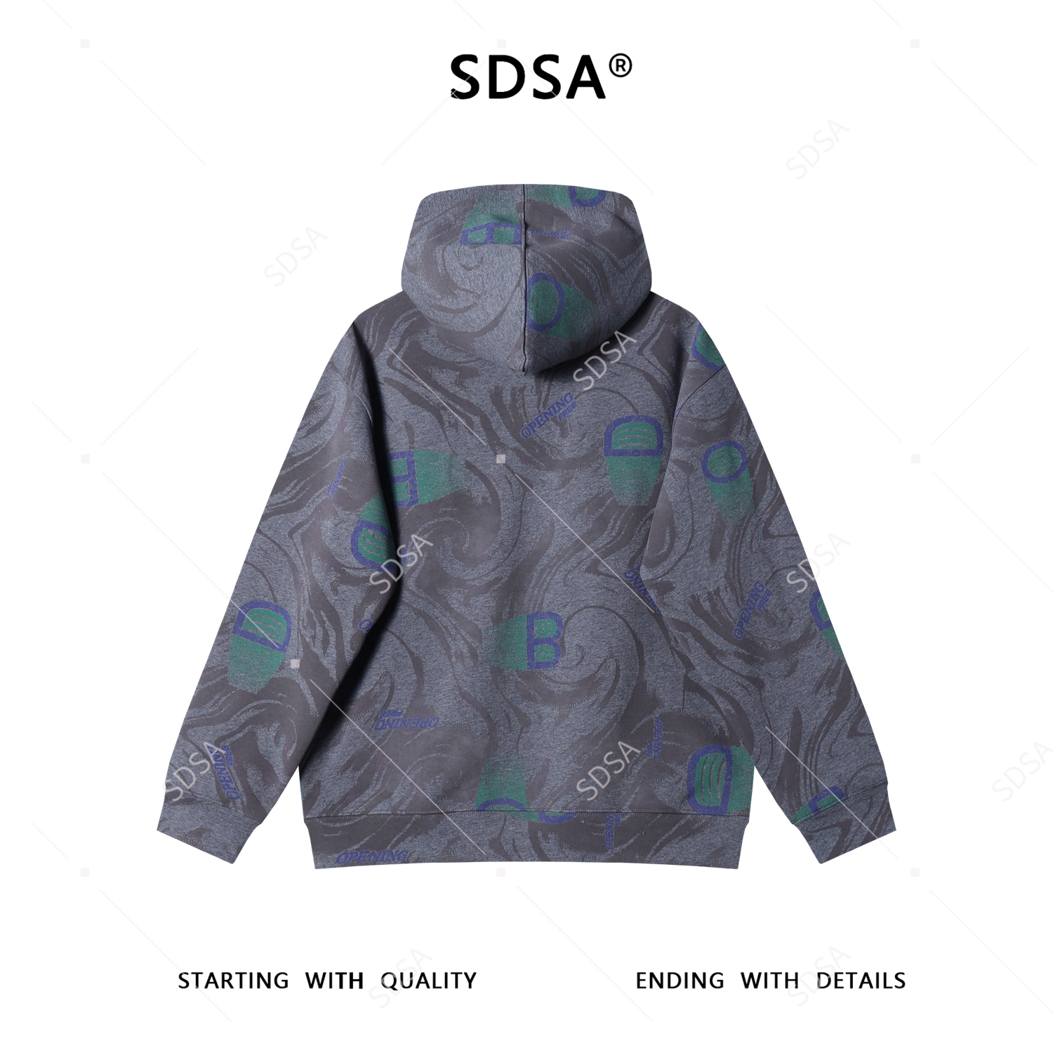 SDSA男士秋冬新款痞帅男装简约水波纹字母连帽卫衣百搭时尚上衣