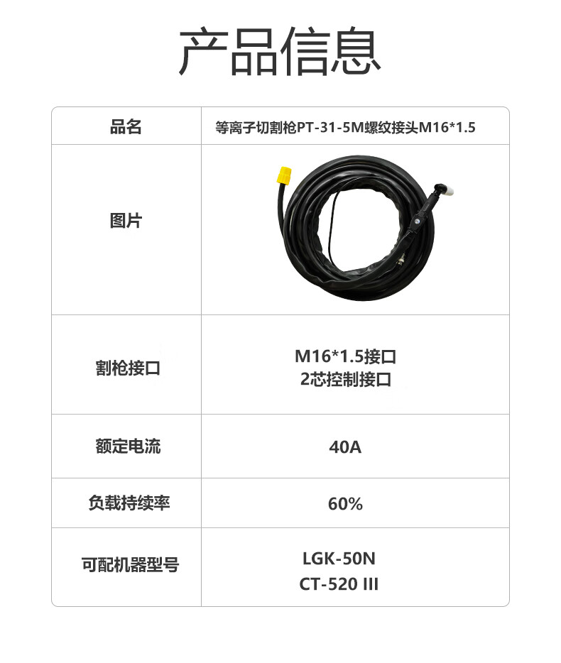 上海沪工等离子切割枪PT-31-5米 LGK-40PLUS 50 PLUS CT-520切割机配件