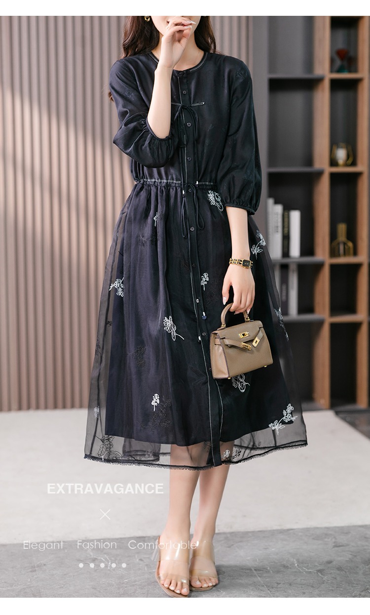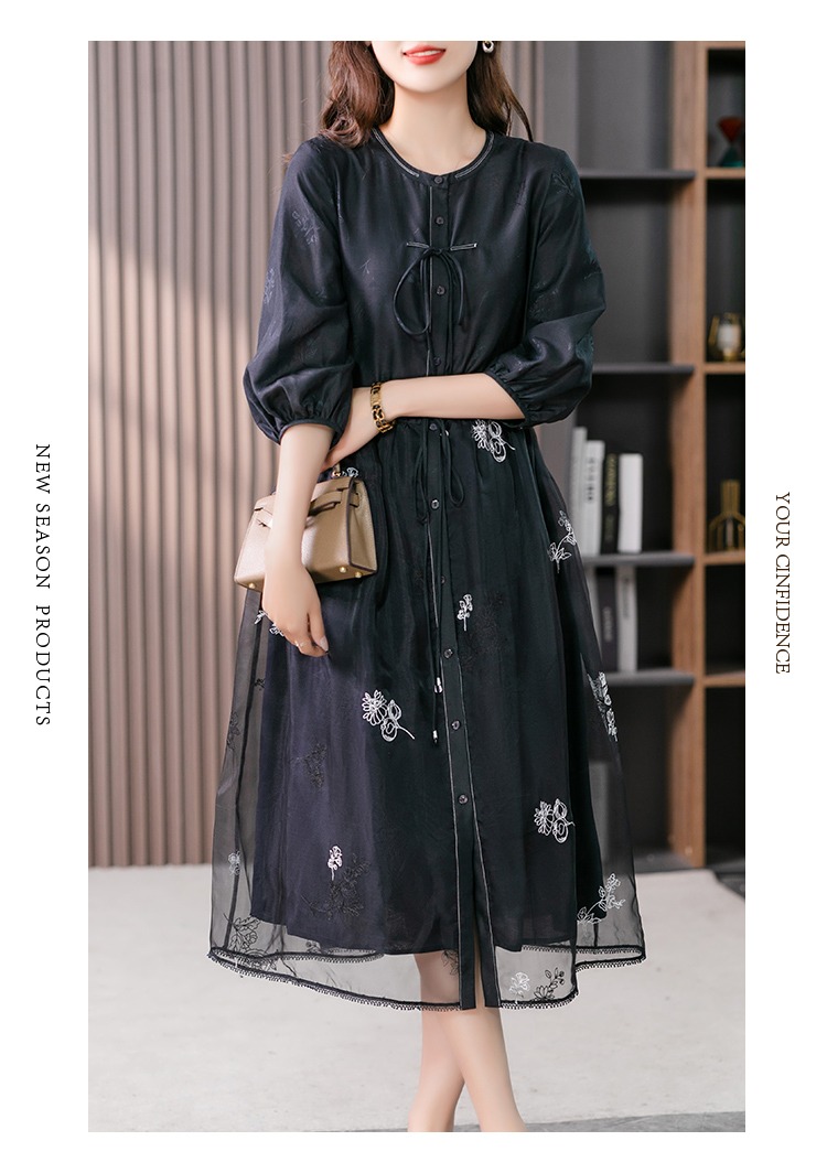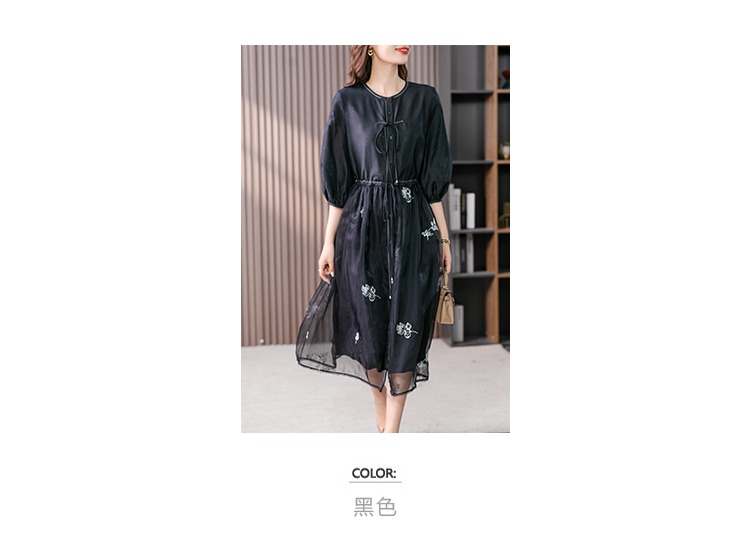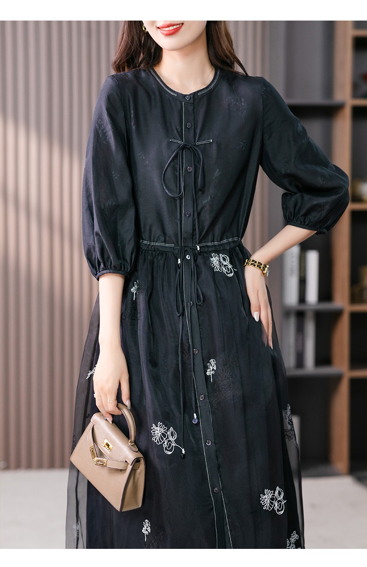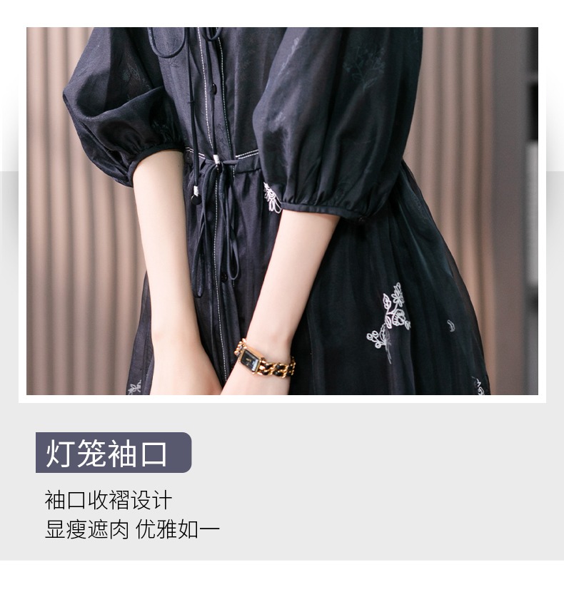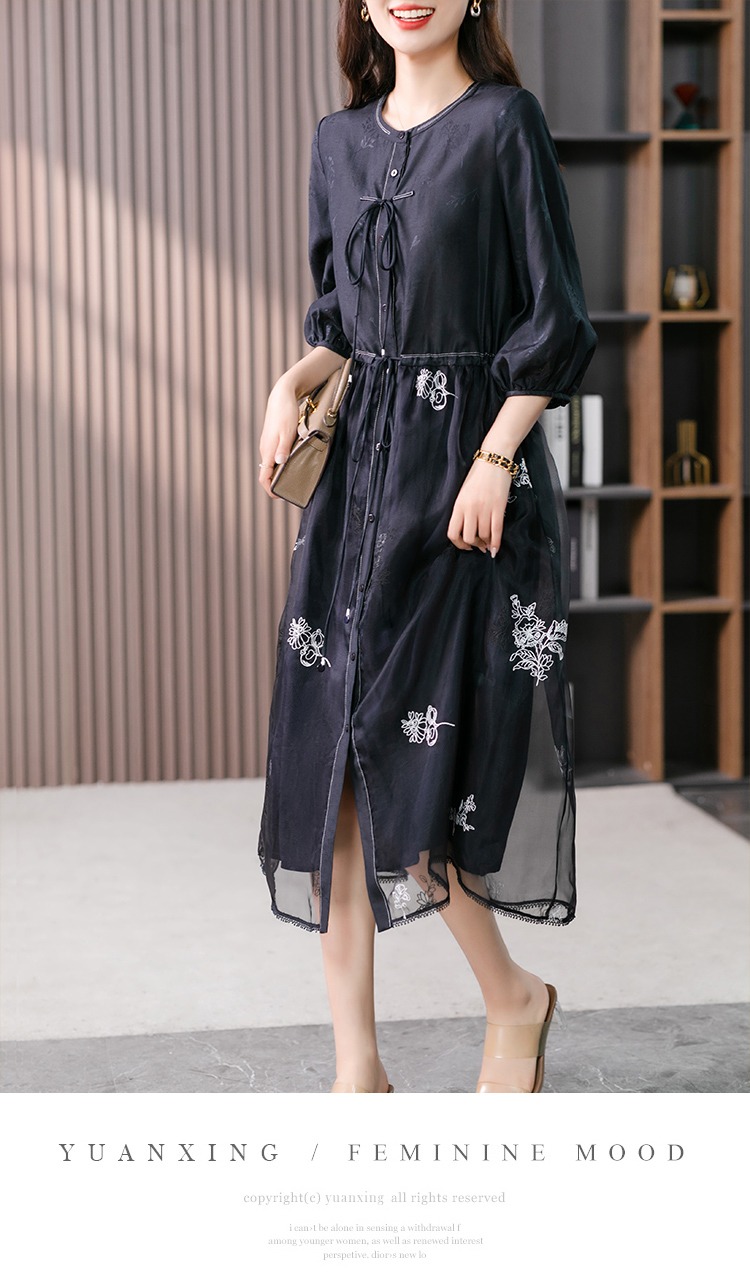 87890原形高级感绣花真丝连衣裙女2024春夏季新款灯笼袖桑蚕丝长裙子