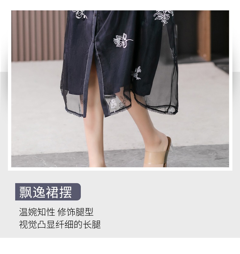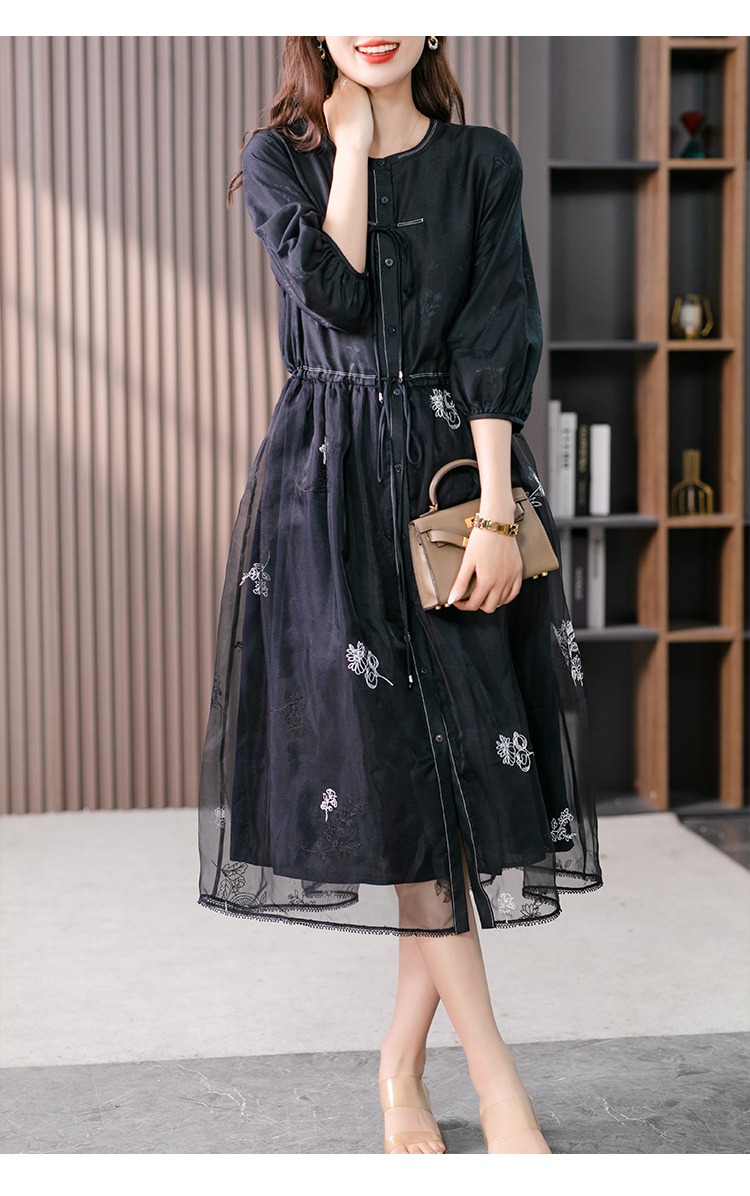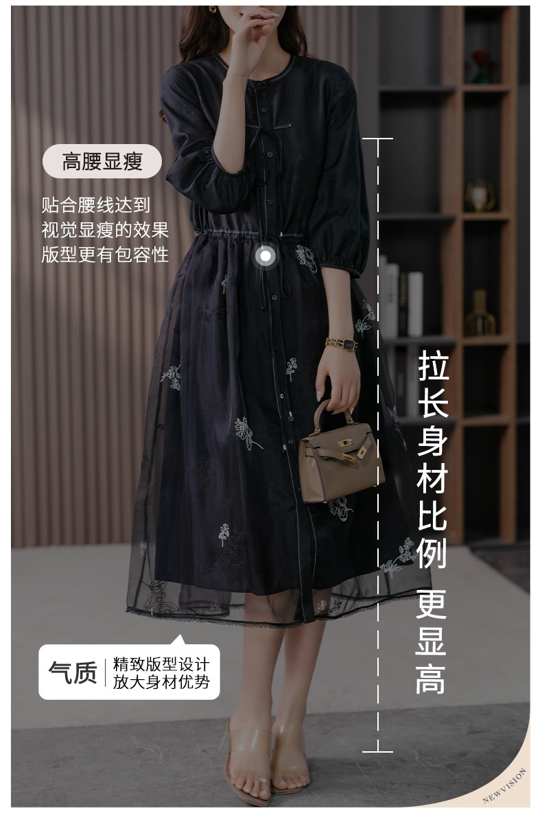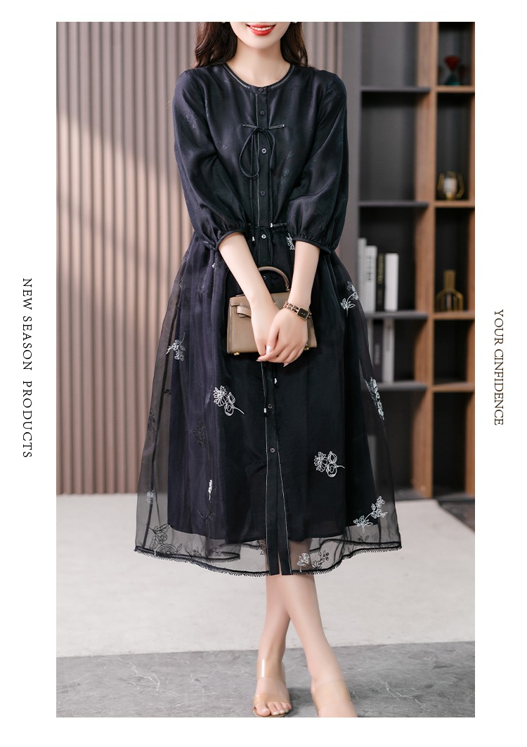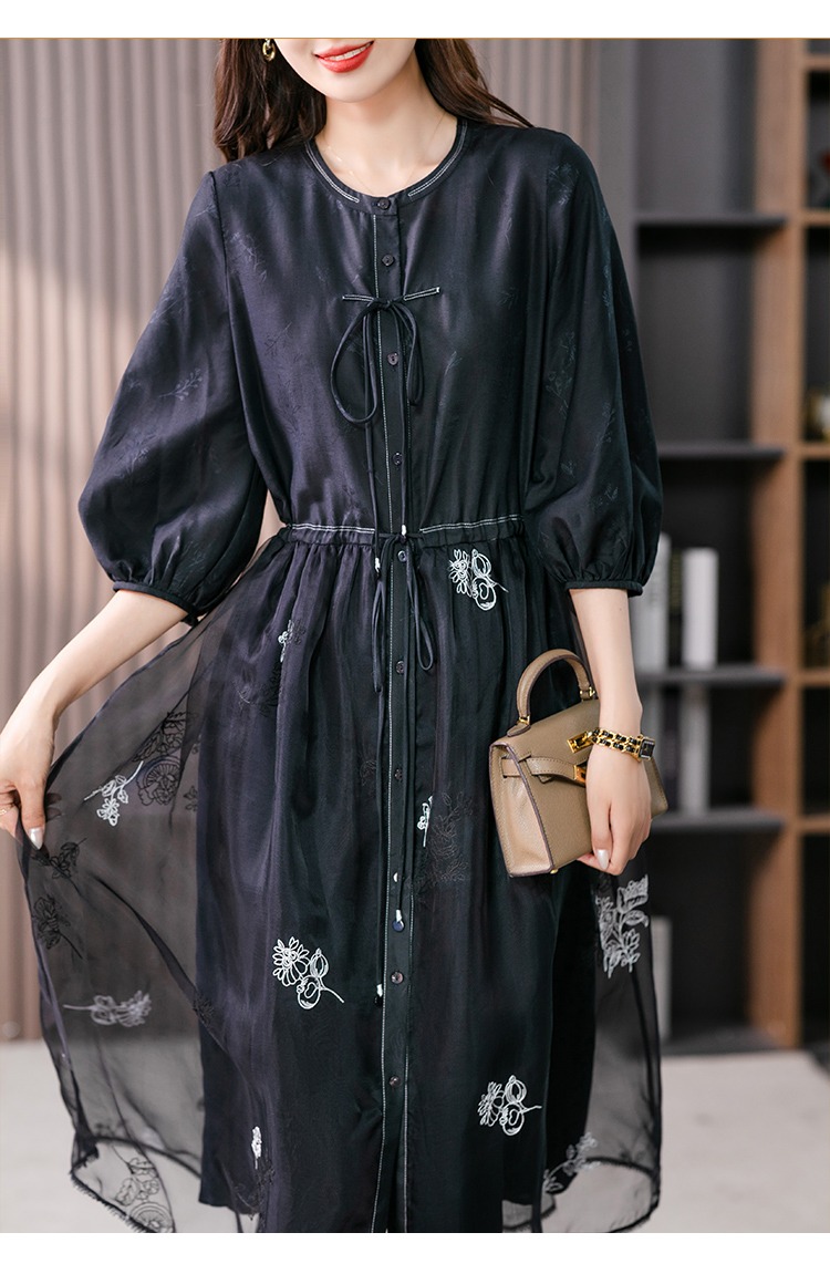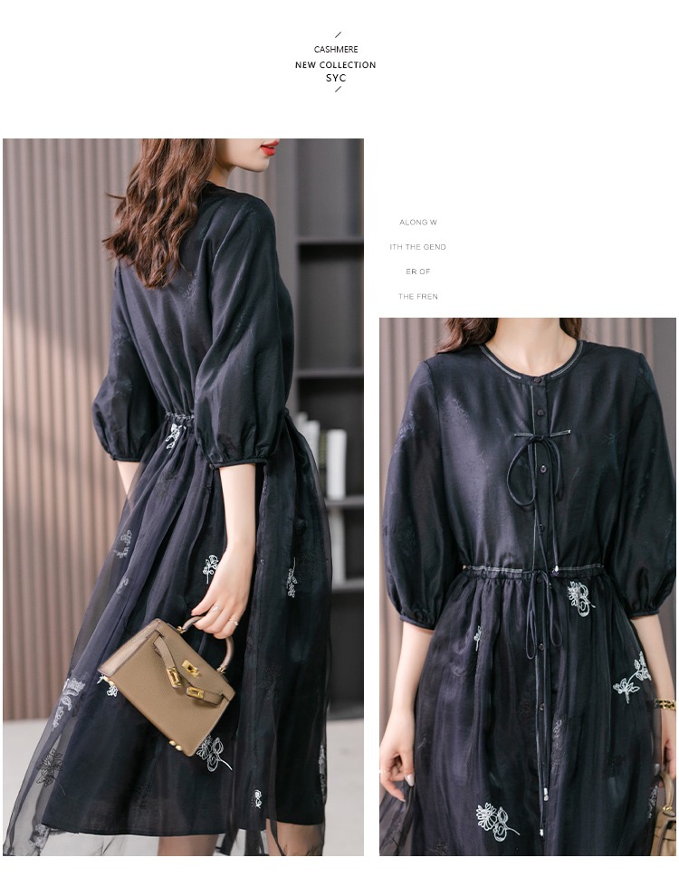 87890原形高级感绣花真丝连衣裙女2024春夏季新款灯笼袖桑蚕丝长裙子