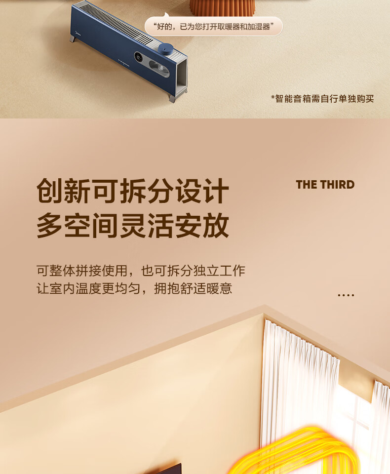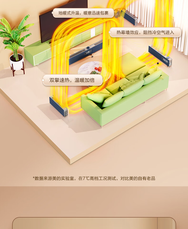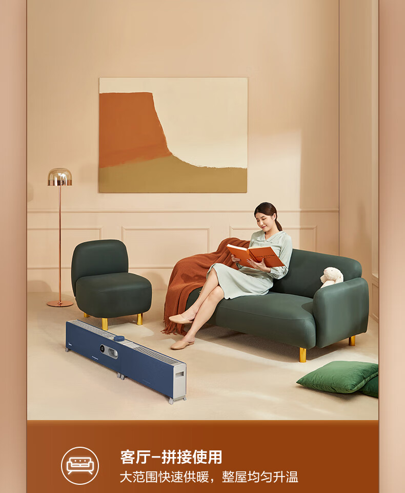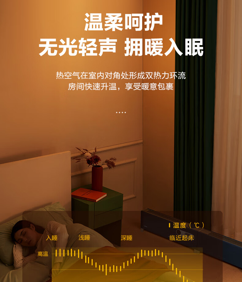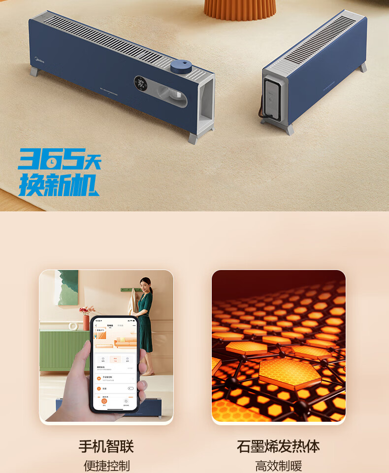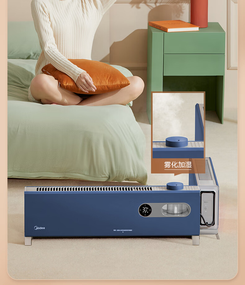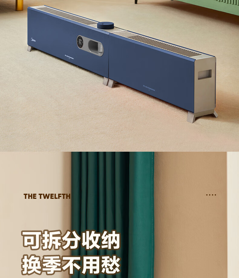 美的商场同款 电暖取暖器踢脚线移动地暖智能APP语音控制加湿可折叠分拆石墨烯发热NDW-PD