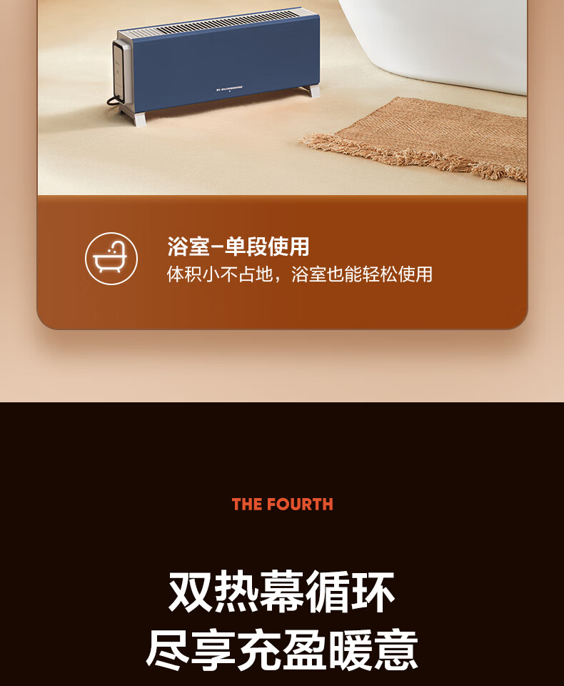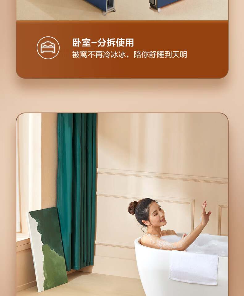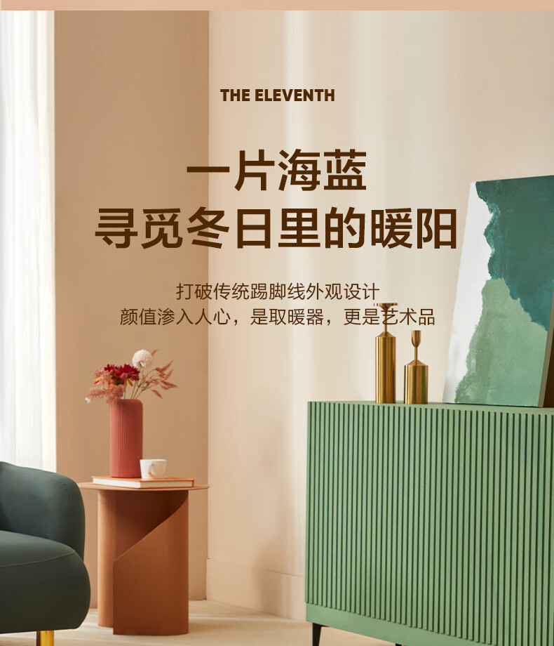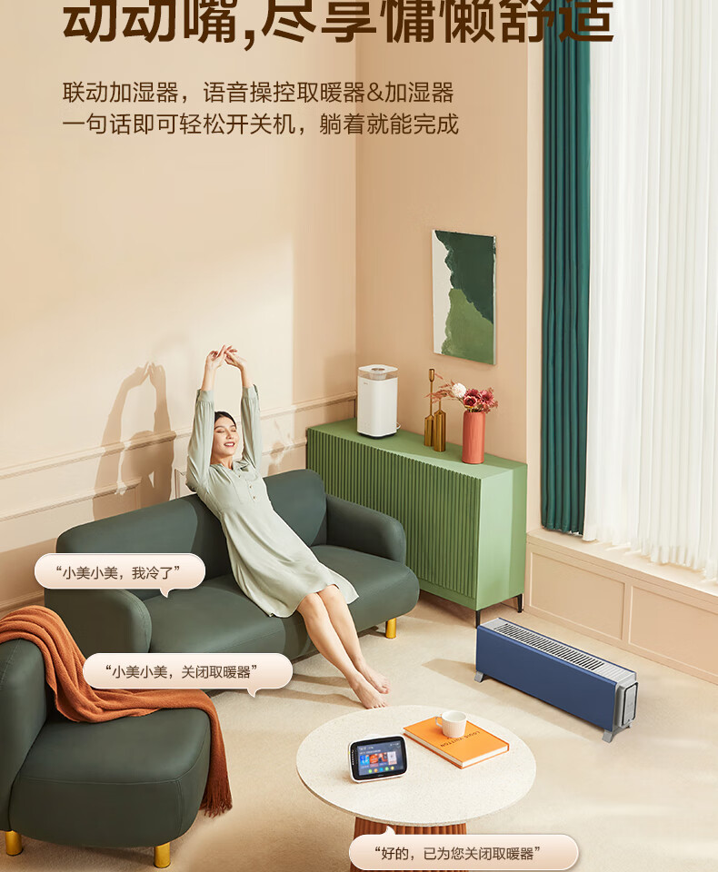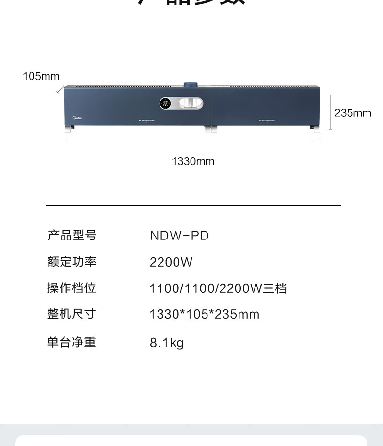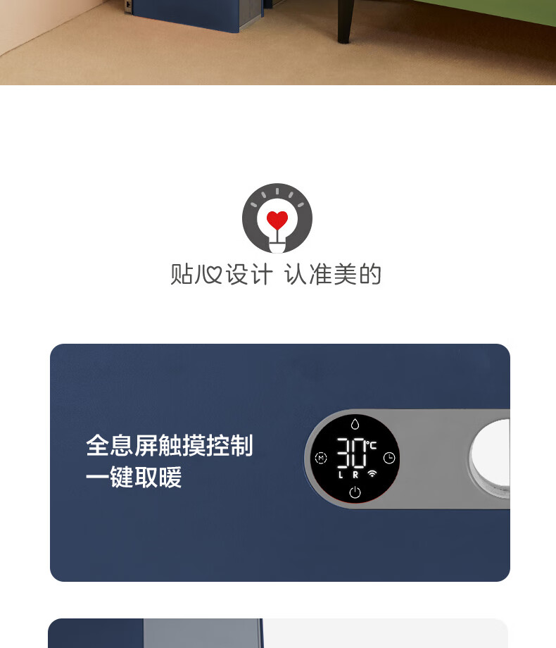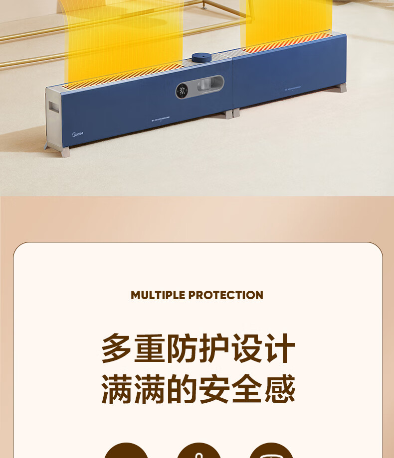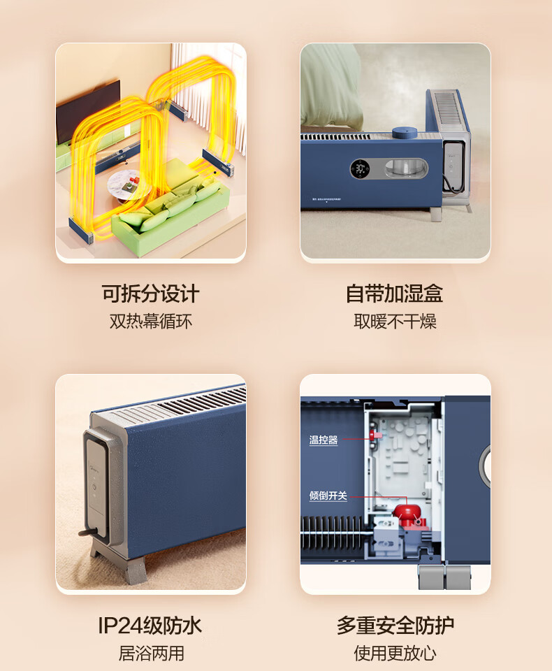 美的商场同款 电暖取暖器踢脚线移动地暖智能APP语音控制加湿可折叠分拆石墨烯发热NDW-PD