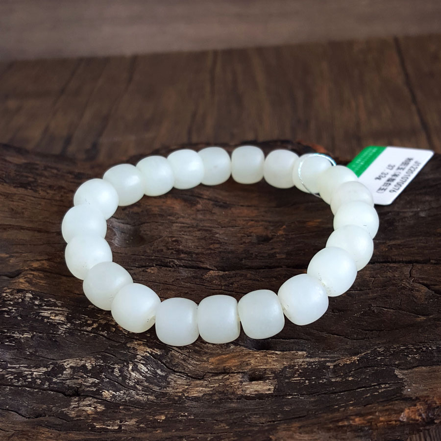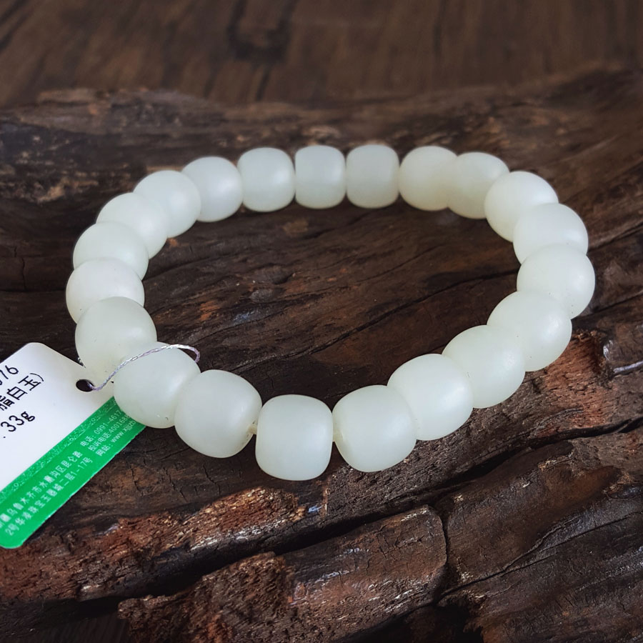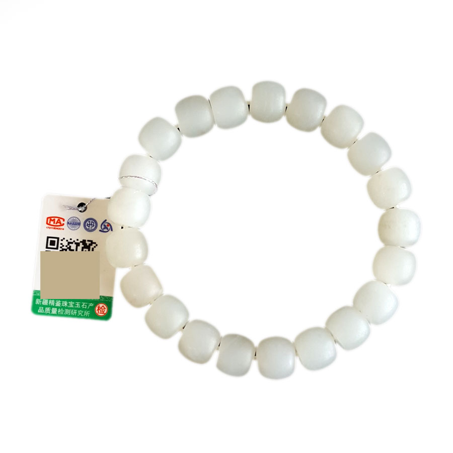 名称 | 天然青海料细腻桶珠约10*9MM和田玉手串 |