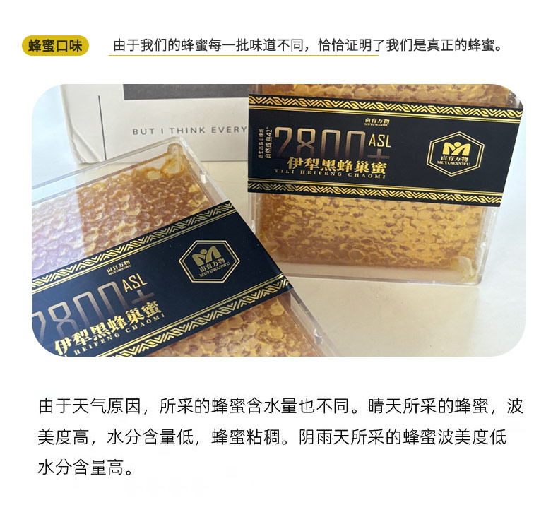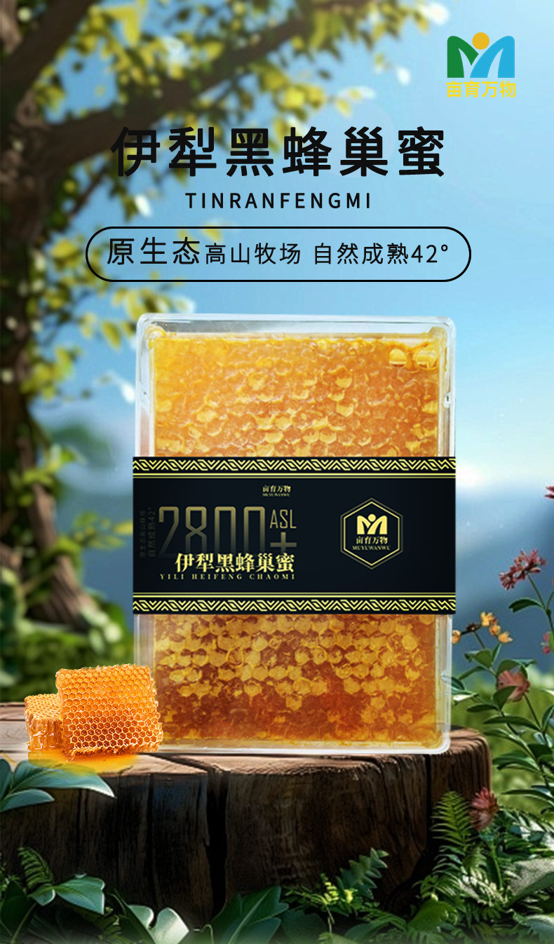 亩育万物 伊犁黑蜂蜂巢蜜 500g/盒